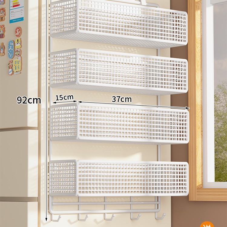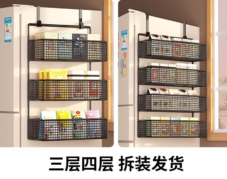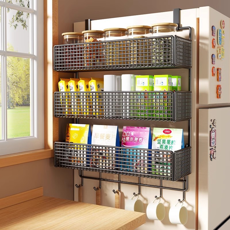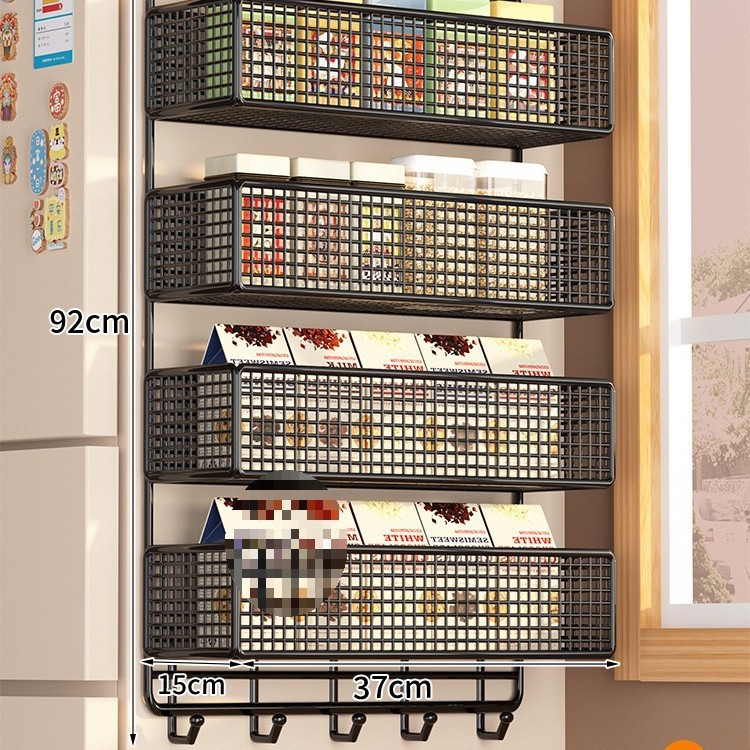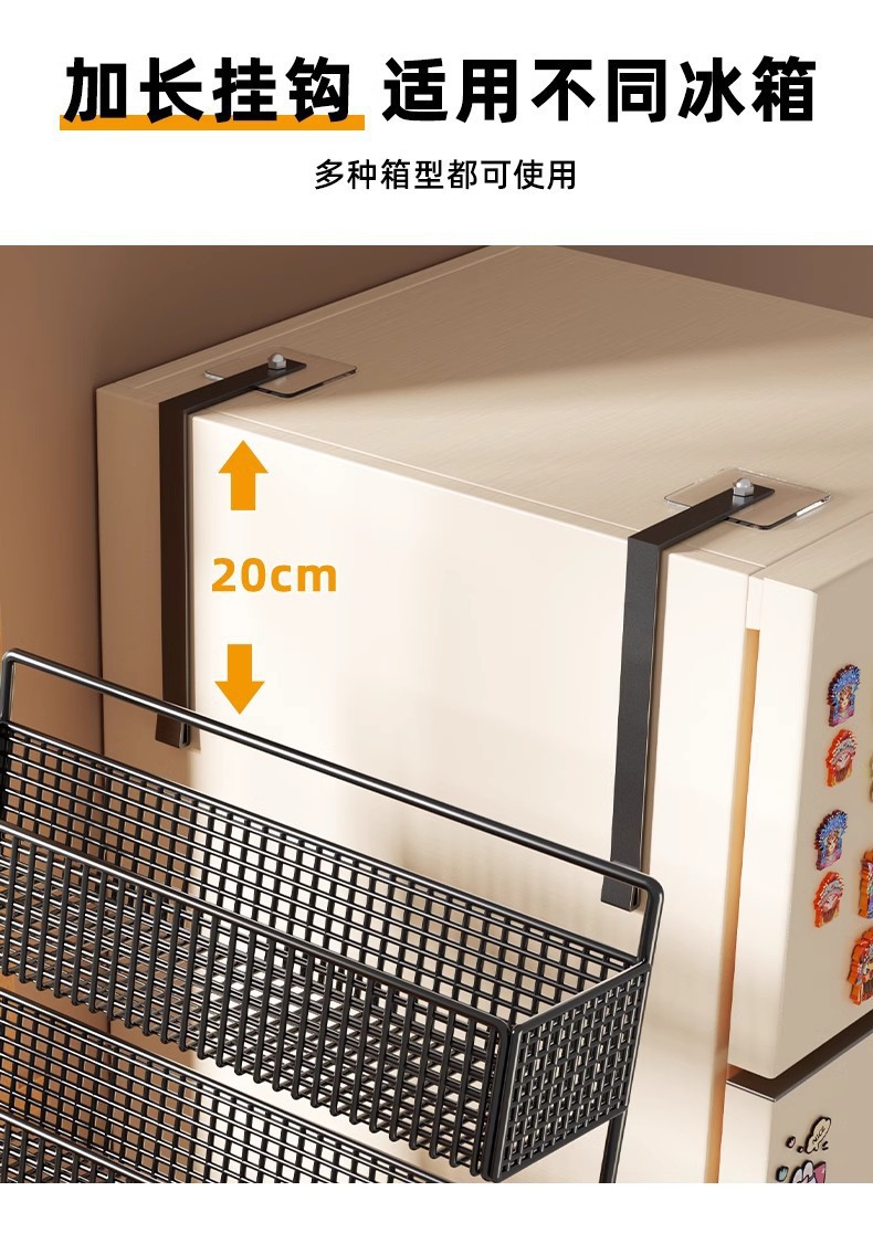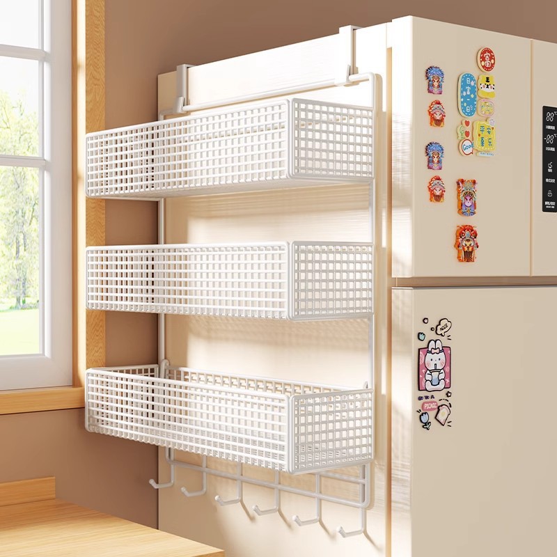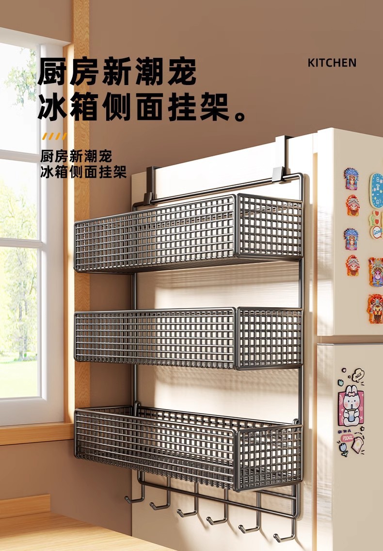 Боковая полка для холодильника, кухонные принадлежности, многослойная вешалка для хранения, пластиковая пленка, размещение бутылок для приправ без сверления