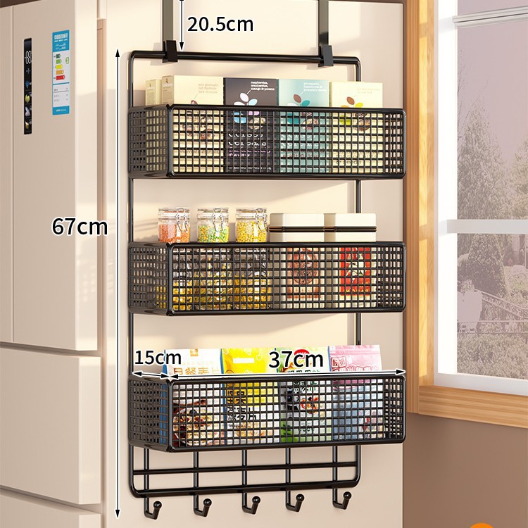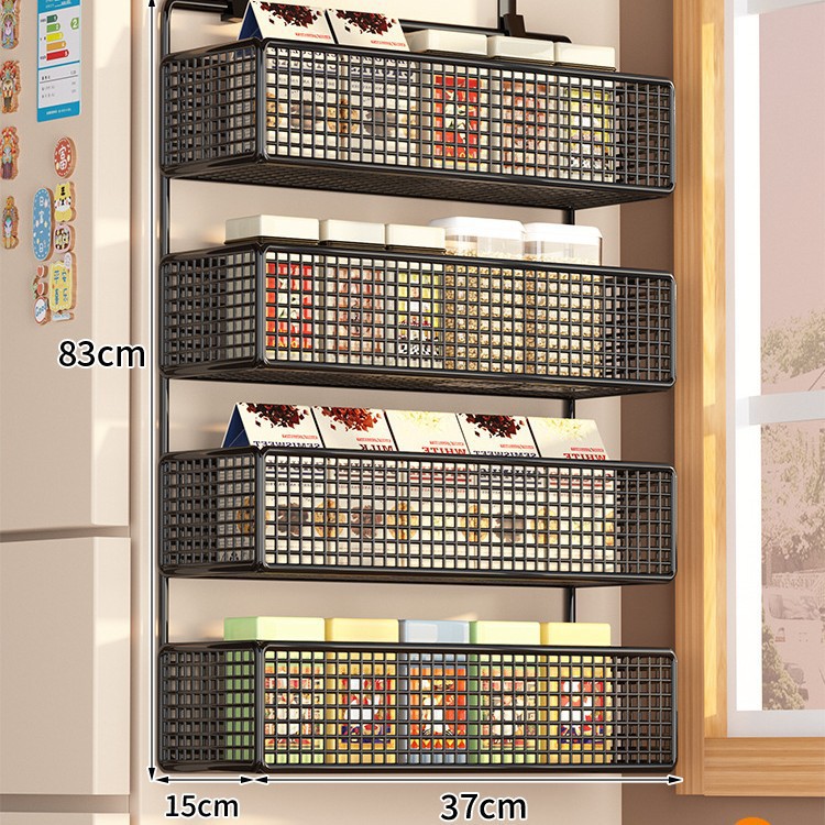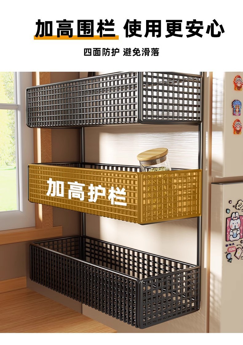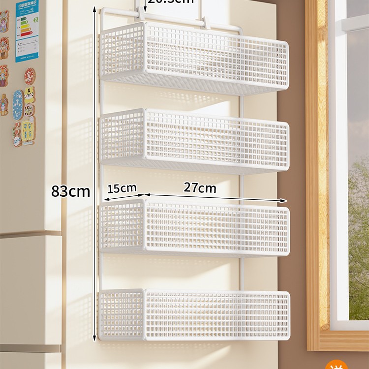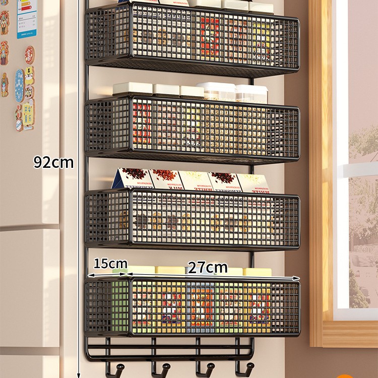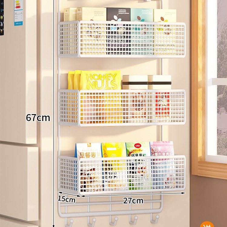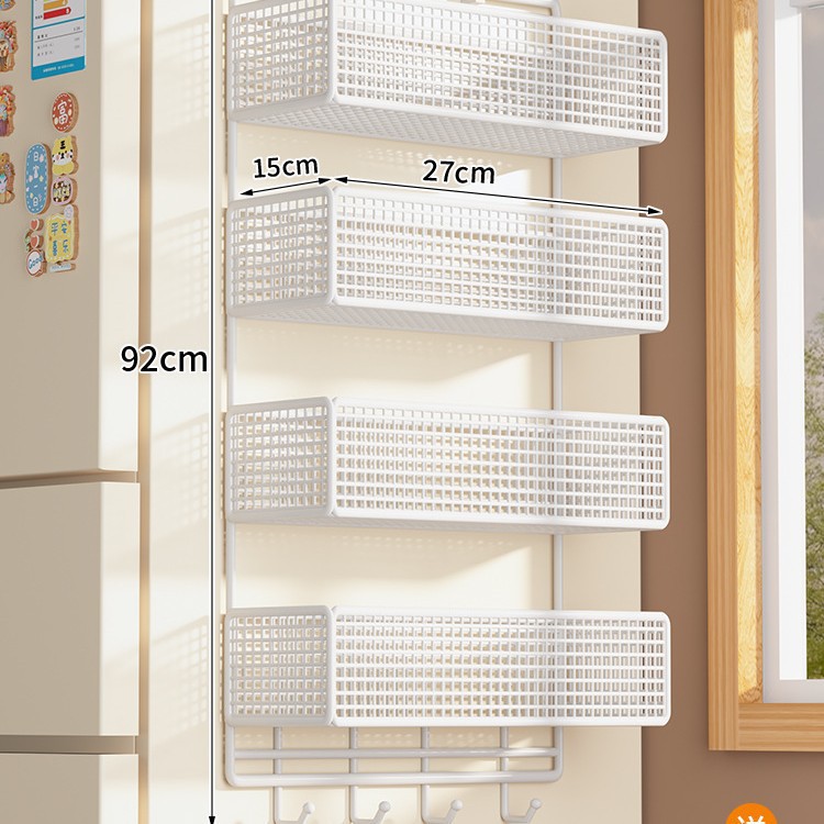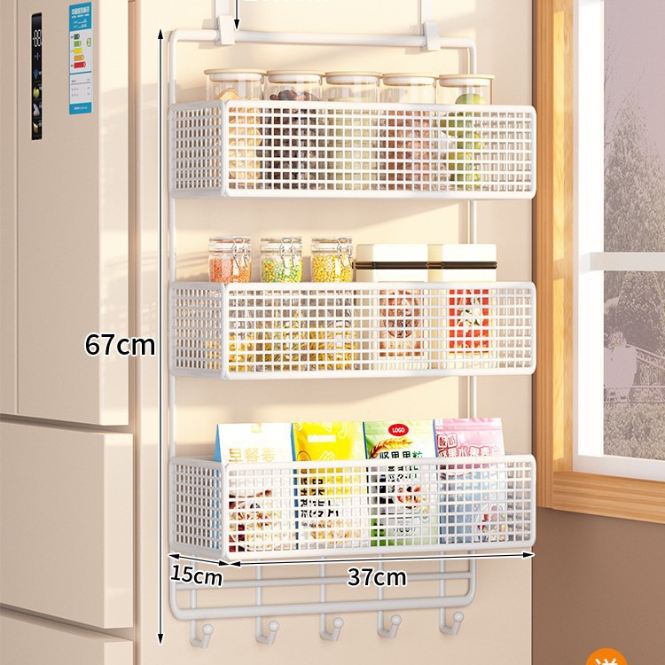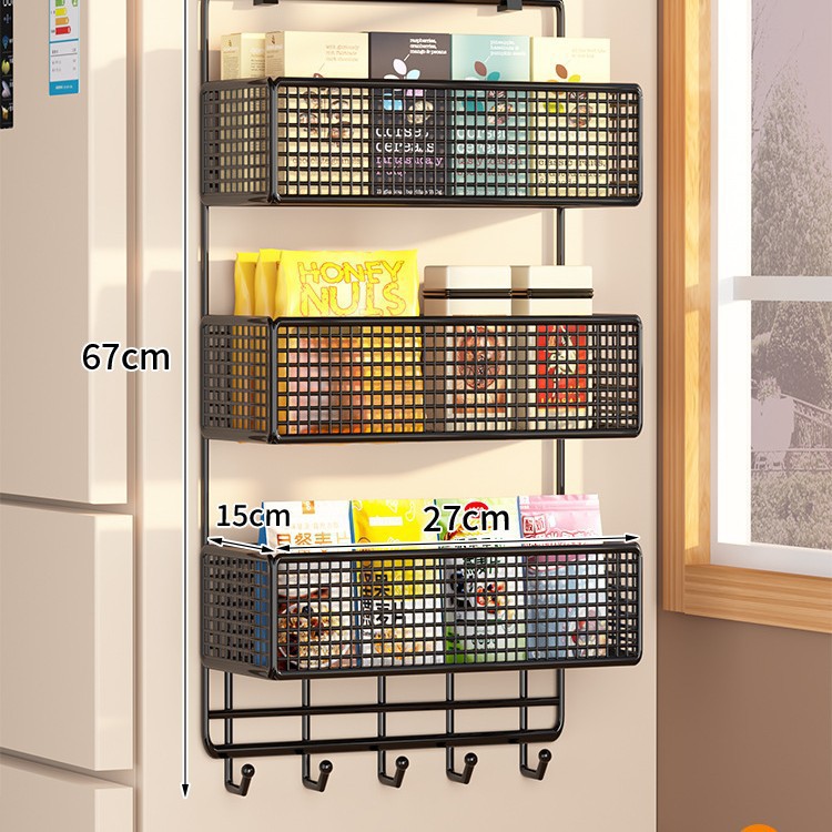Боковая полка для холодильника, кухонные принадлежности, многослойная вешалка для хранения, пластиковая пленка, размещение бутылок для приправ без сверления