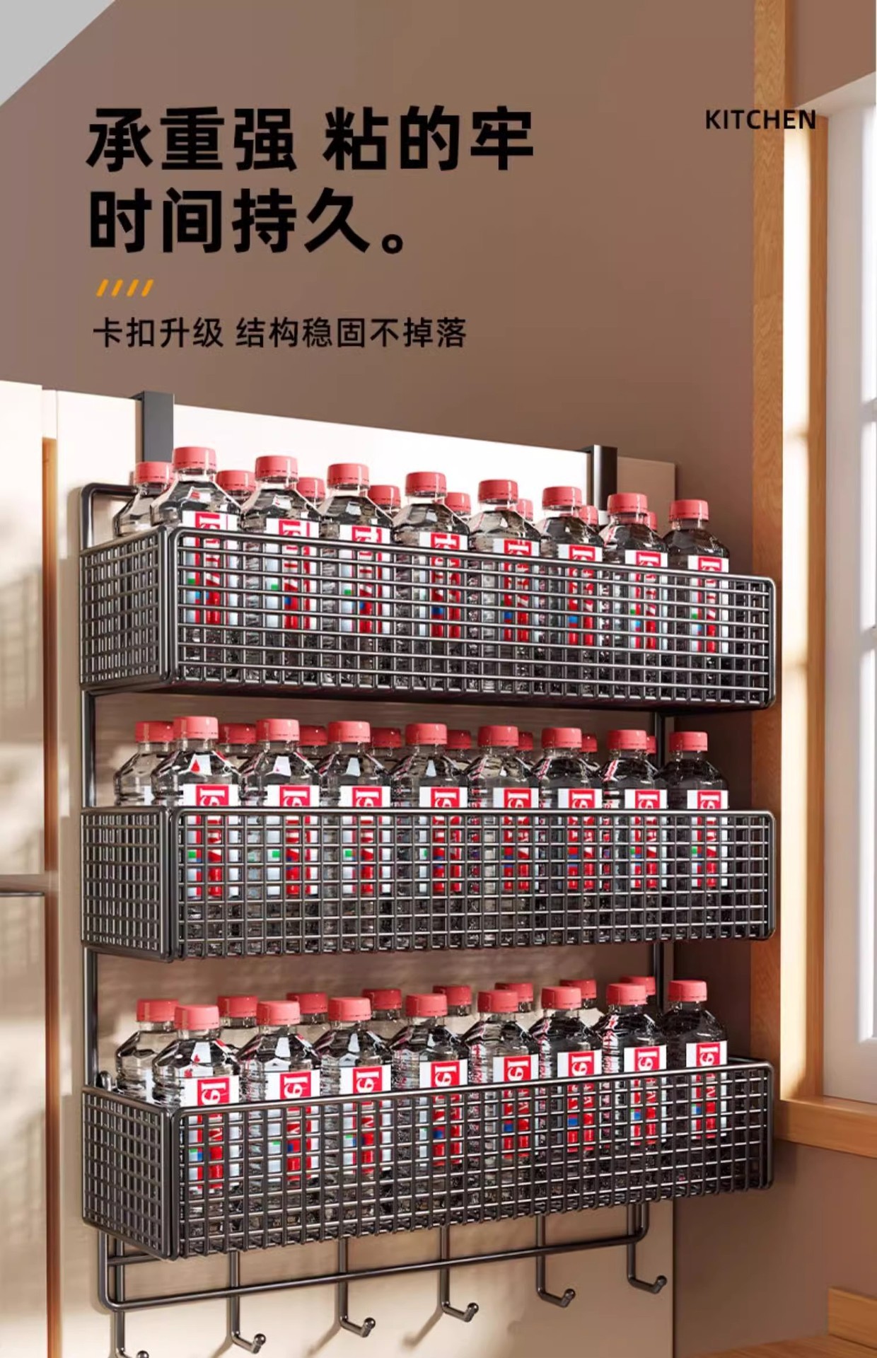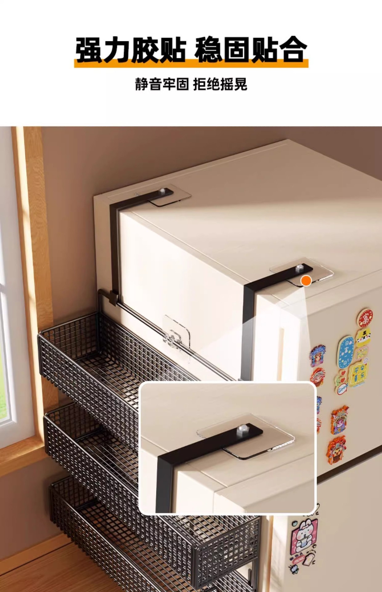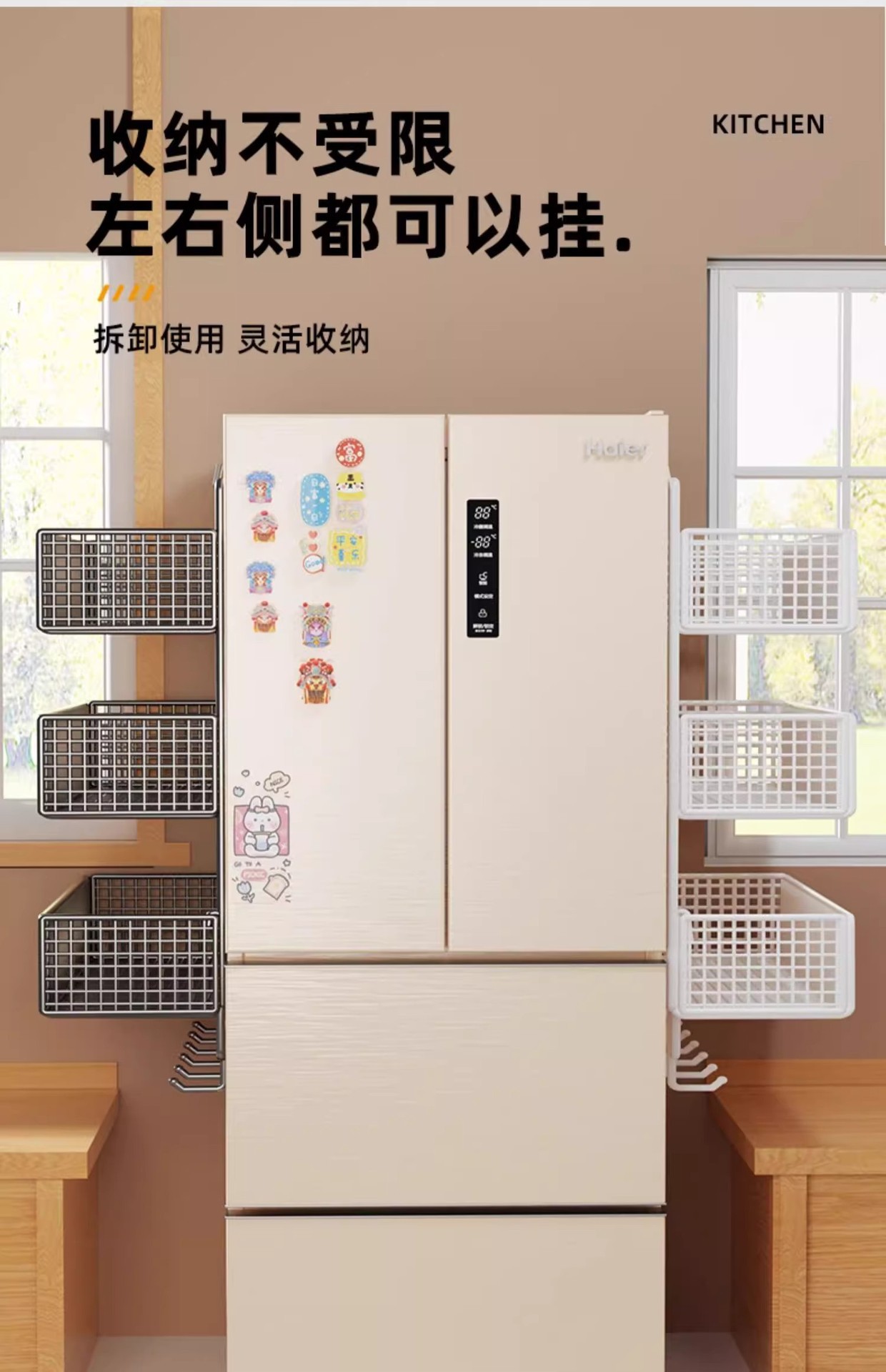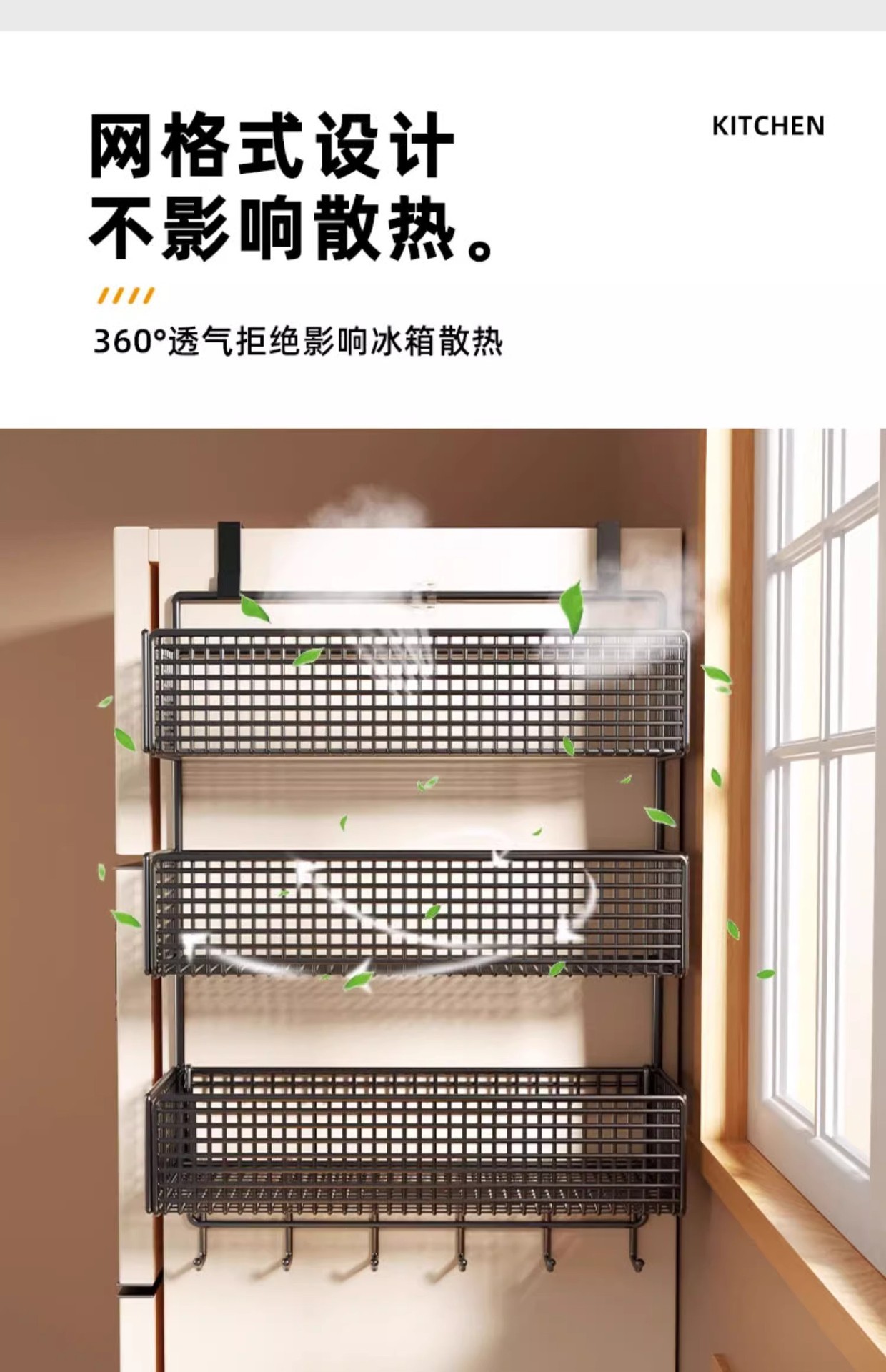 Боковая полка для холодильника, кухонные принадлежности, многослойная вешалка для хранения, пластиковая пленка, размещение бутылок для приправ без сверления
