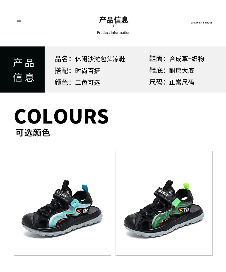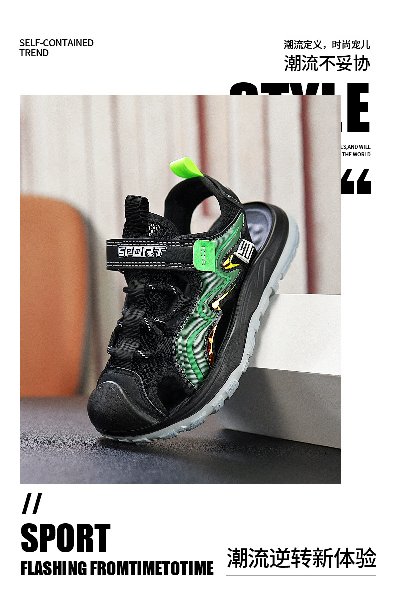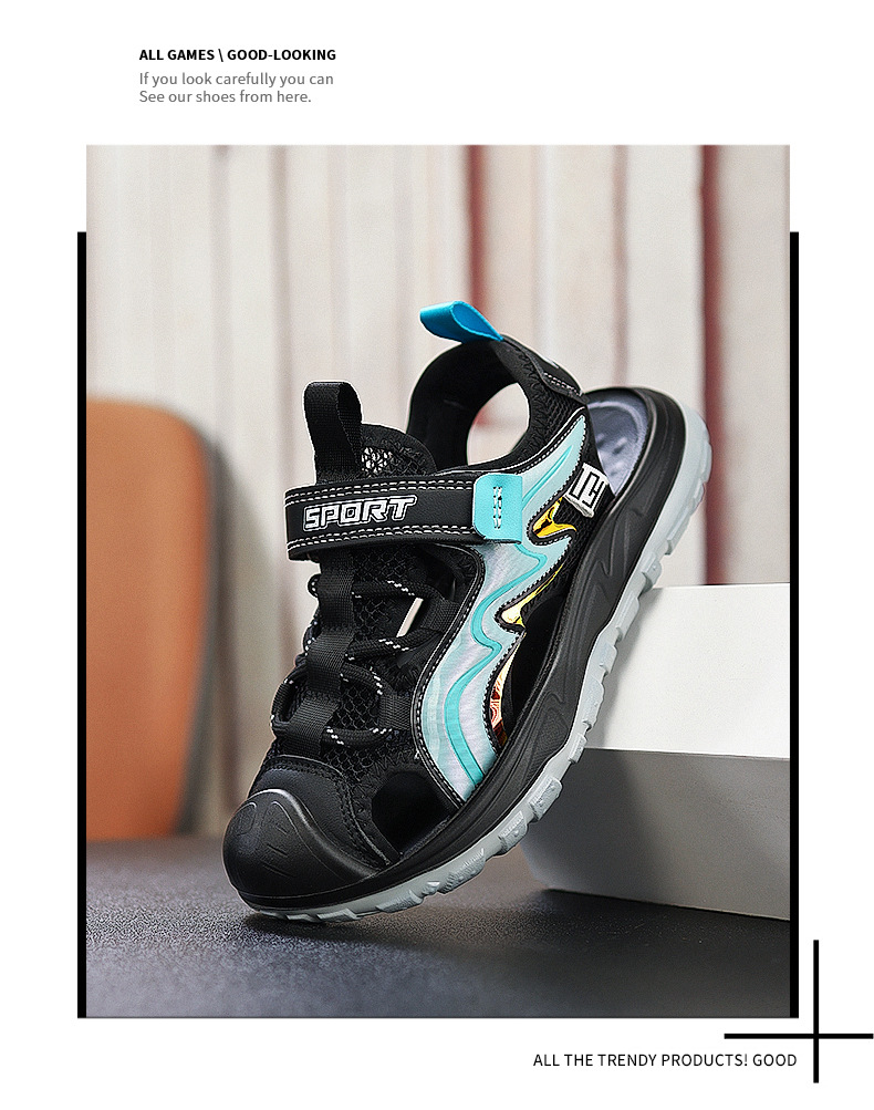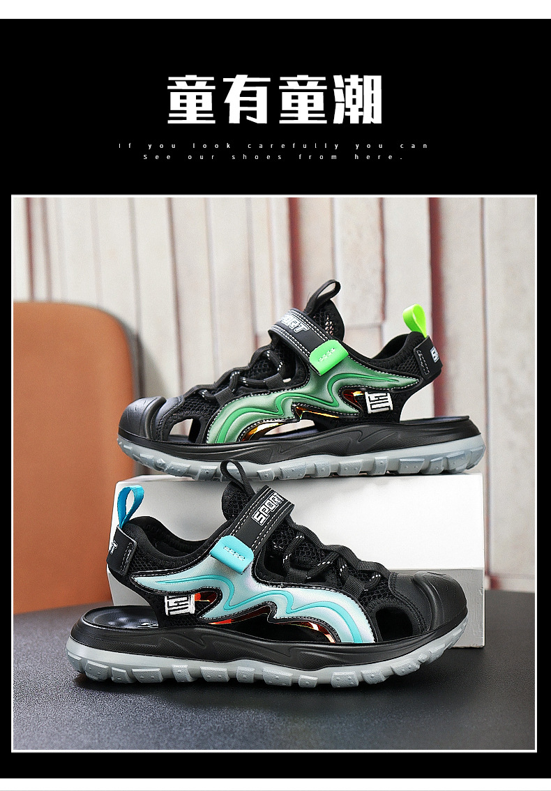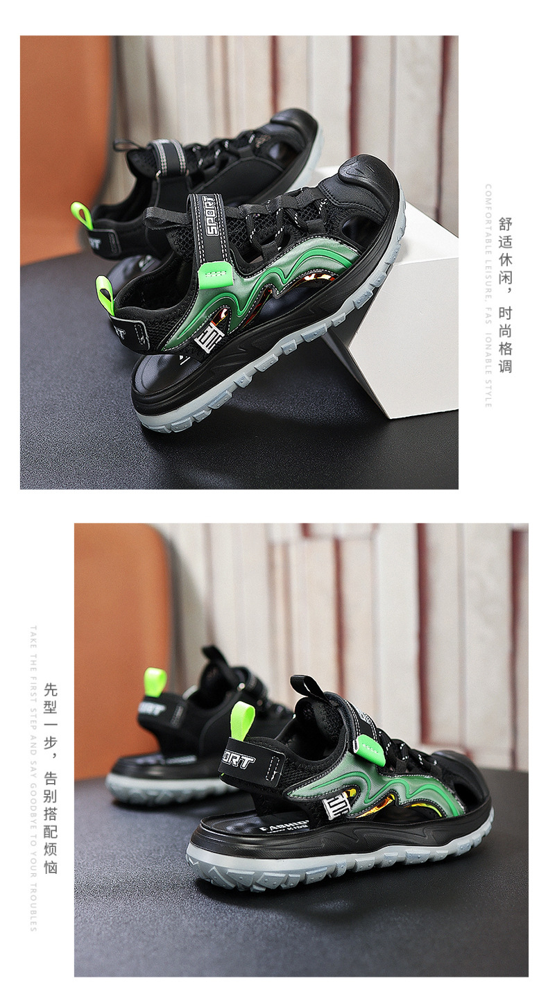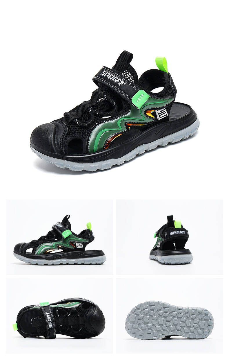 Мальчиковые закрытые сандалии 2025 лето новый стиль с липучкой, пляжная обувь для больших детей, спортивные нескользящие детские сандалии для мальчиков.