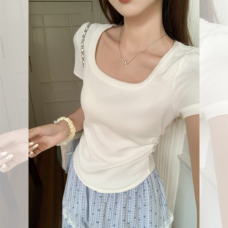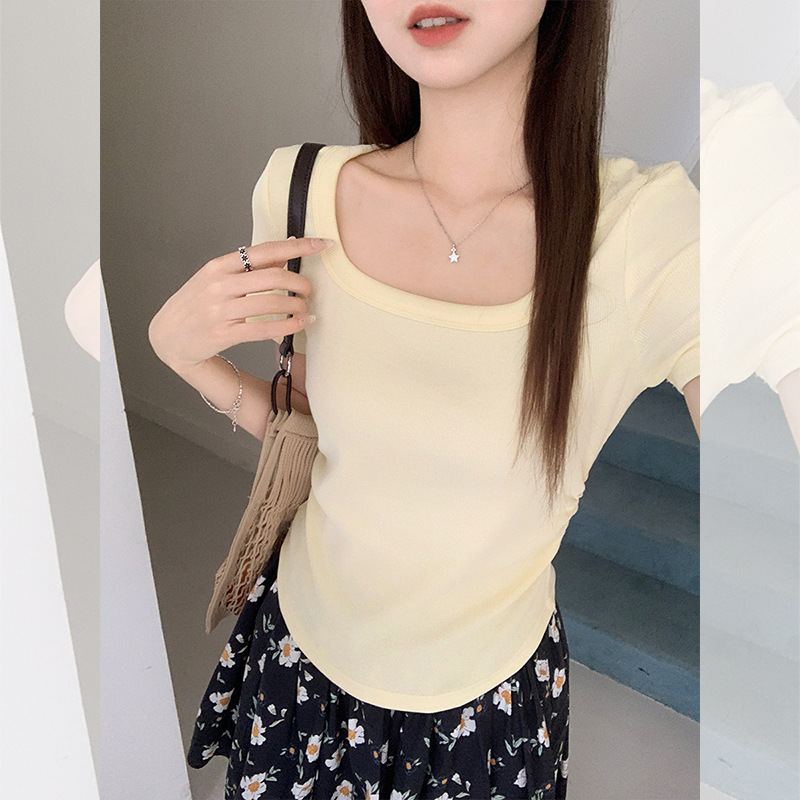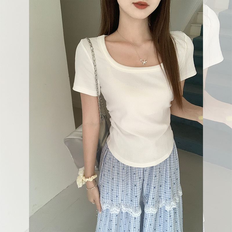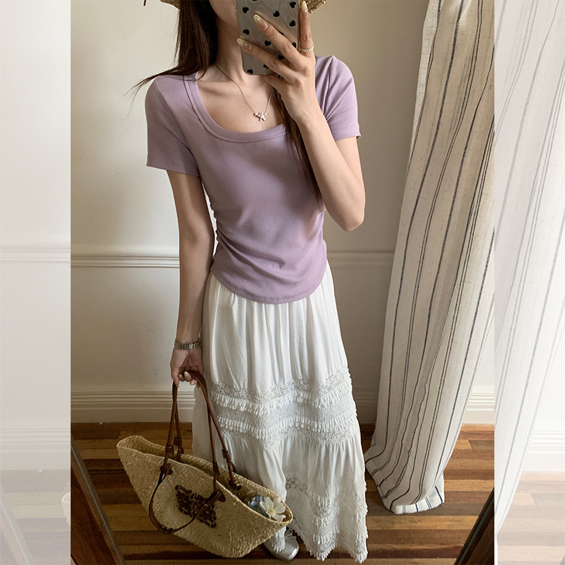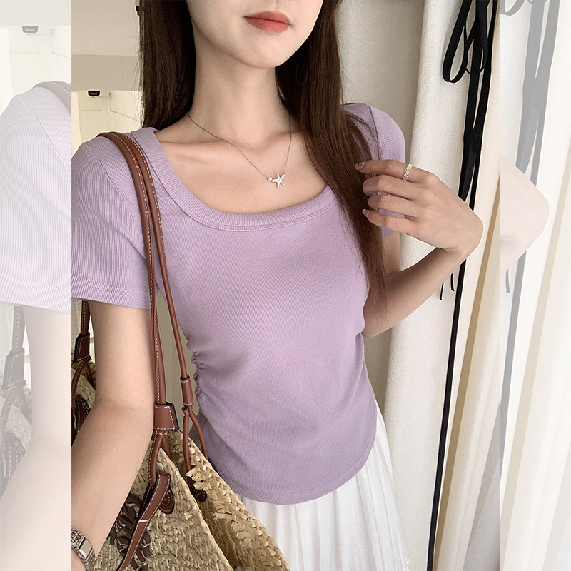 Real Shot Real Price Taro Purple Pure Desire плиссированная футболка с квадратным вырезом и короткими рукавами женская летняя новая нишевая элегантная футболка