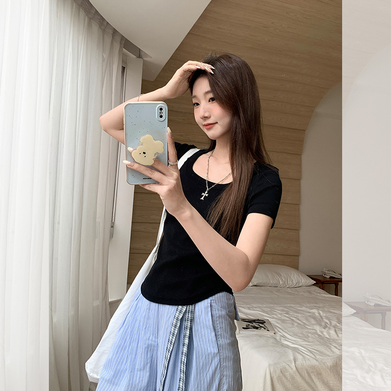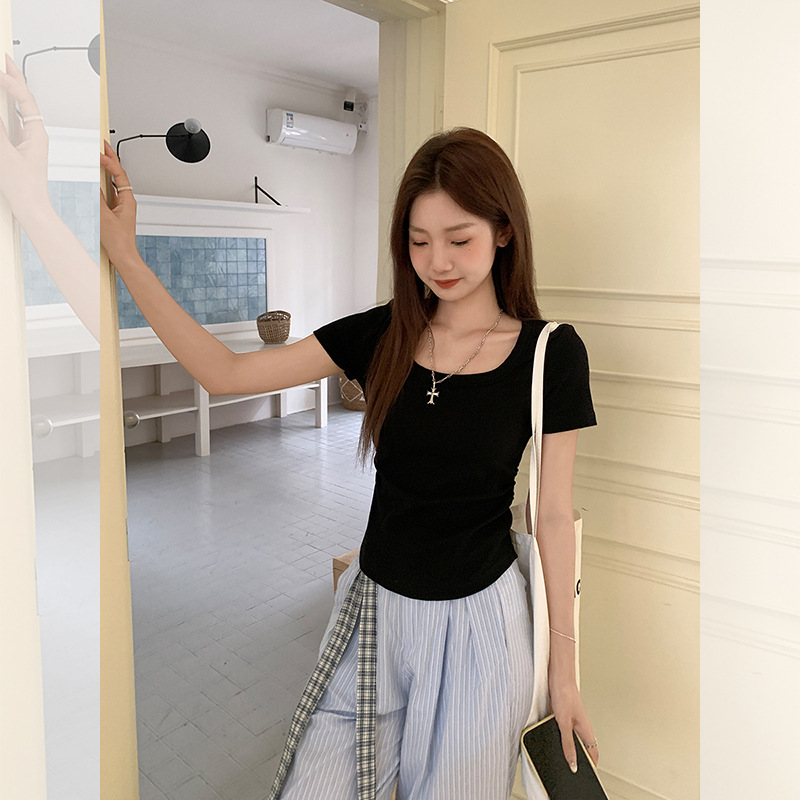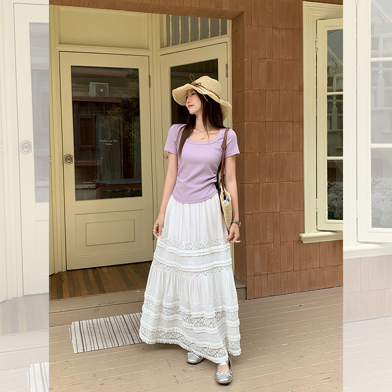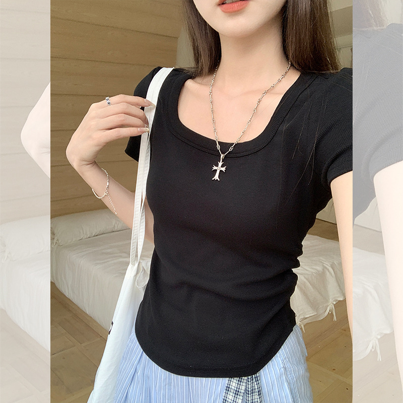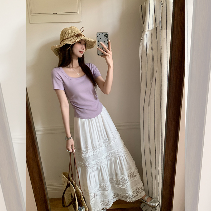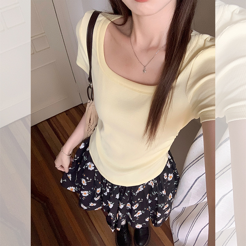 Real Shot Real Price Taro Purple Pure Desire плиссированная футболка с квадратным вырезом и короткими рукавами женская летняя новая нишевая элегантная футболка
