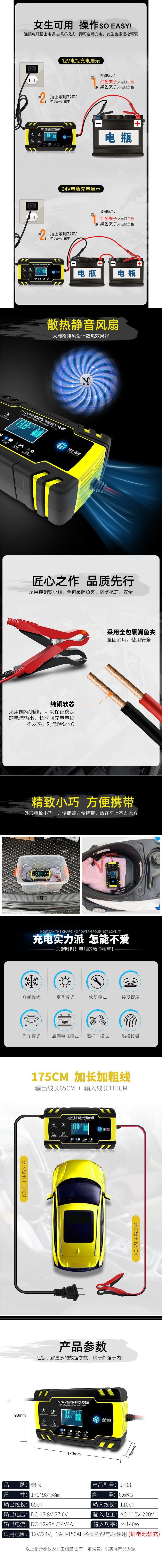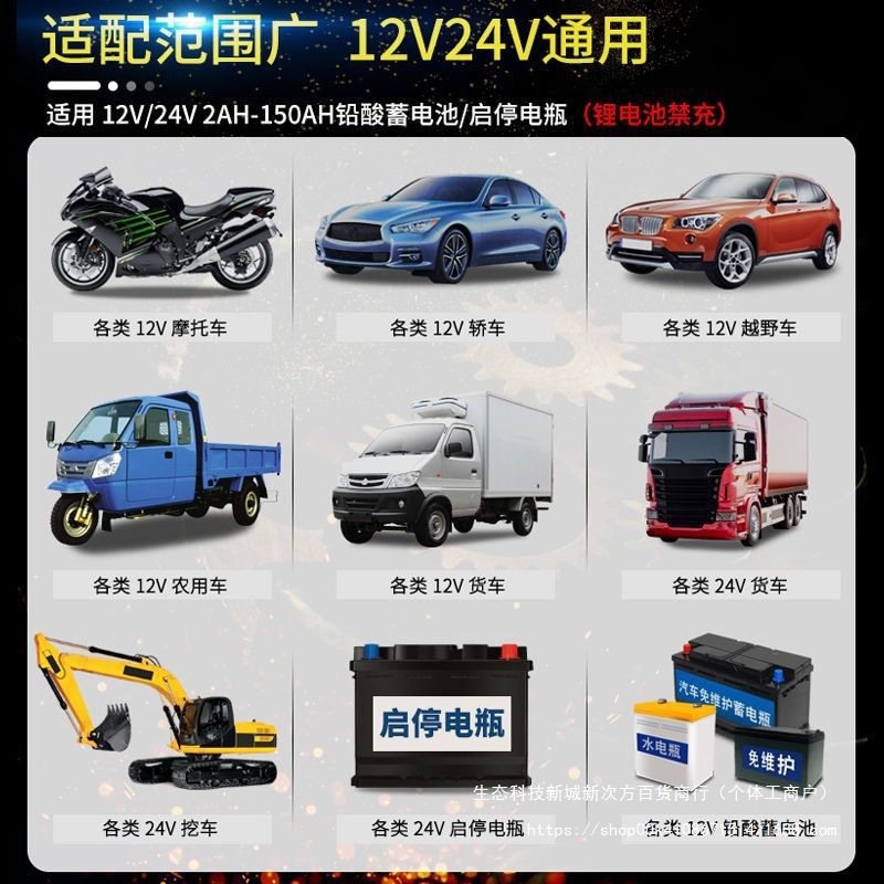 Зарядное устройство для автомобильного аккумулятора 12В/24В, мощное зарядное устройство для запуска и остановки автомобиля, зарядное устройство для мотоциклетного аккумулятора
