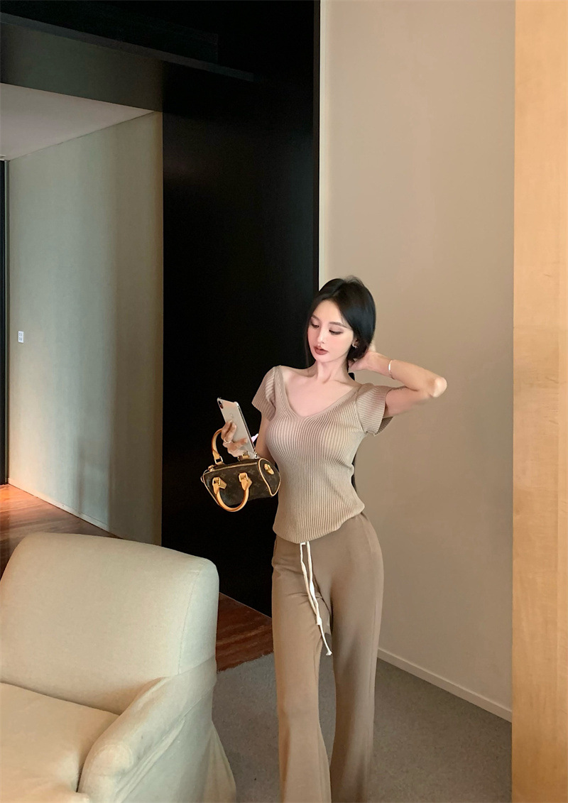 Женские модные сексуальные трикотажные костюмы из топа и брюк 2025 года, одежда для женщин