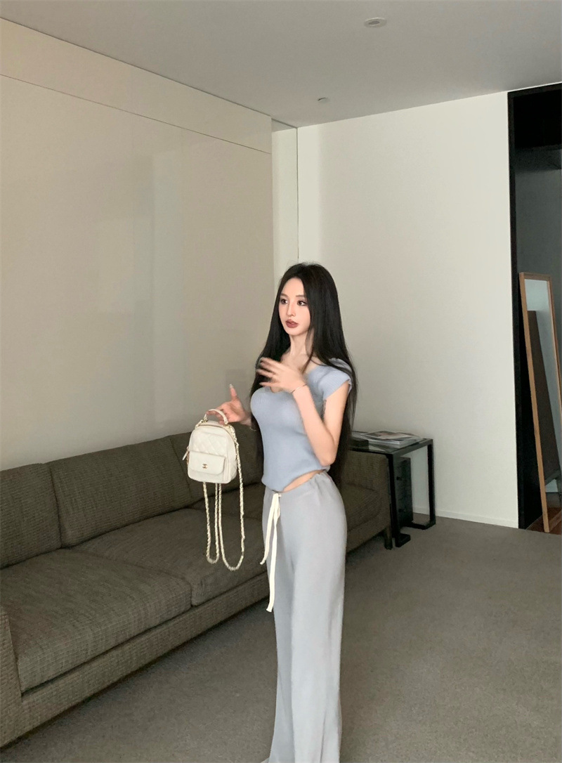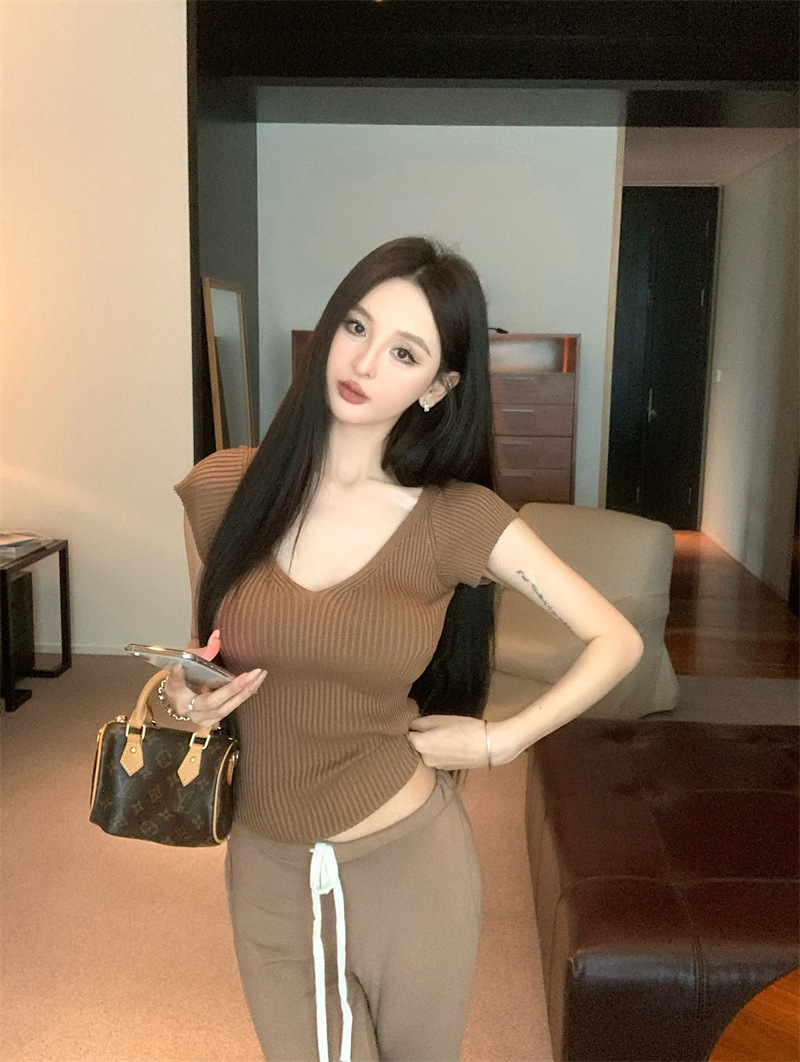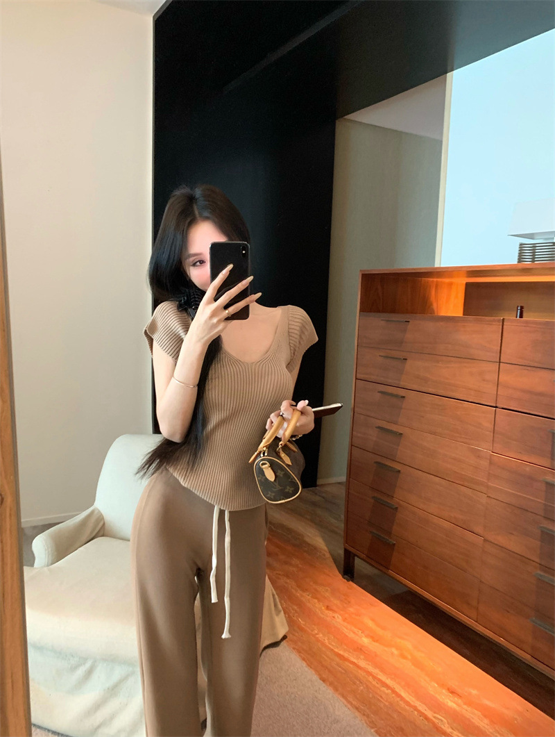 上衣:衣长56 胸围52 袖长10 针织有弹力