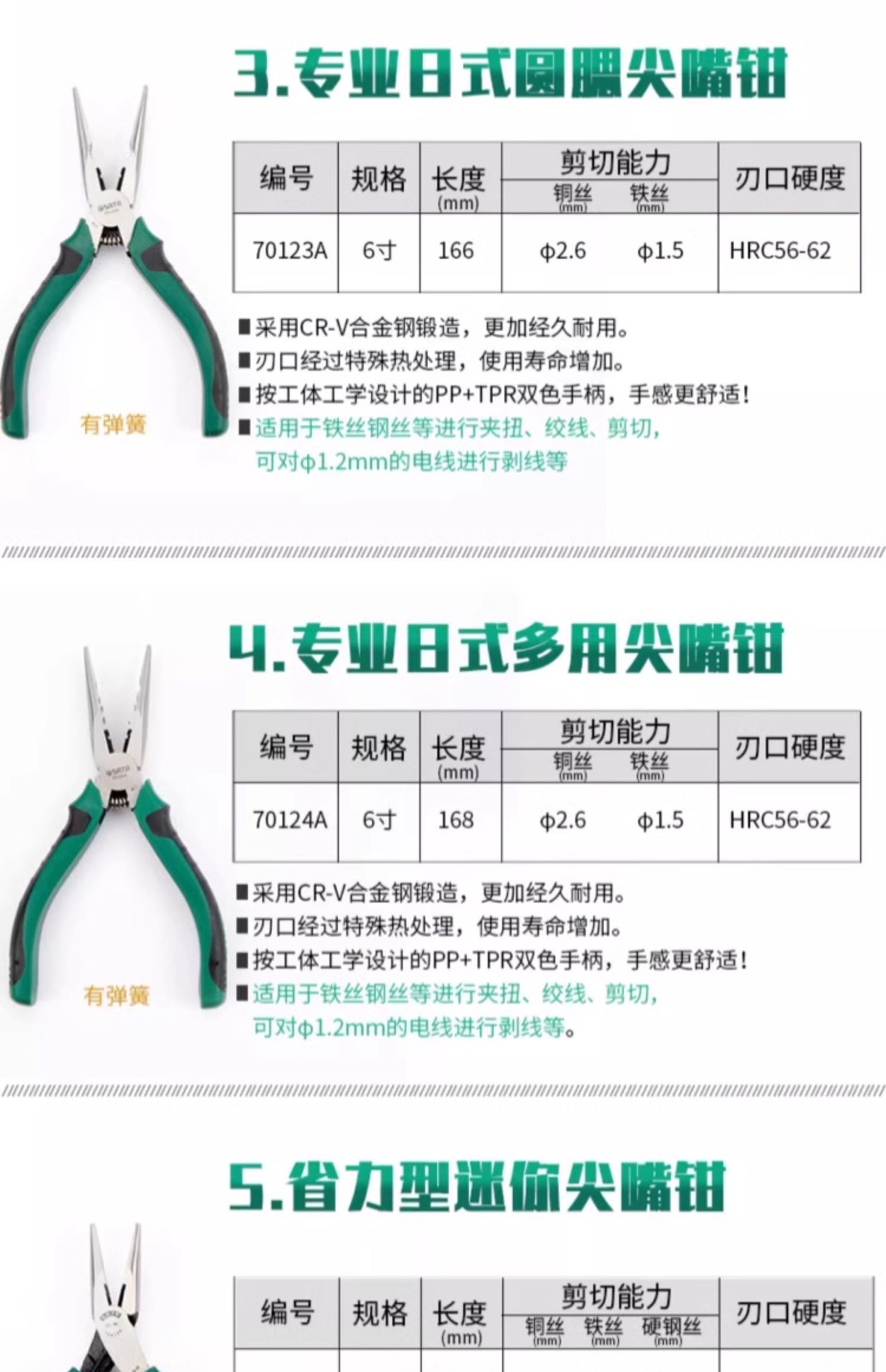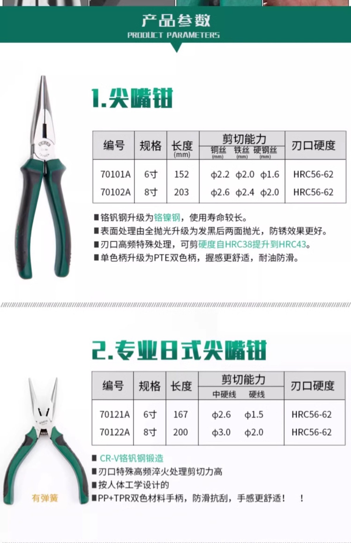 70101A/ 6inch [Самая продаваемая модель]; 70102A/ 8inch [Самая продаваемая модель]; 70121A/ 6inch [Профессиональный японский стиль]; 70122A/ 8inch [Профессиональный японский стиль]; 70123A/ 6inch [японская круглая щека]; 70124A/ 6inch [многоцелевой японский стиль]; 70612A/ 5.5inch [Мини-трудосберегающий тип]; 72401B/ 6inch [Тип, экономящий труд]; 72402B/ 8inch [Тип, экономящий труд]; 70101A/ 6inch Плоскогубцы; 70102A/ 8inch Игольчатые плоскогубцы; 72710/ 6inch [Серия G]; 72712/ 8inch [серия Г]