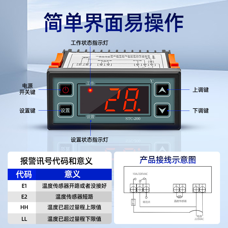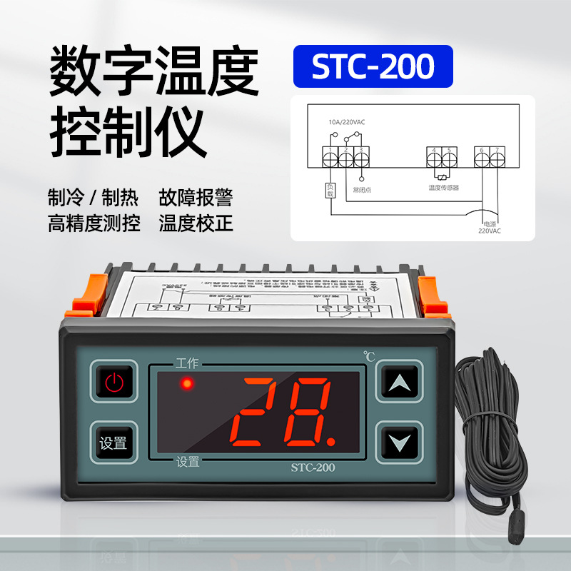 Контроллер температуры холодильной установки холодного хранения STC-200, сигнализация о нагреве, чиллер, интеллектуальный цифровой дисплей, контроль температуры морозильной камеры