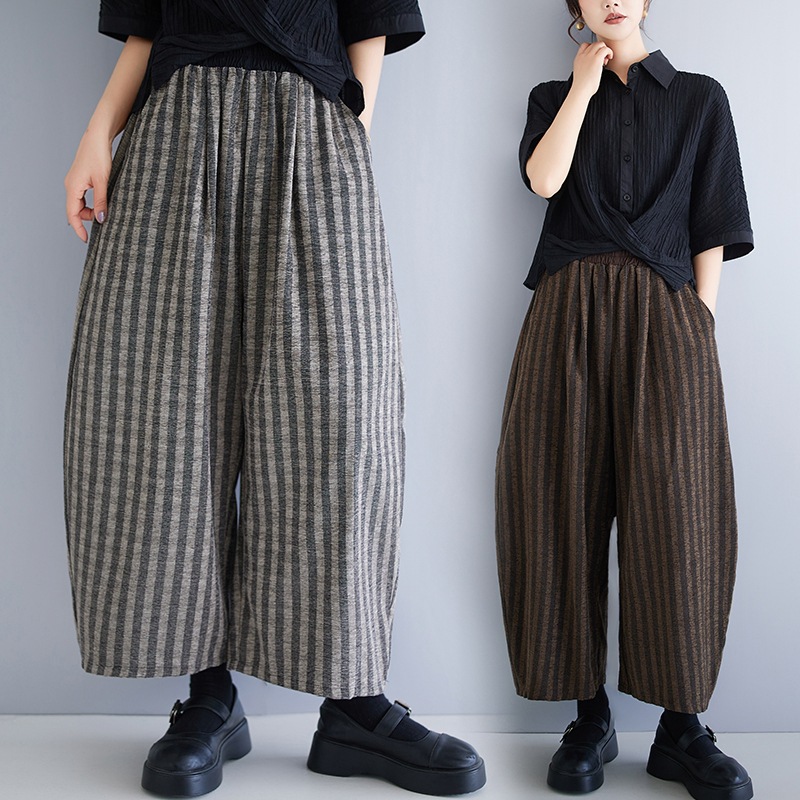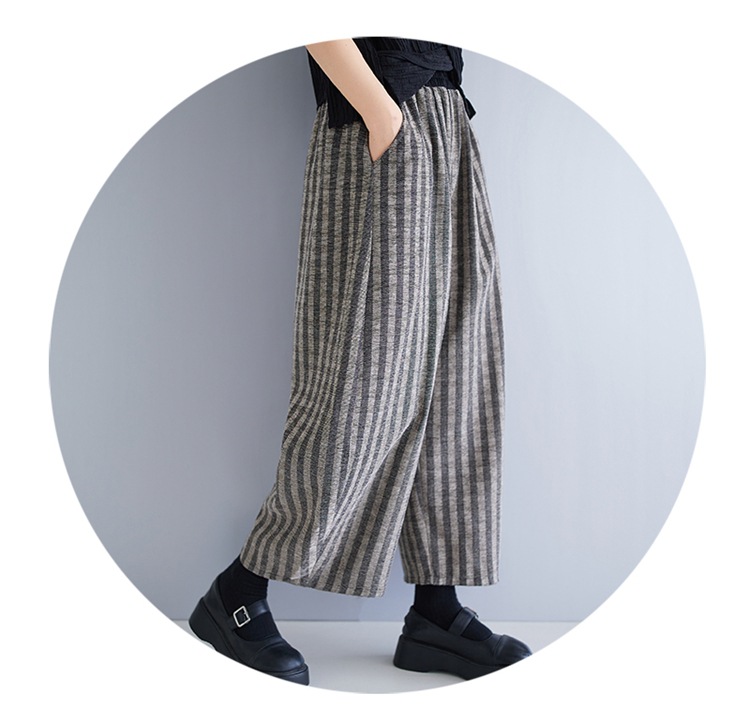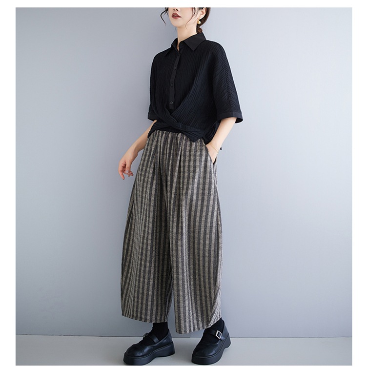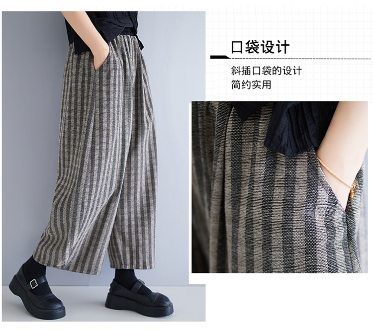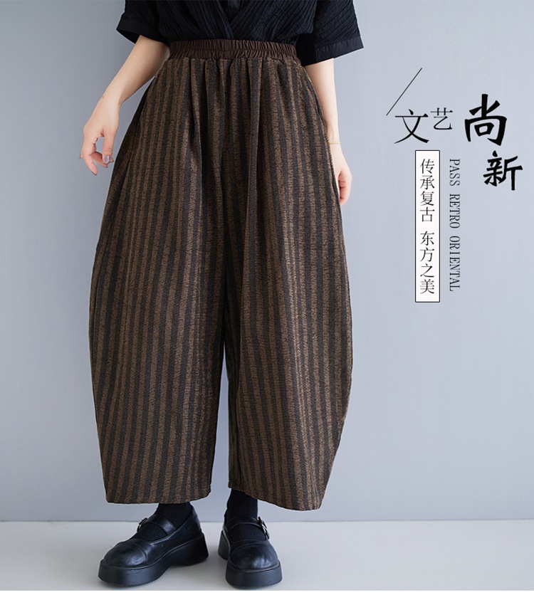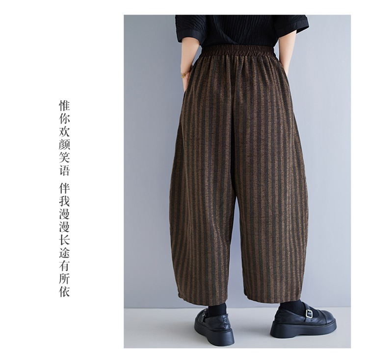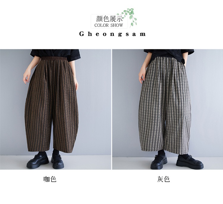 В наличии новый стиль, укороченные ретро китайские вельветовые полосатые нишевые широкие брюки, пышные брюки