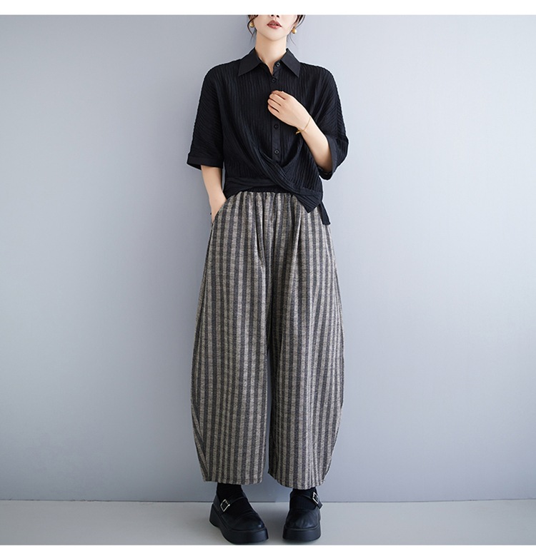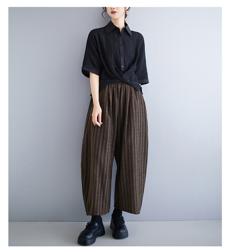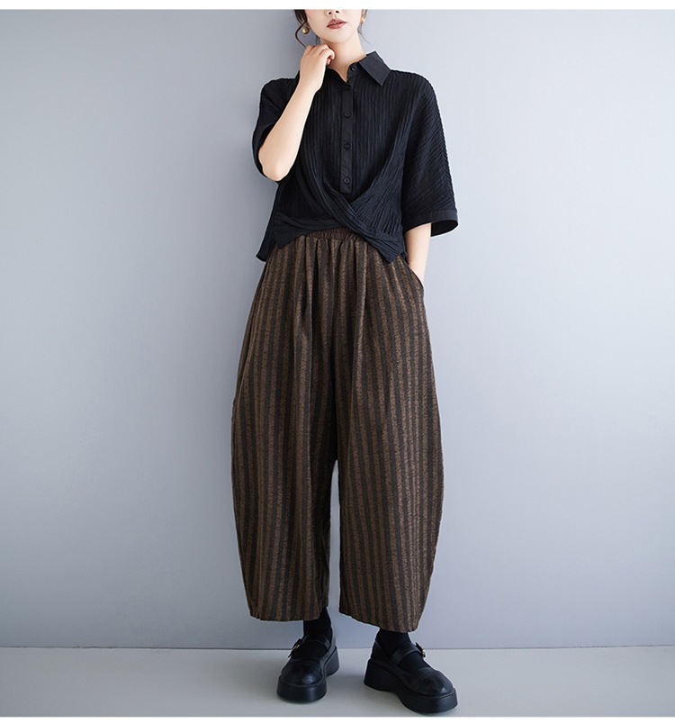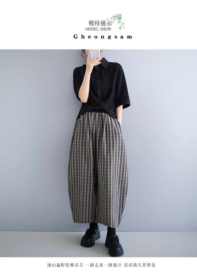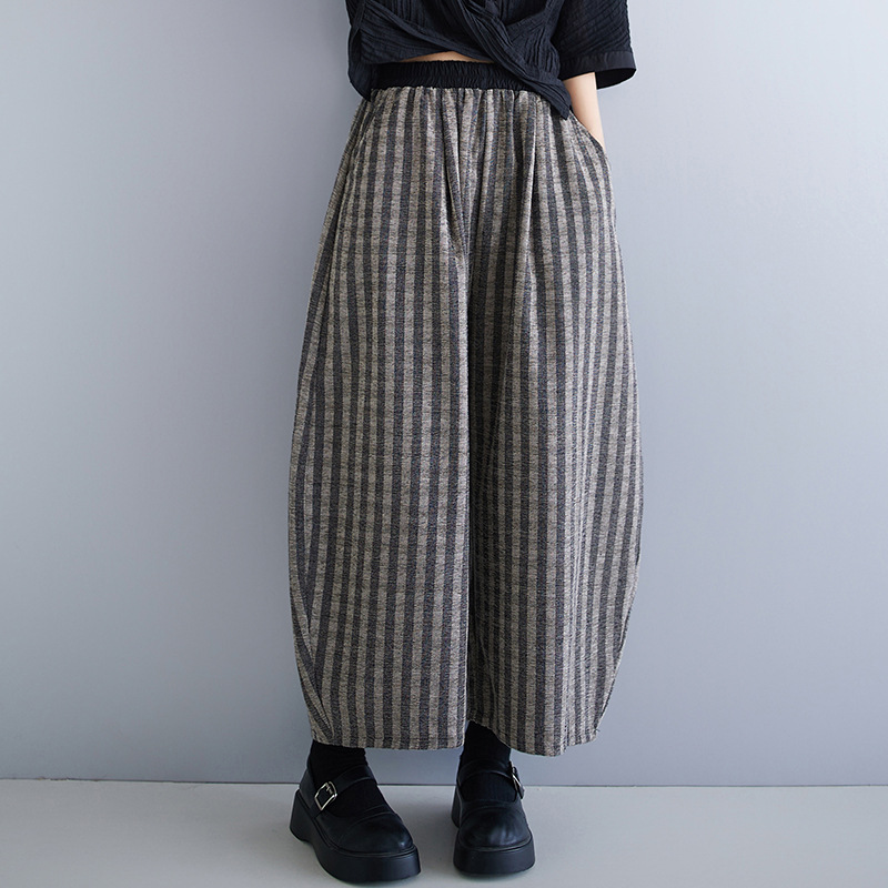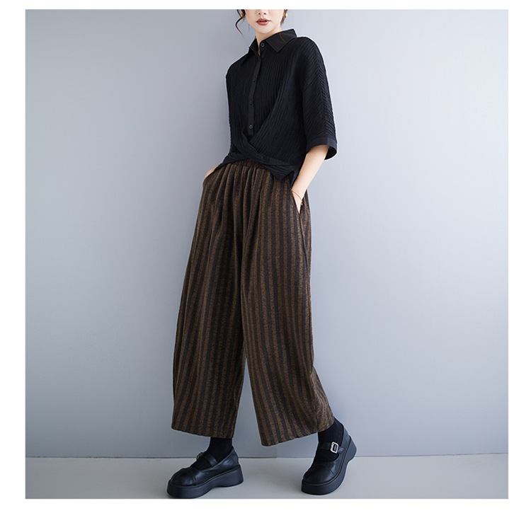 В наличии новый стиль, укороченные ретро китайские вельветовые полосатые нишевые широкие брюки, пышные брюки