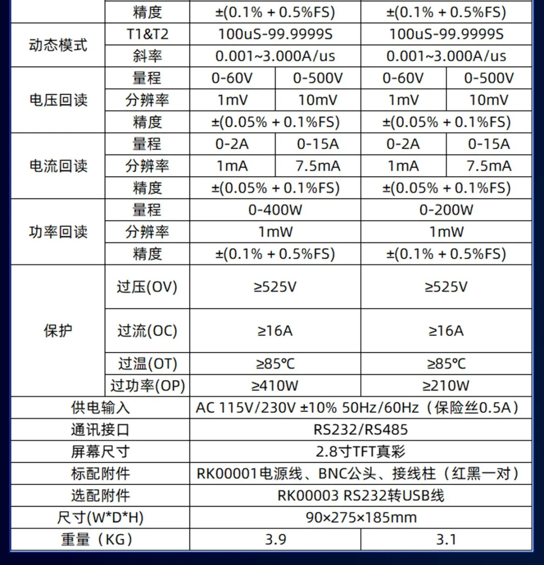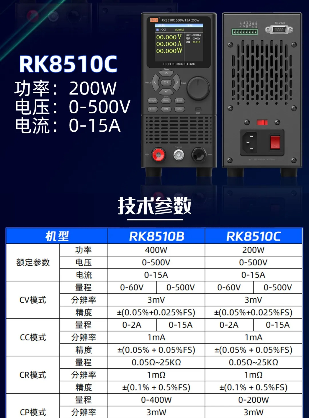 <<RK8510A 200 Вт 150 В 20 А>>; <<RK8510D 200 Вт*2, 150 В, 20 А, двухканальный>>; <<RK8510 400 Вт 150 В 40 А с возможностью связи>>; <<RK8510B(500В/1/400Вт)с связью>>; <<RK8510C(500В/1/200Вт)с связью>>; << RK8512 300 Вт 150 В 60 А >>; << RK9713 600 Вт 150 В 120 А>>; <<RK9713B 600 Вт 150 В 120 А>>; <<RK9714 1200 Вт 500 В 60 А>>; <<RK9714B 1200В 500В 60А>>; <<RK9715 1800 Вт 150 В 240 А>>; <<RK9716 2400 Вт 150 В 240 А>>