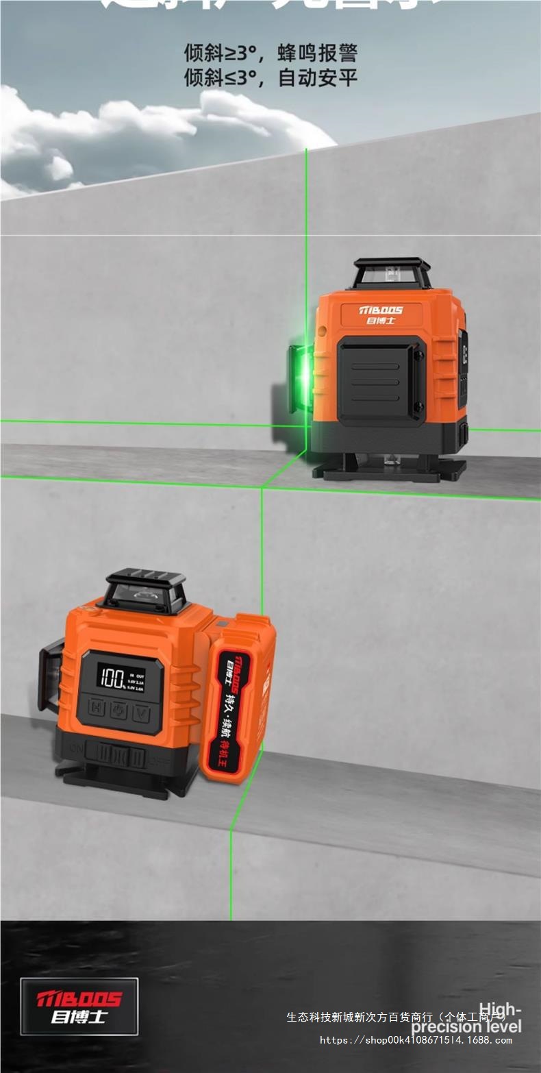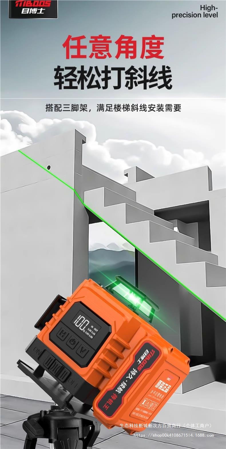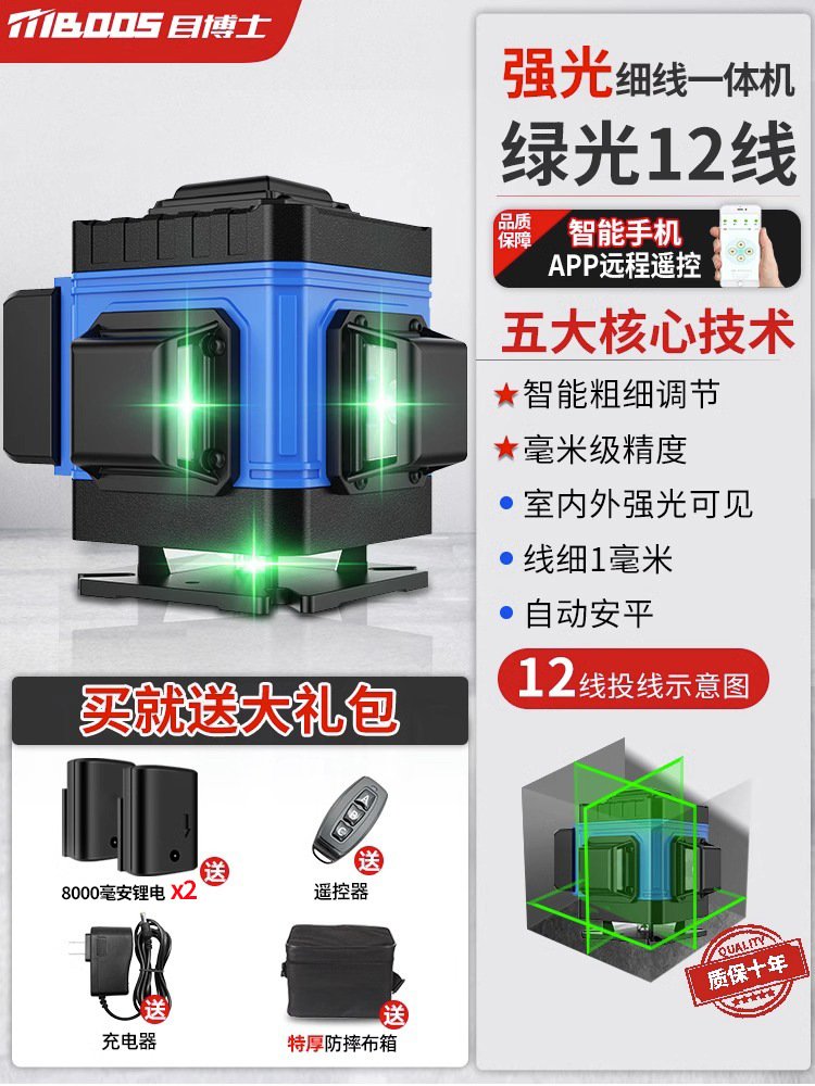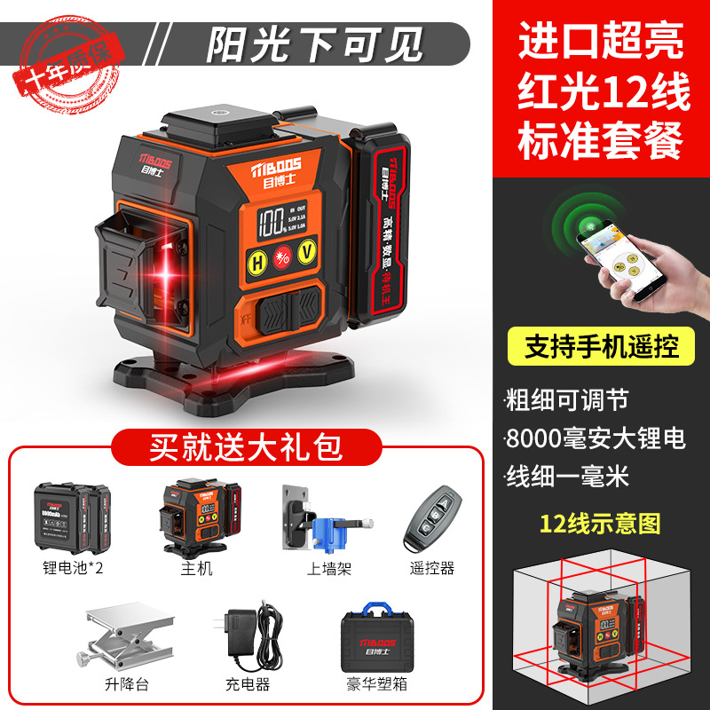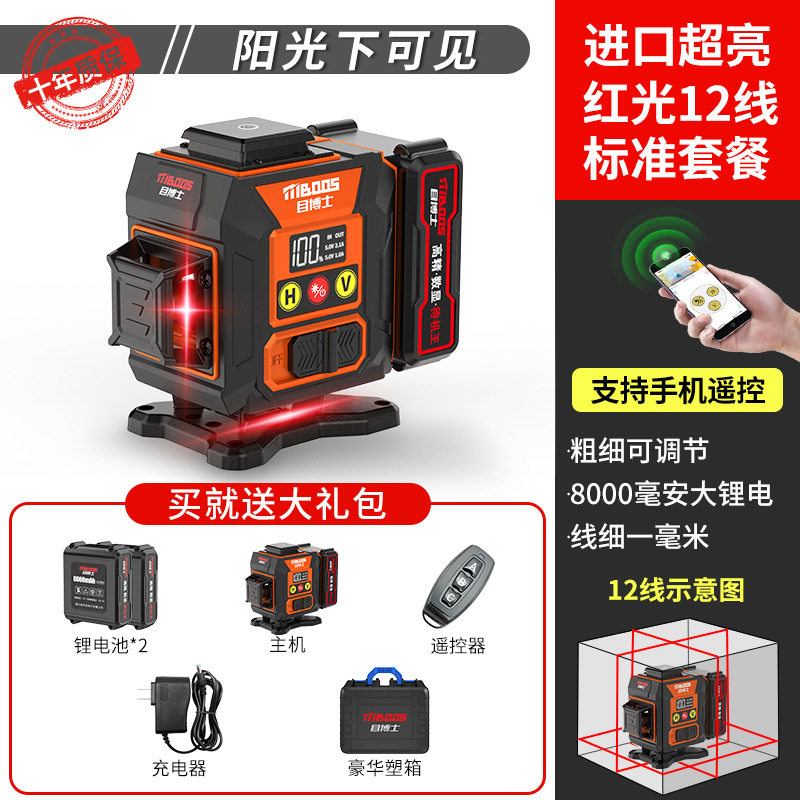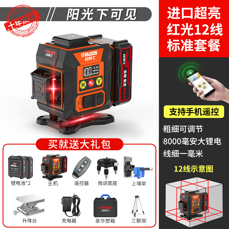 12-линейный инфракрасный измеритель уровня, высокоточный, сильный свет, тонкая линия, лазерный настенный наружный зеленый свет, автоматический нивелирующий водомер