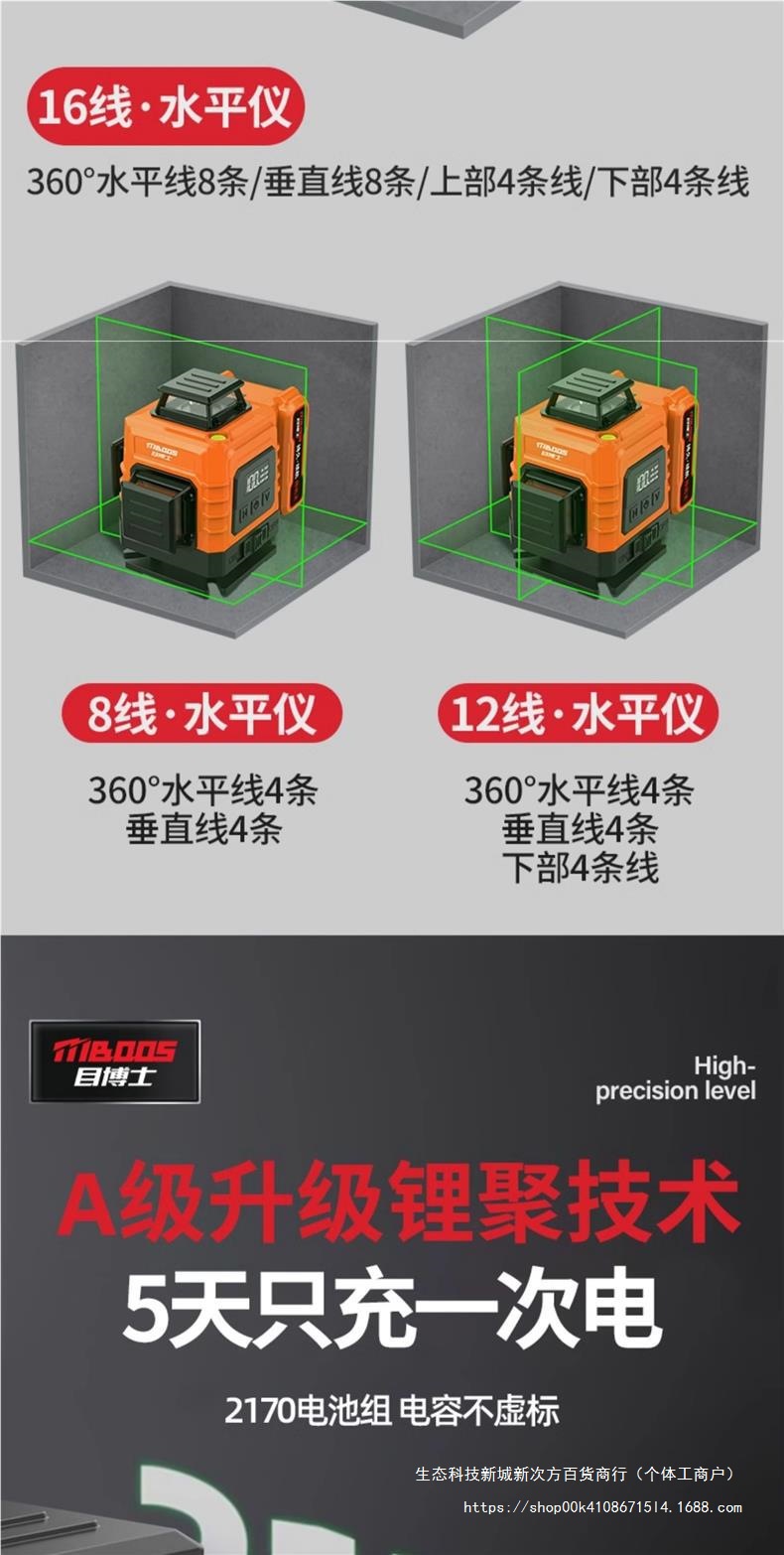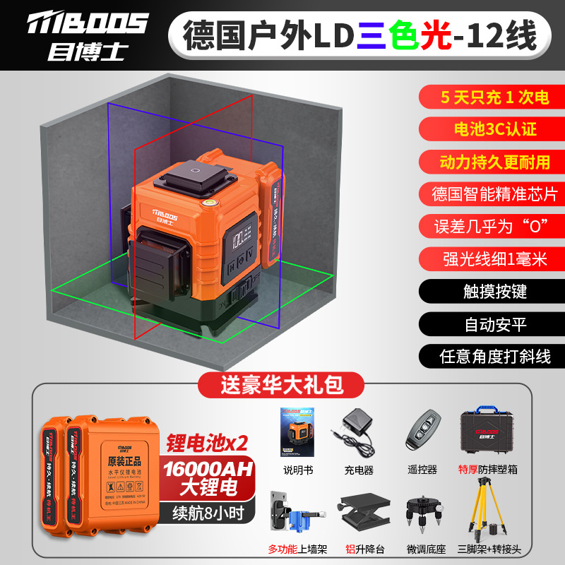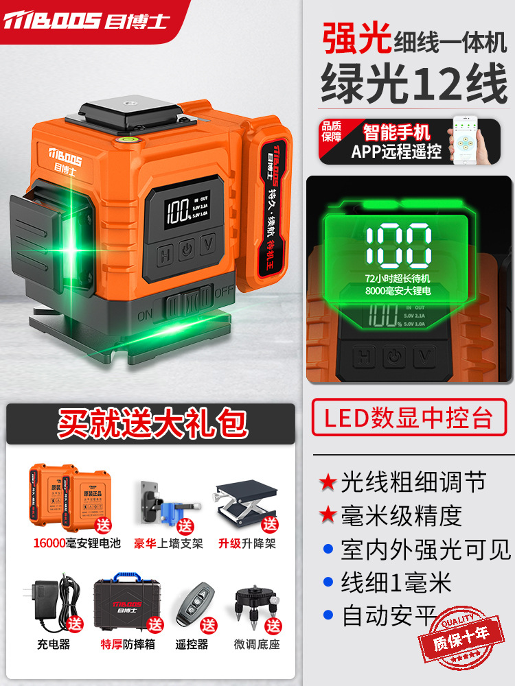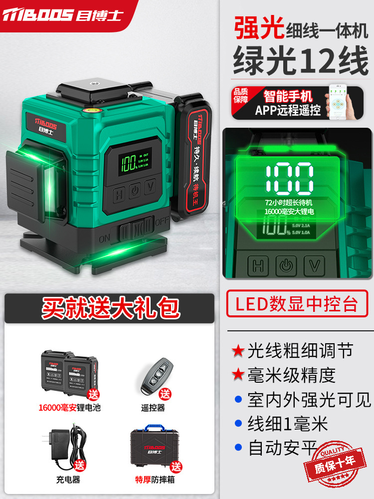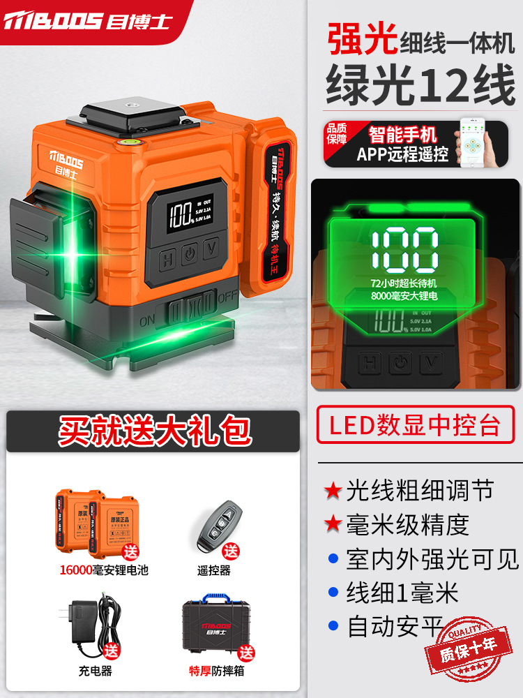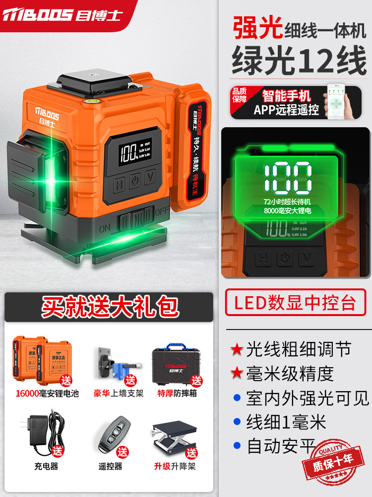 12-линейный инфракрасный измеритель уровня, высокоточный, сильный свет, тонкая линия, лазерный настенный наружный зеленый свет, автоматический нивелирующий водомер