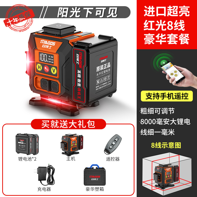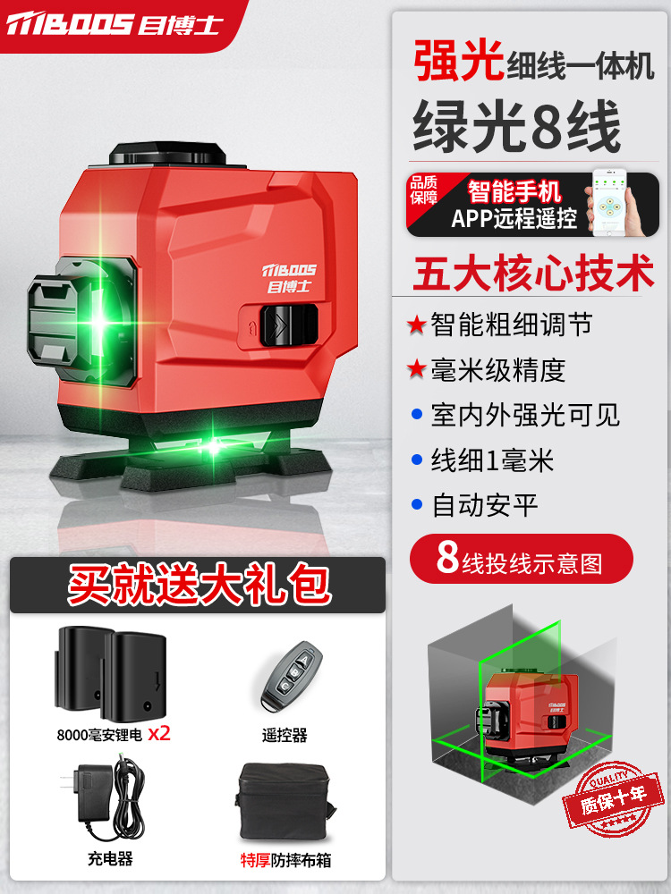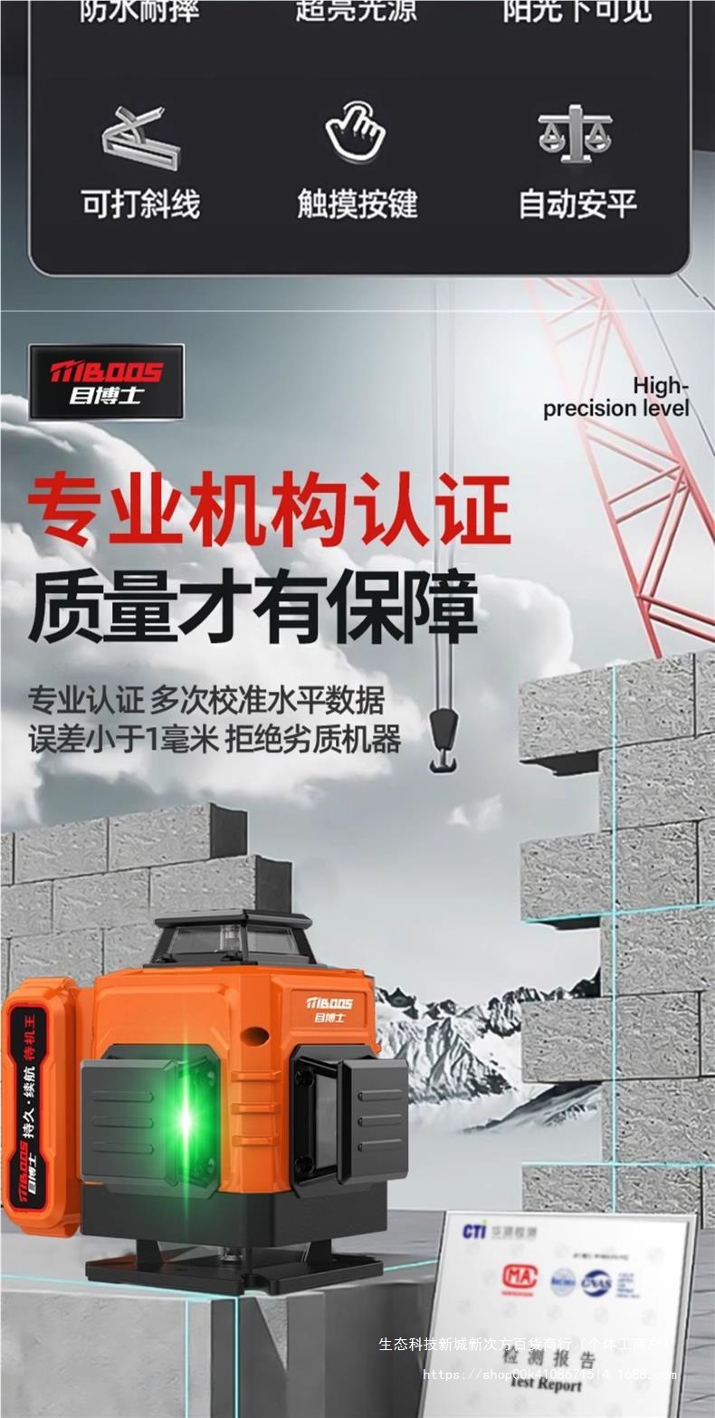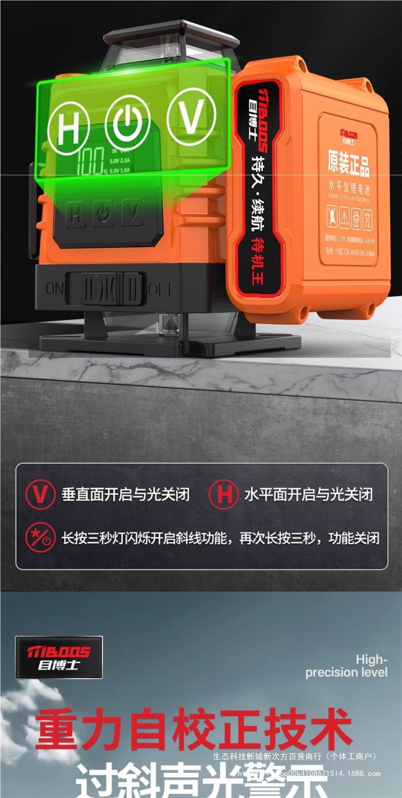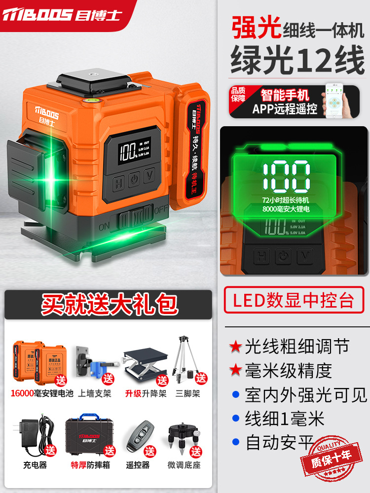 12-линейный инфракрасный измеритель уровня, высокоточный, сильный свет, тонкая линия, лазерный настенный наружный зеленый свет, автоматический нивелирующий водомер