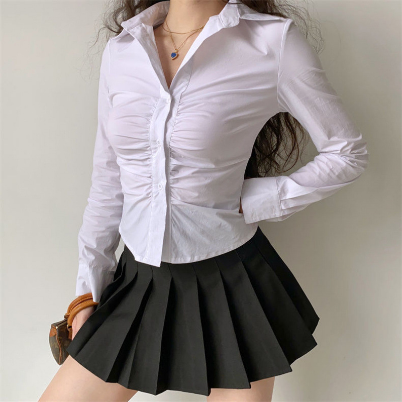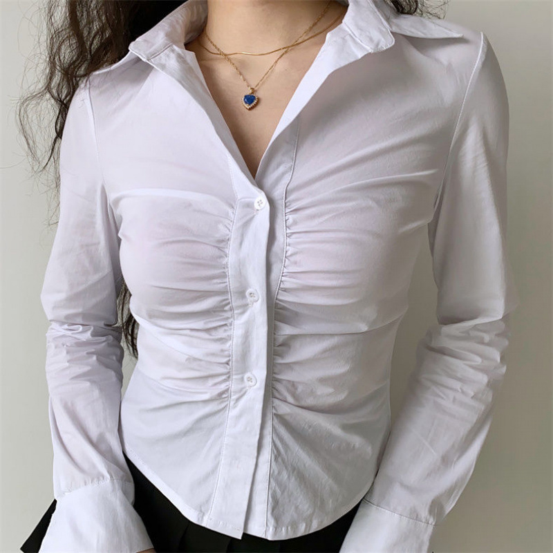 Рубашка женская дизайнерская нишевая белая рубашка с длинными рукавами на талии 2025 весна-осень новый шикарный топ для похудения