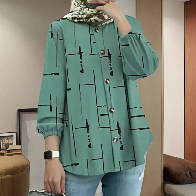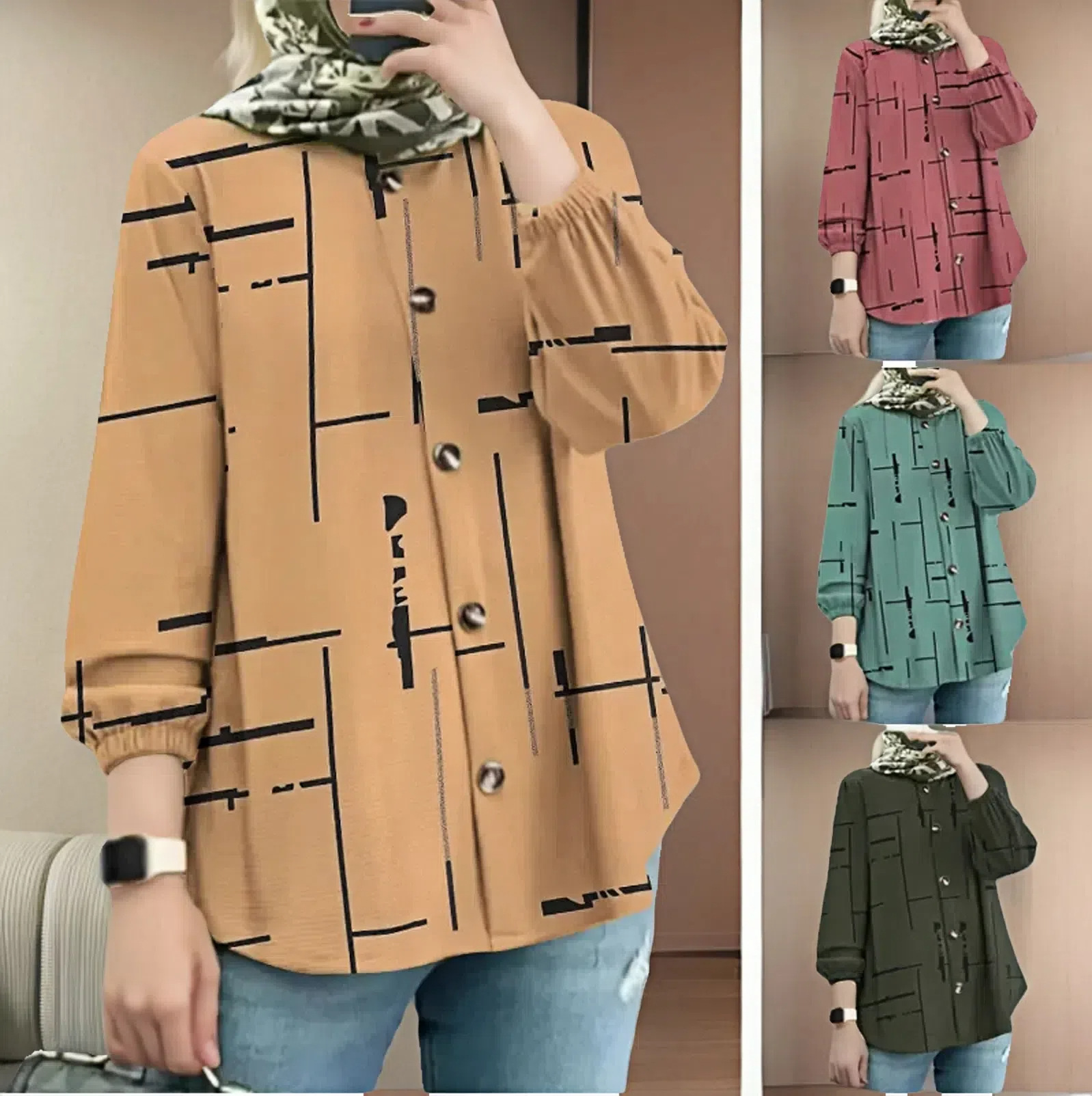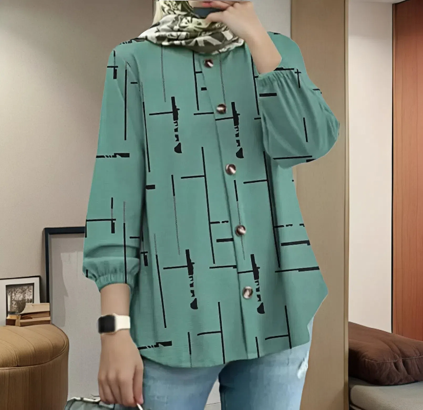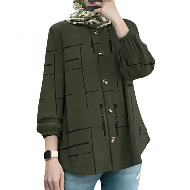 В наличии Amazon трансграничная женская мусульманская свободная модная богемная повседневная свободная рубашка с пышными рукавами и принтом