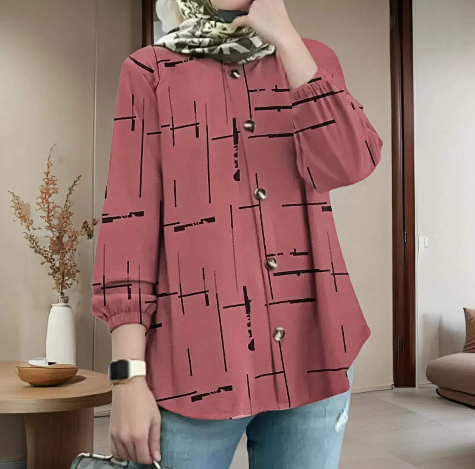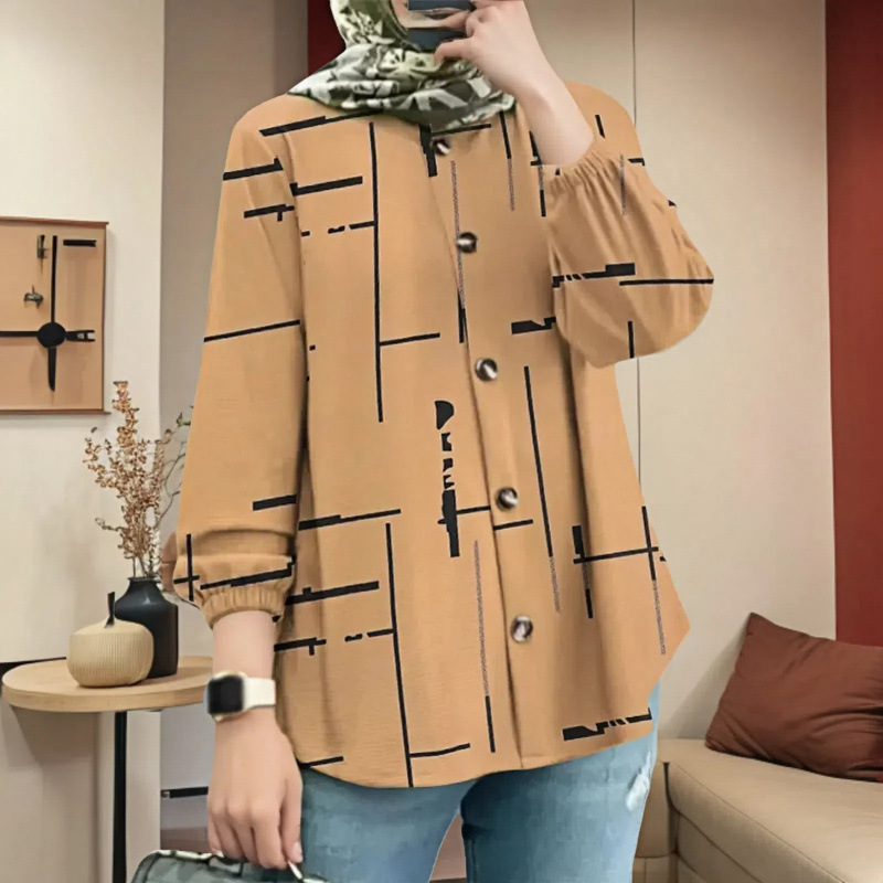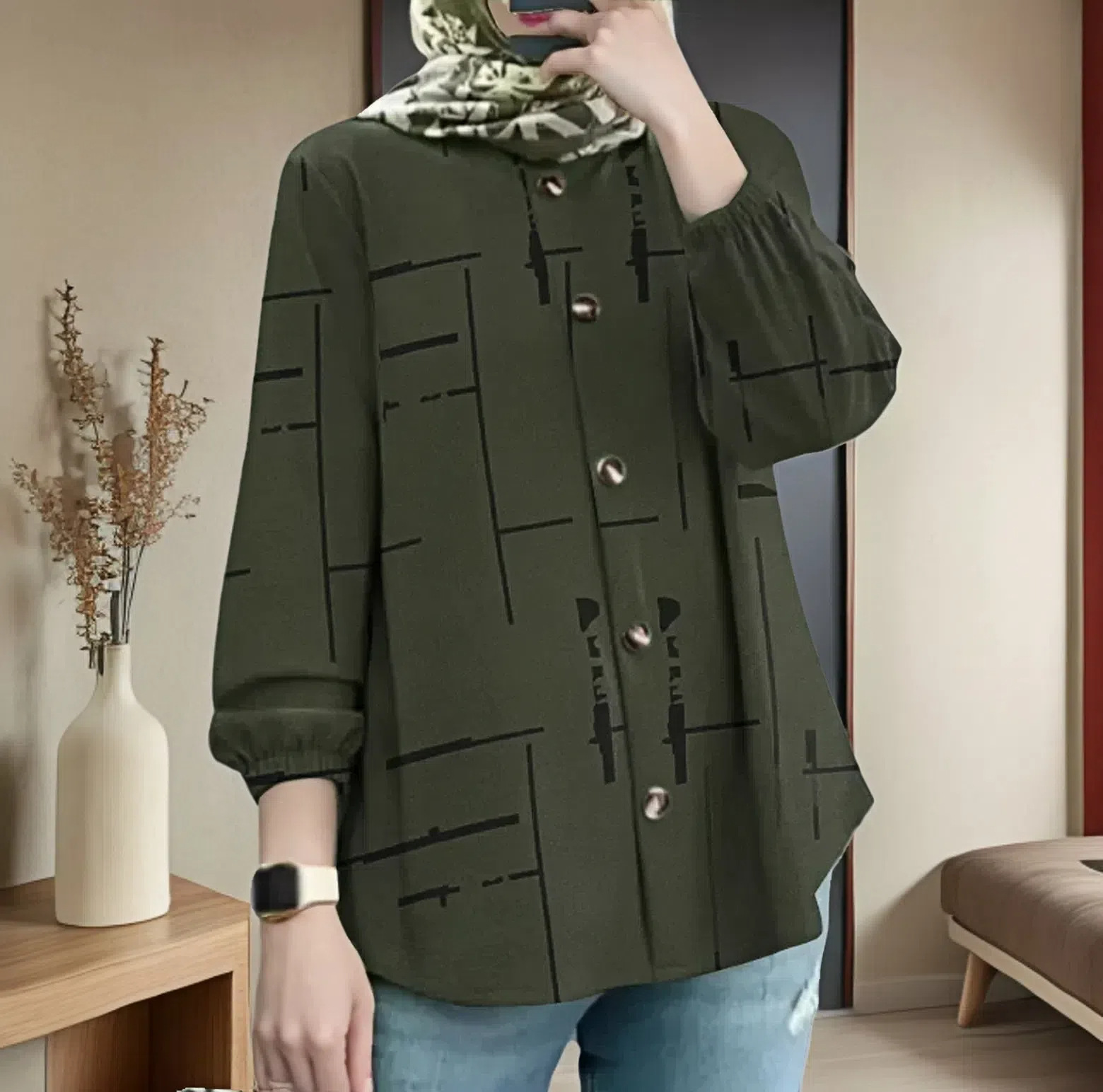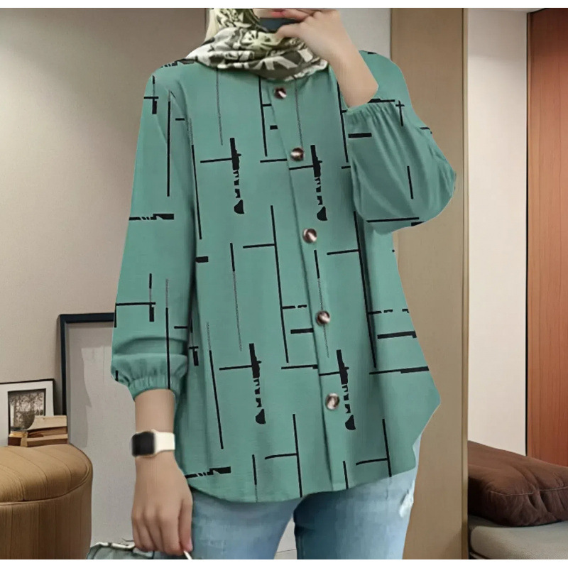 В наличии Amazon трансграничная женская мусульманская свободная модная богемная повседневная свободная рубашка с пышными рукавами и принтом