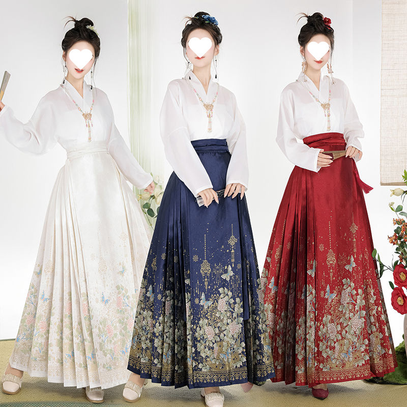 Яркий белый топ + бежевая юбка-лошадь; Яркий белый топ + синяя юбка-лошадь; Яркий белый топ + красная юбка-лошадь; Яркая цельная бежевая юбка-лошадь; Яркая цельная синяя юбка-лошадь; Яркая цельная красная юбка-лошадь