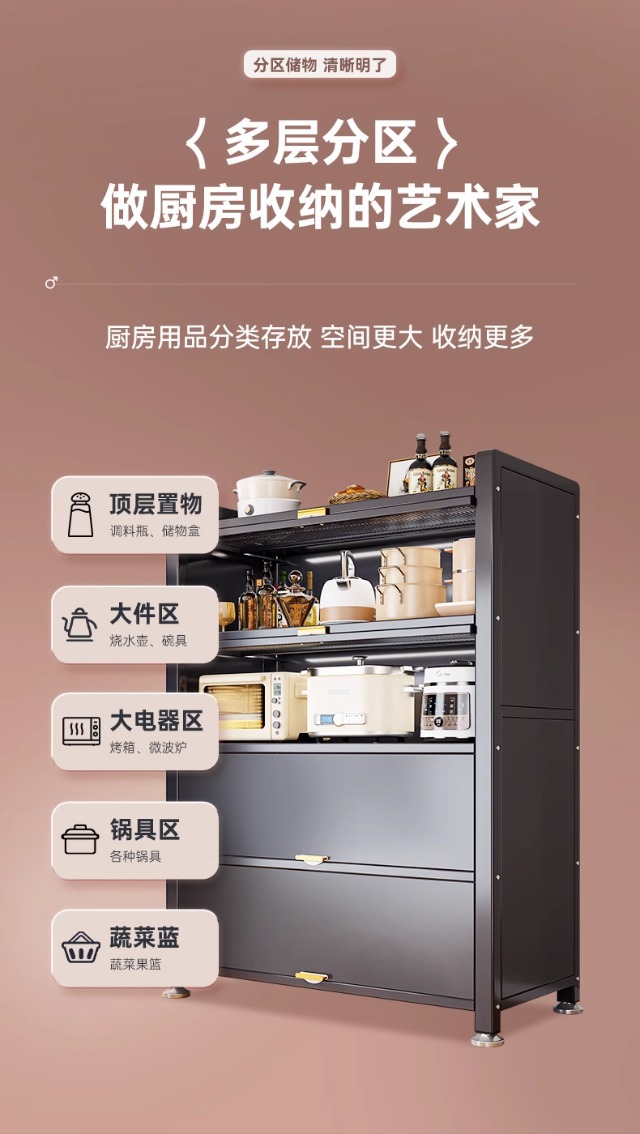 Кухонная полка от пола до пола пылезащитный многоуровневый шкаф для хранения