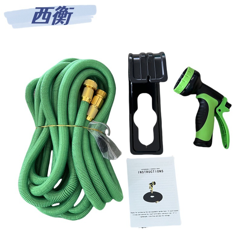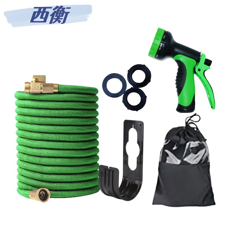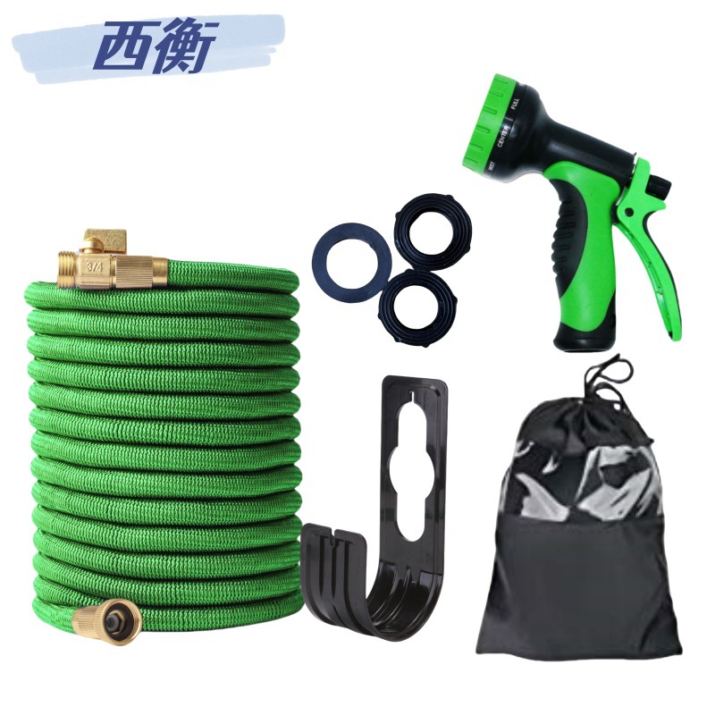 Производитель продаёт 3-х секционный телескопический садовый шланг с высоконапорным водяным пистолетом, набор для мойки автомобилей, зелёный цвет.