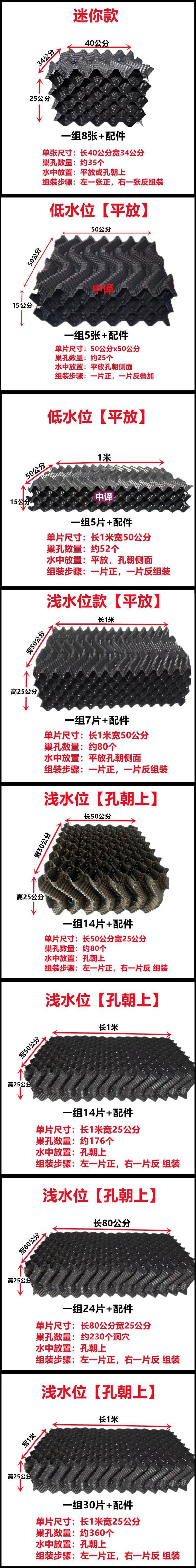 Стол для кормления угрей [1 шт.]; 7 штук [цилиндровый ствол разведения] длина 50 ширина 50 высота 25; 10 штук [цилиндровый ствол разведения] длина 50 ширина 50 высота 35; 15 штук [цилиндрический ствол разведения] длина 50 ширина 50 высота 50; 8 штук [маленькая модель] длина 50 ширина 25 высота 25; 10 штук [маленькая модель] длина 50 ширина 34 высота 35; 10 штук [индивидуальная сборка] длина 50 ширина 35 высота 16; 8 штук [мини-модель, всего 2 комплекта] 40*34*25; 5 штук [низкий уровень воды, всего 2 комплекта] 50*50*15; 5 штук [низкий уровень воды, всего 2 комплекта] 1m *50*15; 7 штук [мелководье] длина 1m ширина 50 высота 25; 14 штук [неглубокая вода] длина 50 ширина 50 высота 25; 14 штук [мелководье] длина 1m ширина 50 высота 25; 24 шт. [неглубокая вода] длина 1m ширина 80 высота 25; 30 штук [мелководье] длина 1m ширина 1m высота 25; 24 шт. [мелководный уровень] длина 80 ширина 80 высота 25; 10 штук [средний уровень воды] длина 1m ширина 50 высота 35; 10 штук [средний уровень воды] длина 1m ширина 35 высота 34; 14 штук [средний уровень воды] длина 1m ширина 50 высота 34; 24 шт. [средний уровень воды] длина 1m ширина 80 высота 34; 30 штук [средний уровень воды] длина 1m ширина 1m высота 34; 18 штук [тип рассады] длина 60 ширина 30 высота 25; 36 штук [тип рассады] длина 60 ширина 50 высота 30; 13 штук [тип рассады угря] длина 60 ширина 30 высота 25
