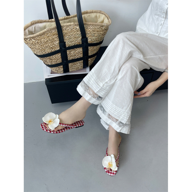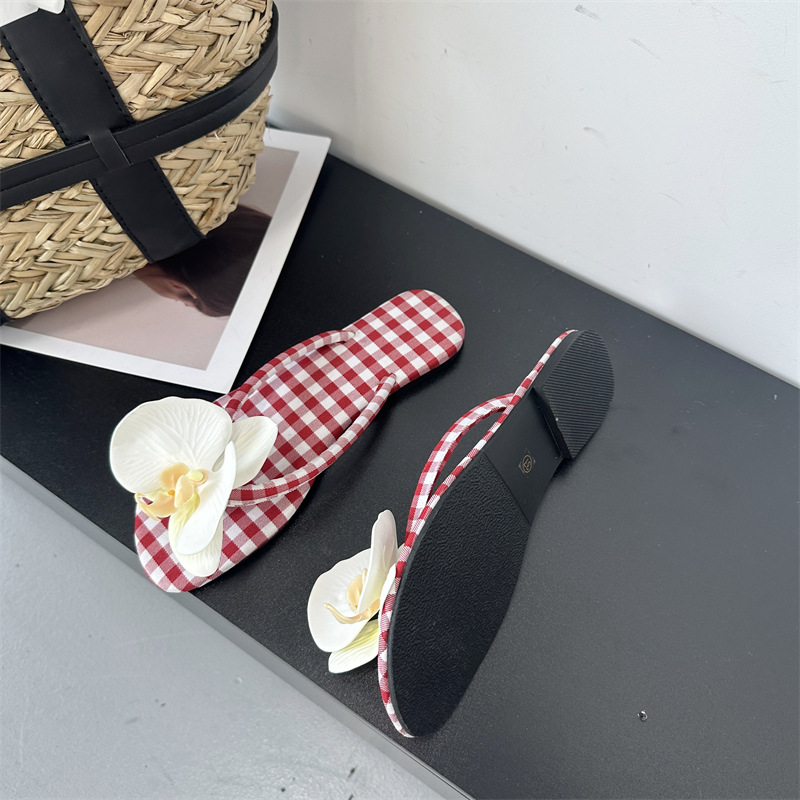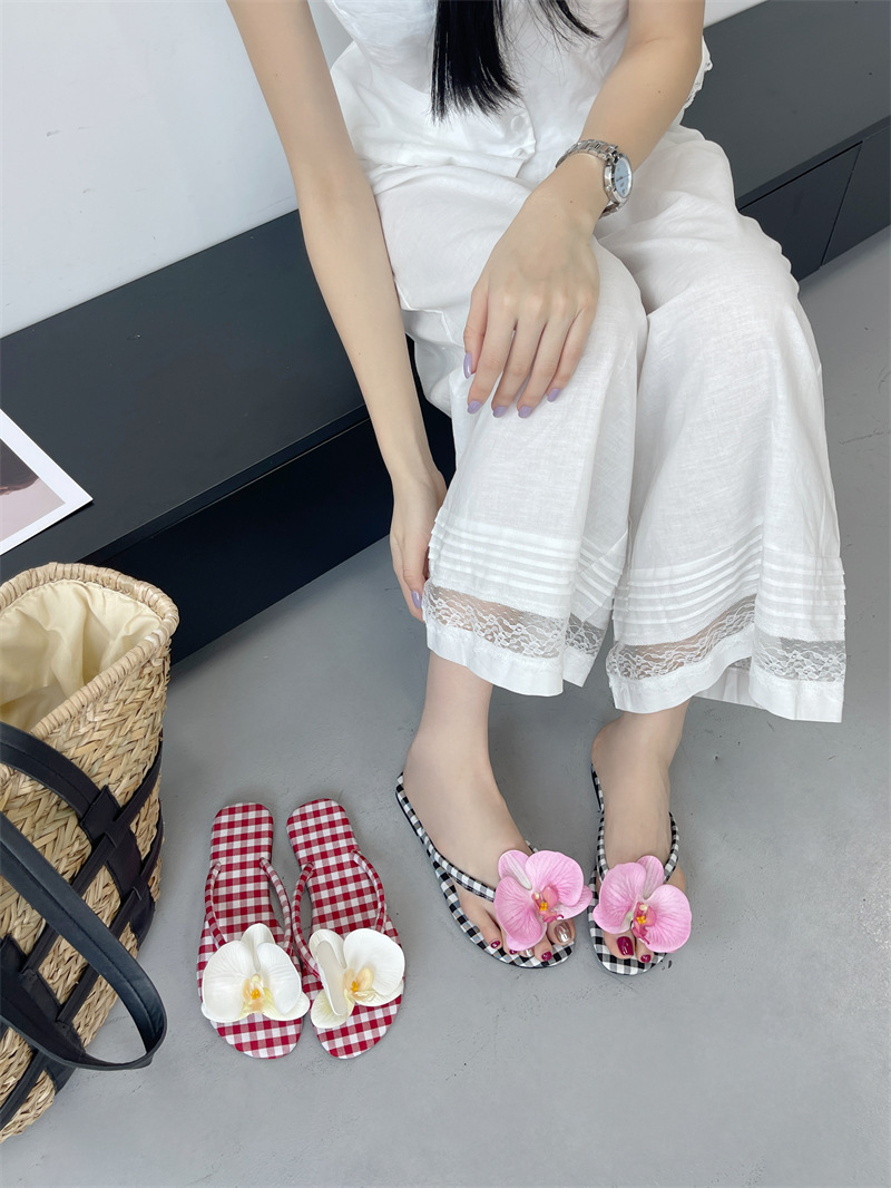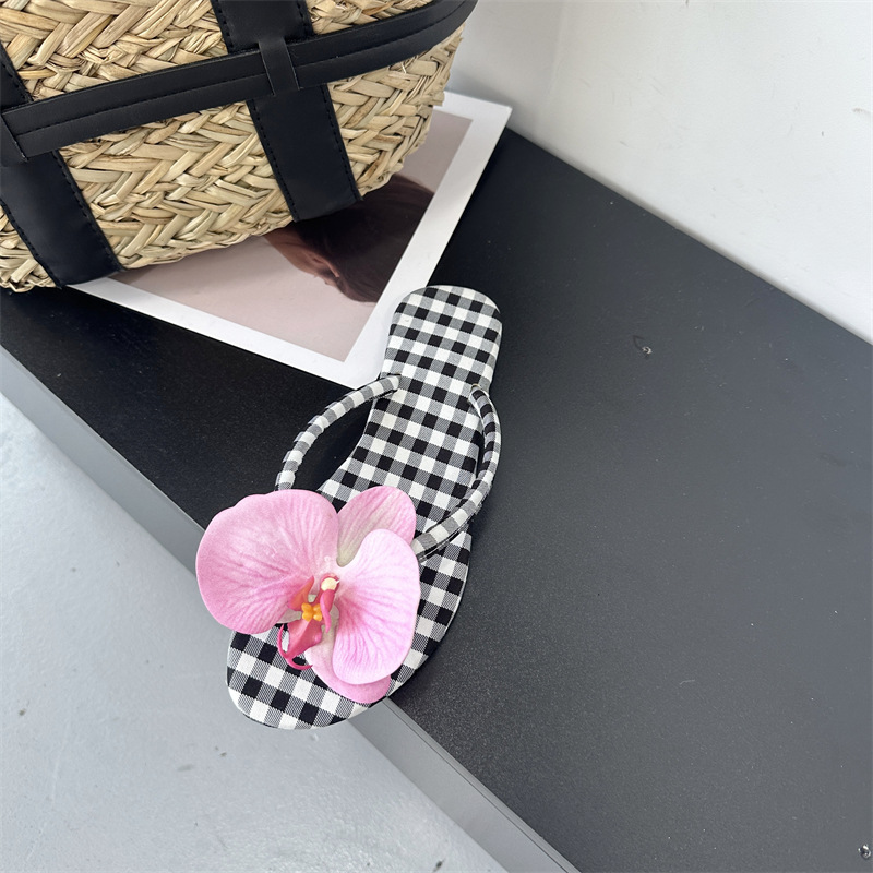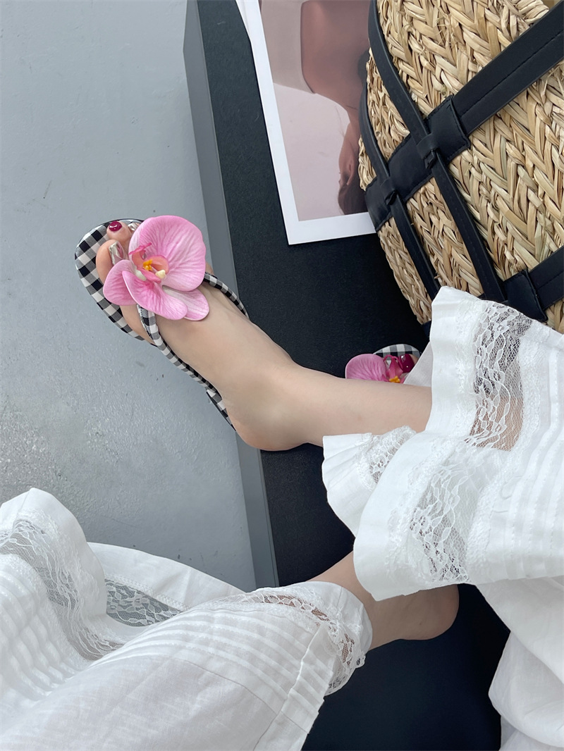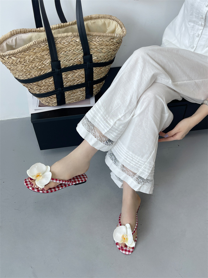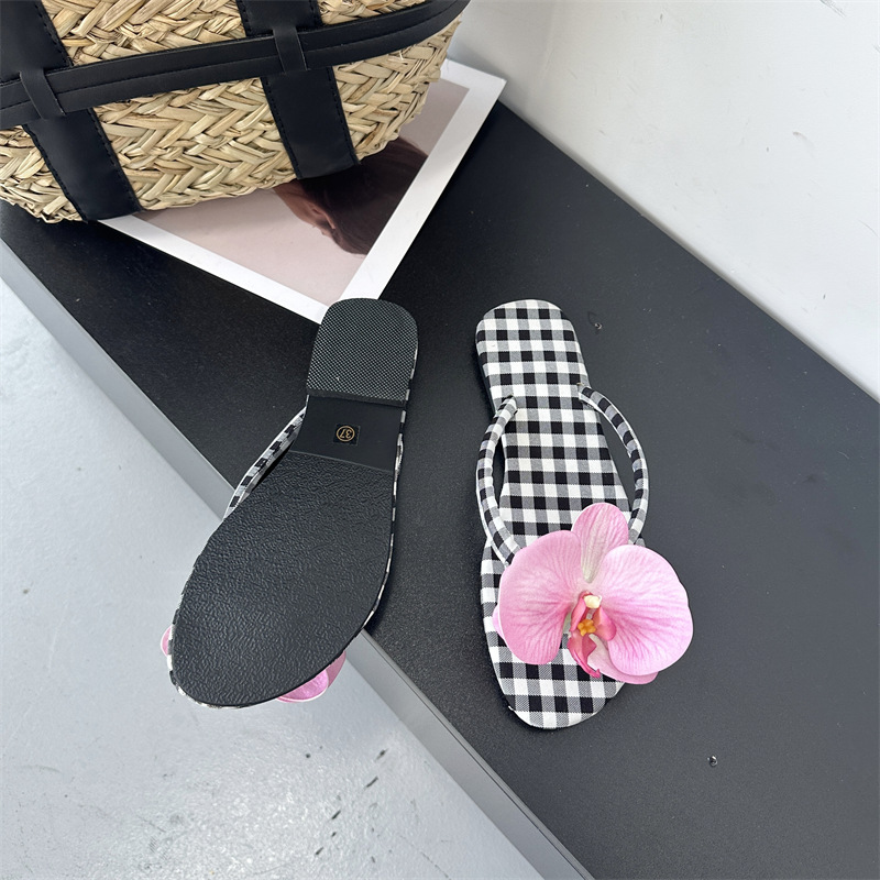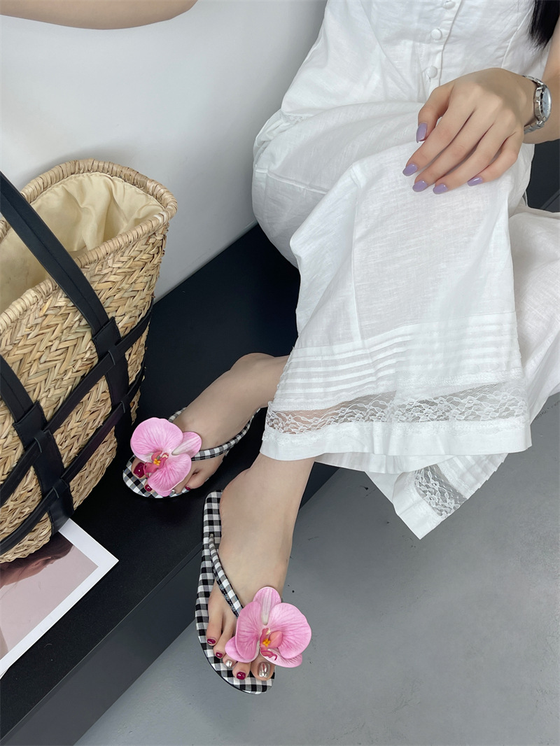Летние новые европейские и американские модные плоские сандалии-шлепанцы женские туфли с цветочным принтом на низком каблуке женские тапочки экспорт 43