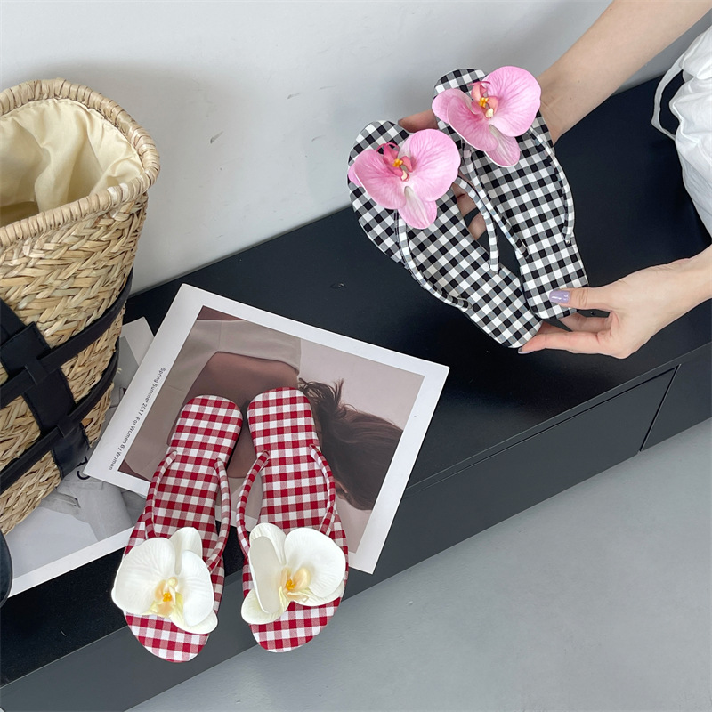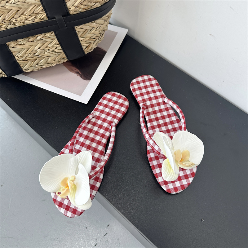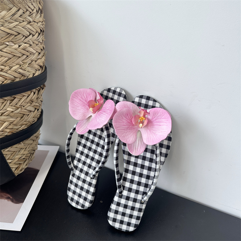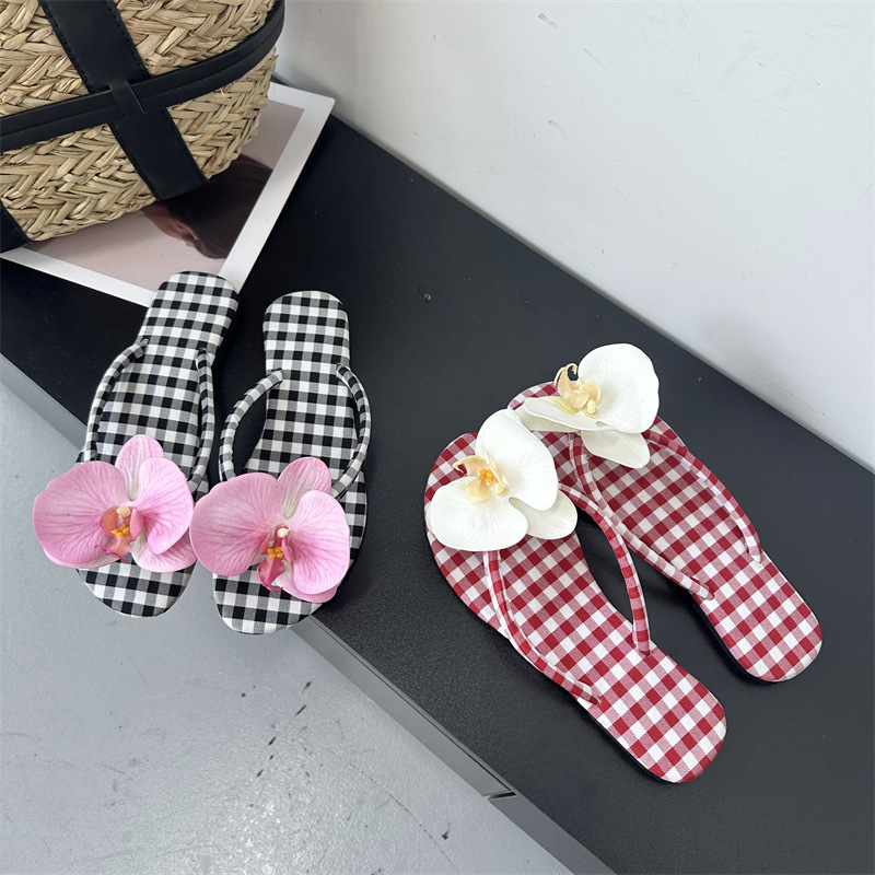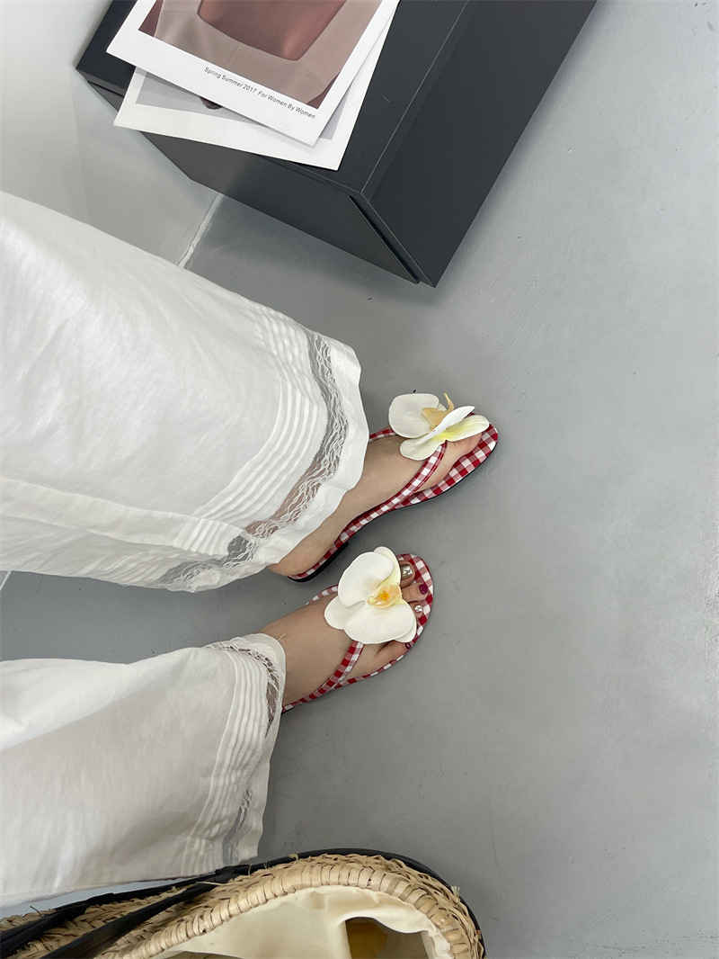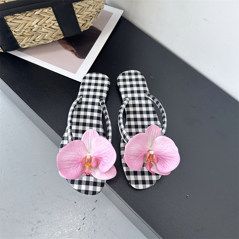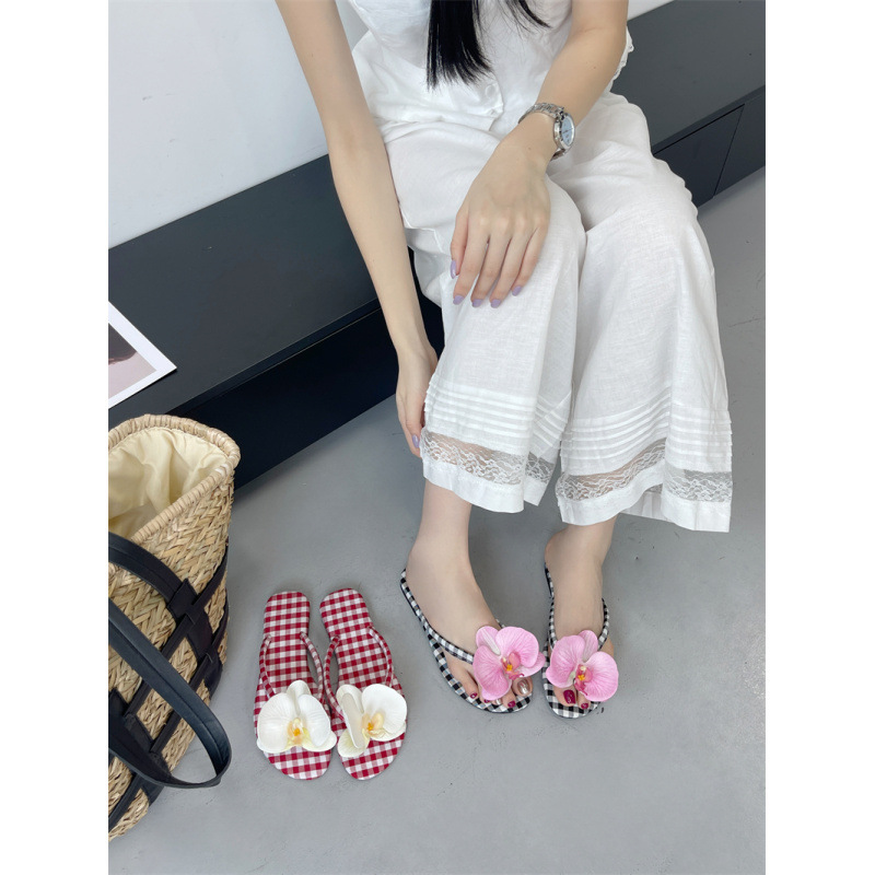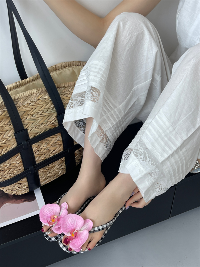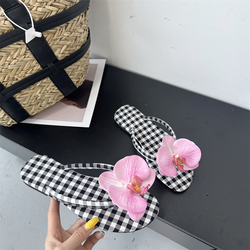Летние новые европейские и американские модные плоские сандалии-шлепанцы женские туфли с цветочным принтом на низком каблуке женские тапочки экспорт 43