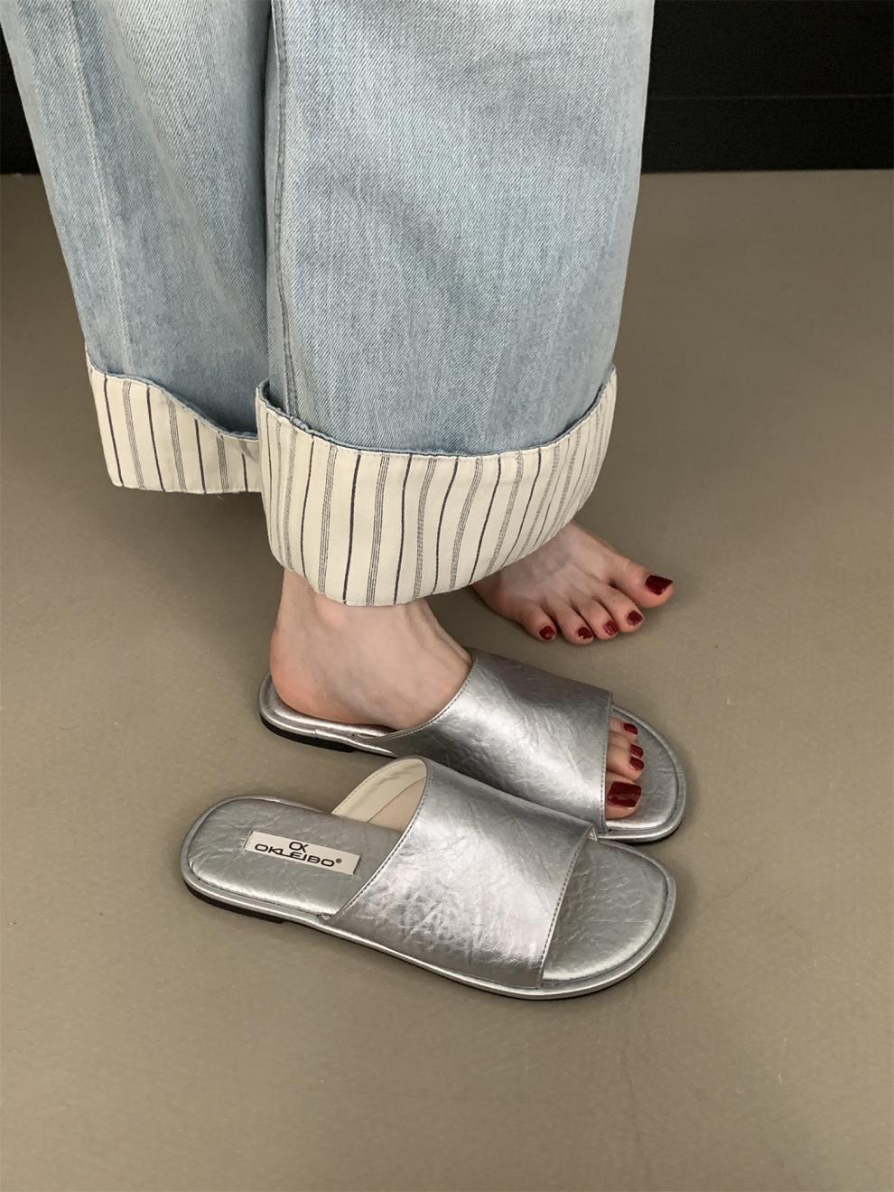Женские пляжные шлепанцы в корейском стиле нордик, лето 2025, новые, плоская подошва, для отдыха на море, полусандалии