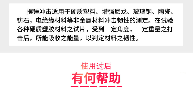 Определение ударной вязкости твердых пластмасс, армированного нейлона, стекловолокна, керамики, литого камня, электроизоляционных материалов и других неметаллических материалов.