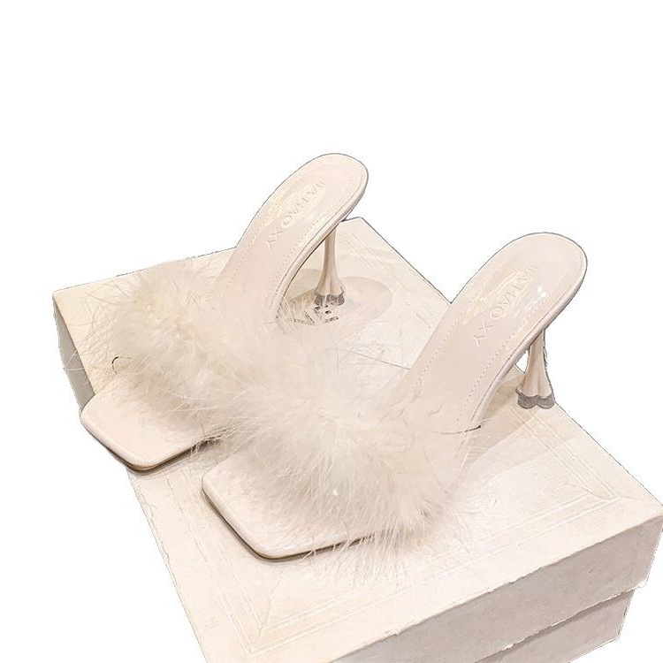 Модные меховые туфли на высоком каблуке для женщин, лето 2025, новый стиль феи, туфли-стилето с заостренным носком