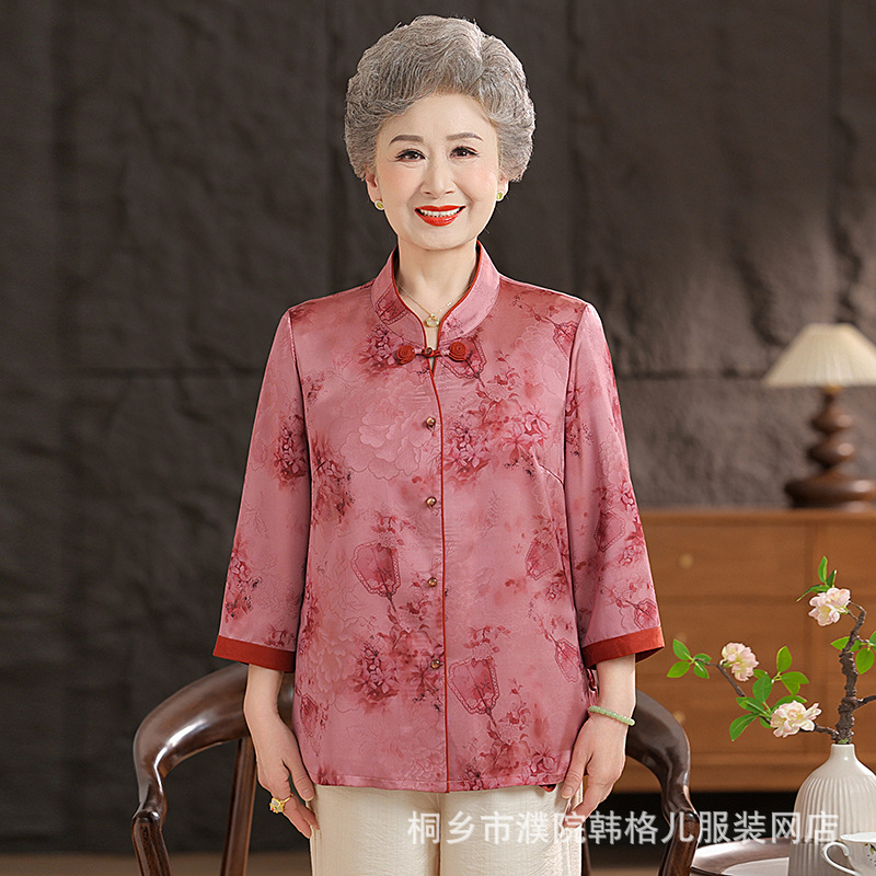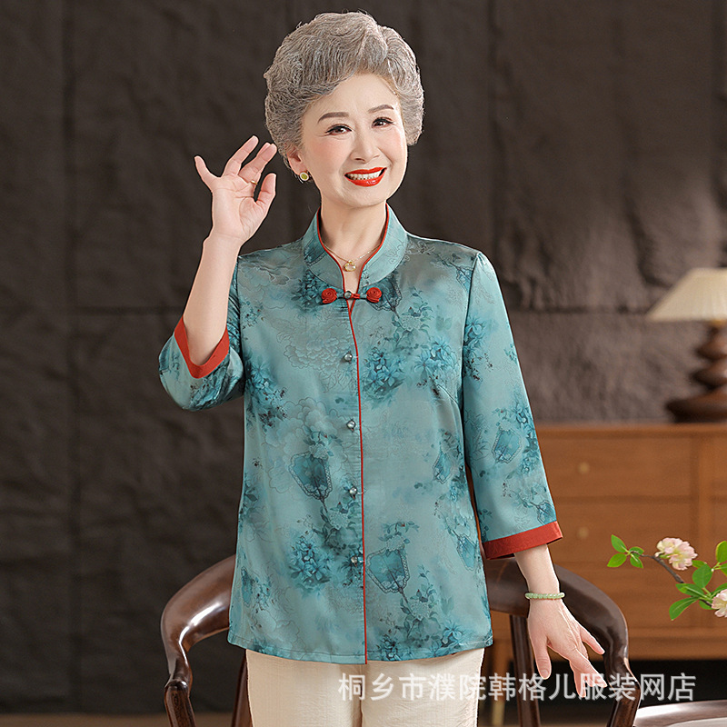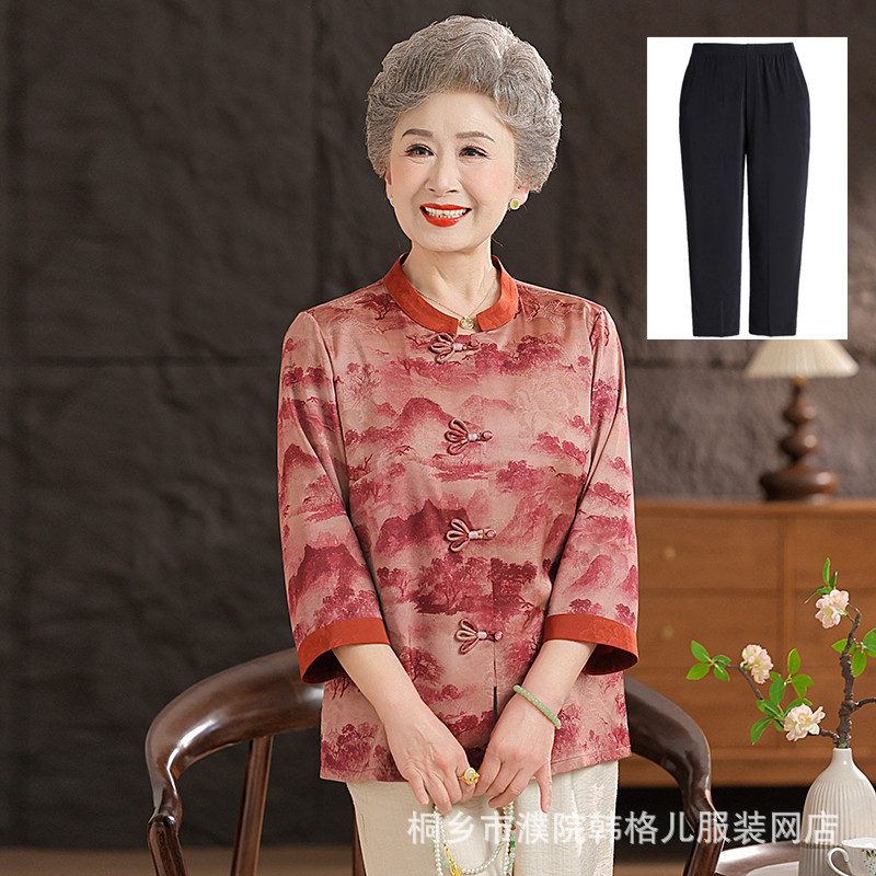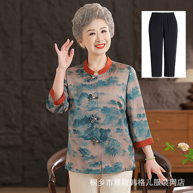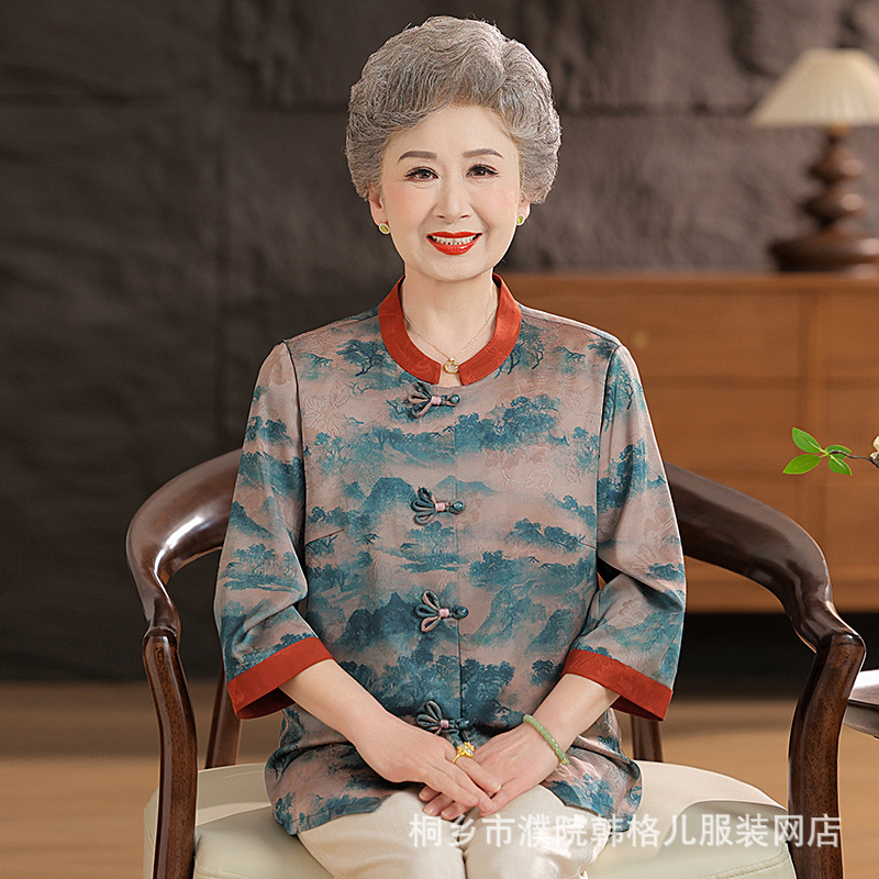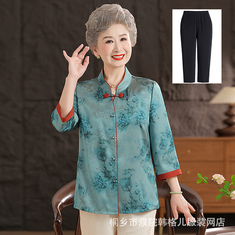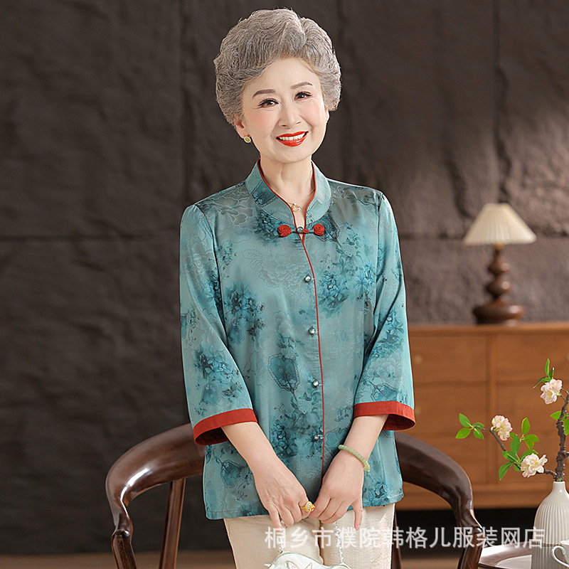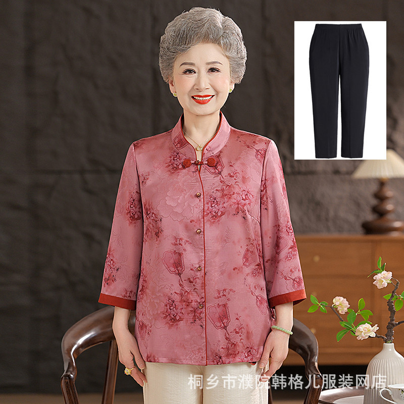 Пожилой летний костюм бабушки рубашки 60-летний 70 мама новый китайский костюм Tang старая летняя рубашка