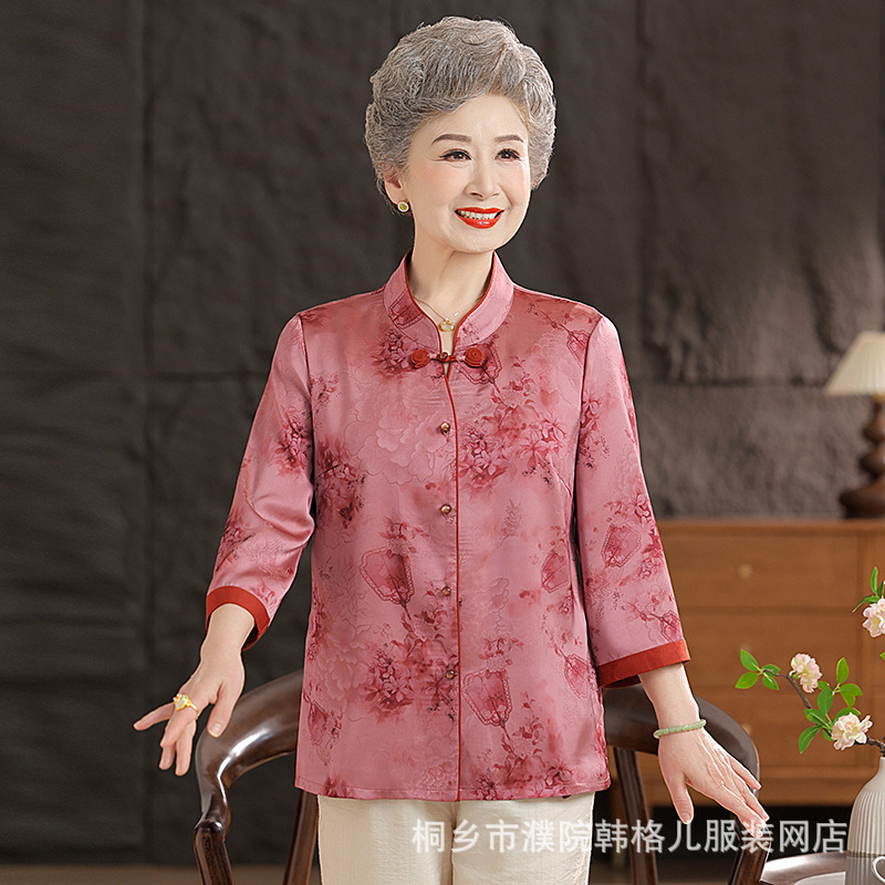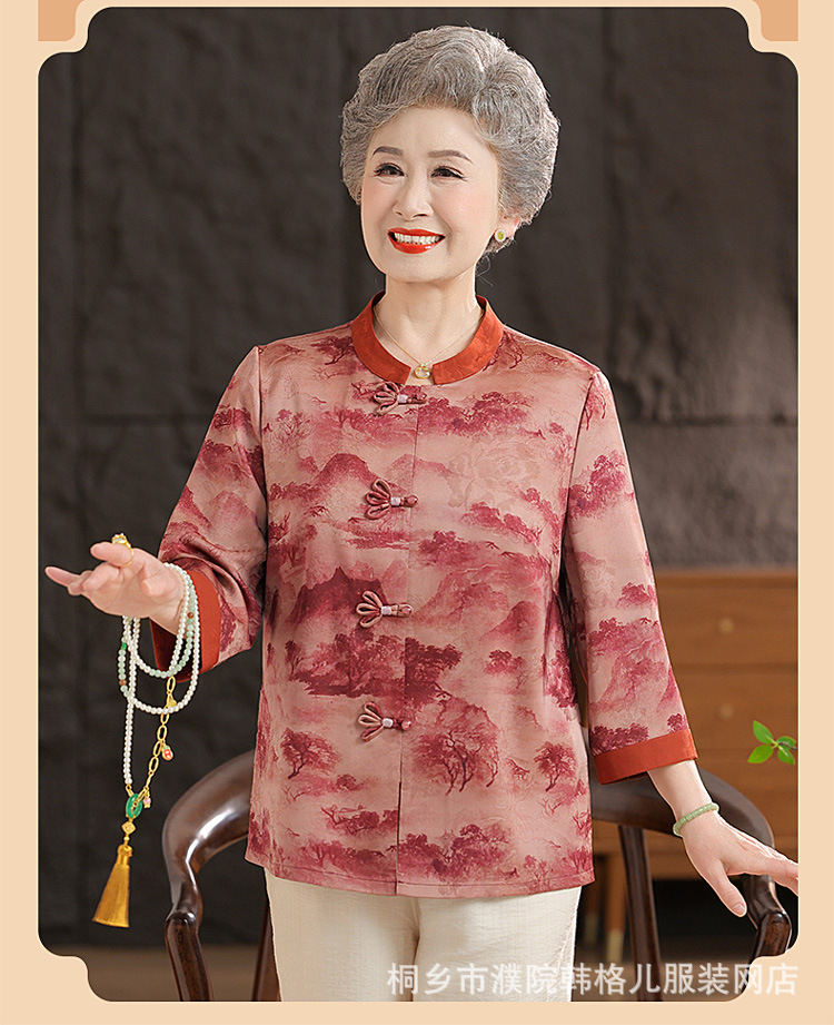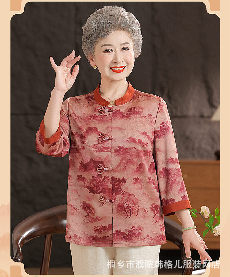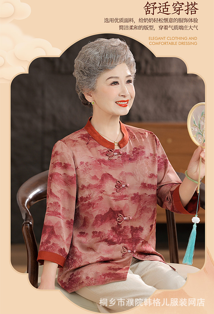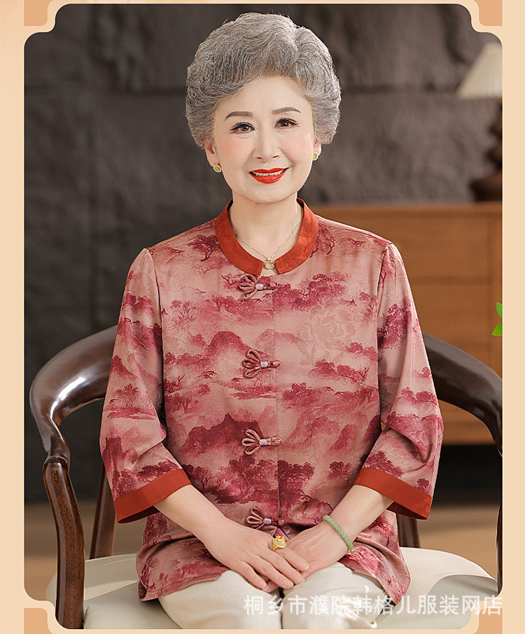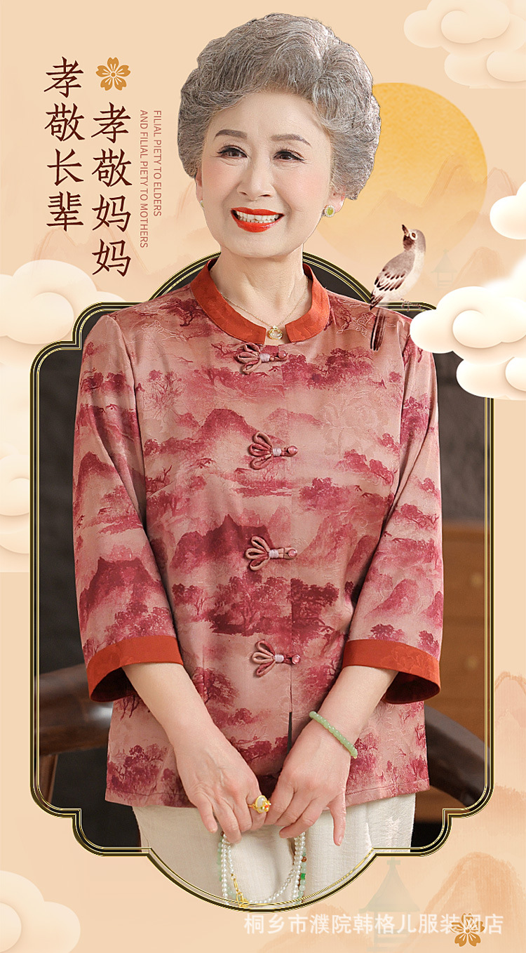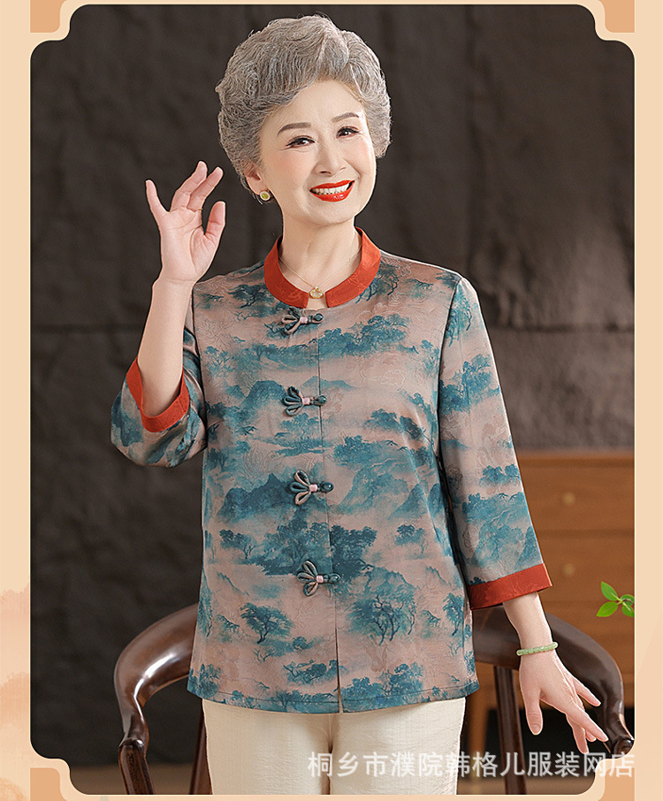 Пожилой летний костюм бабушки рубашки 60-летний 70 мама новый китайский костюм Tang старая летняя рубашка