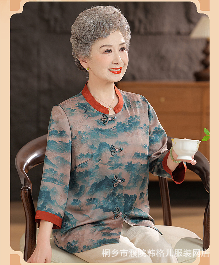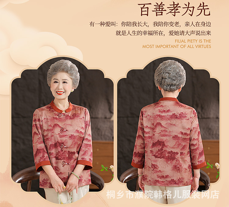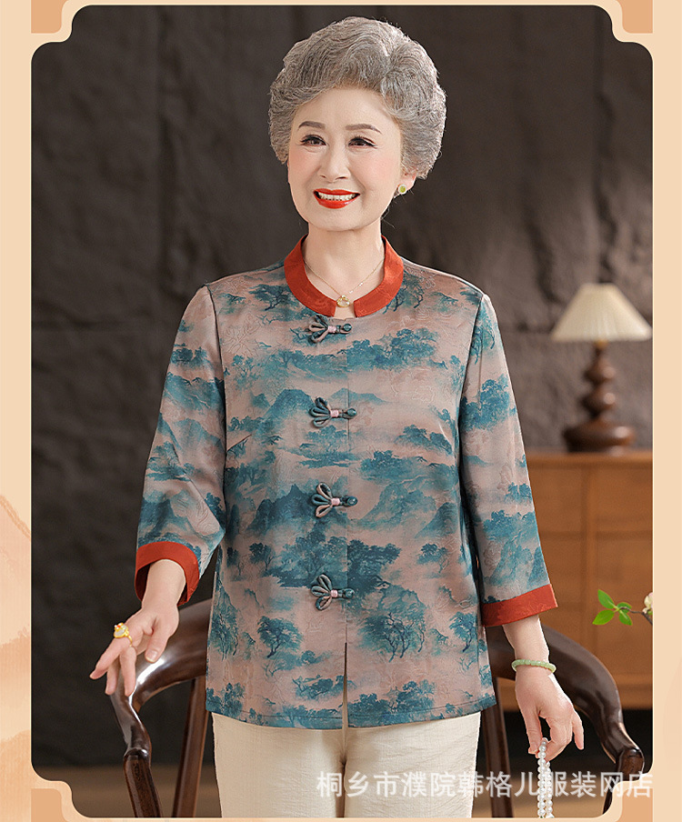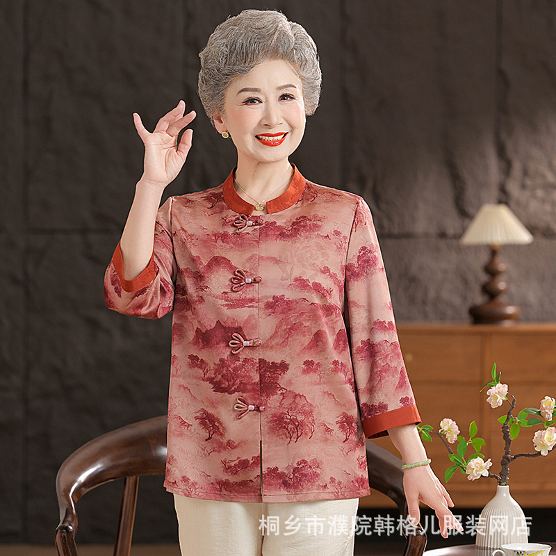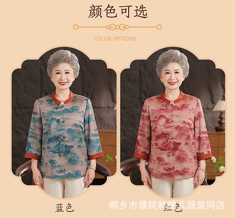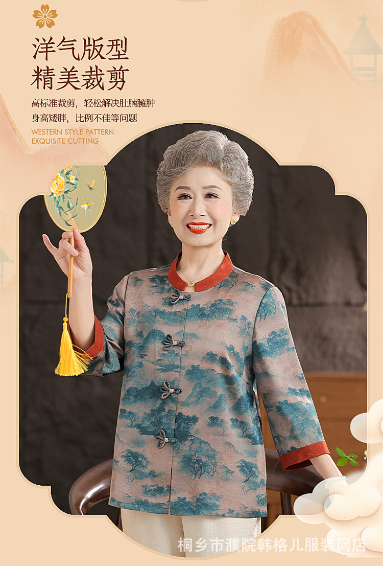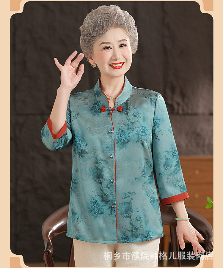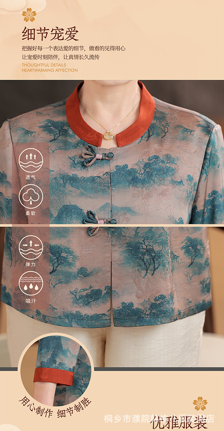 Пожилой летний костюм бабушки рубашки 60-летний 70 мама новый китайский костюм Tang старая летняя рубашка