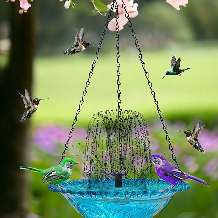 跨境爆款 悬挂式喂鸟器 太阳能漂浮喷泉 花园鸟浴喷泉 喂水器