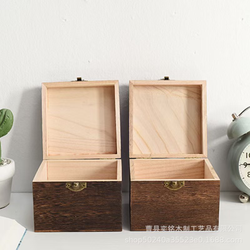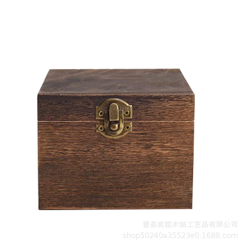 Деревянная подарочная упаковка для ювелирных изделий, ретро-пожженный цвет, бытовая откидная коробка для хранения, настольная шкатулка для драгоценностей из цельного дерева, подарочная коробка, деревянная коробка