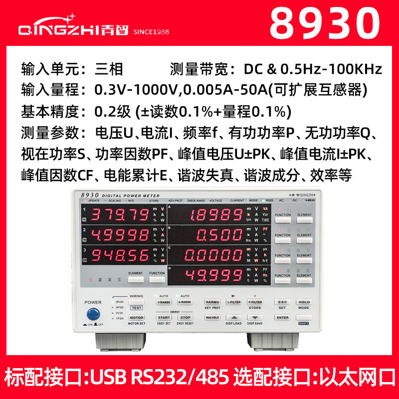 Qingzhi 8930 трехфазный высокоточный измеритель мощности, двигатель, высокочастотный измеритель электрических параметров, гармонический счетчик электроэнергии