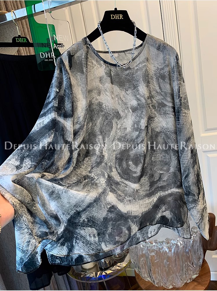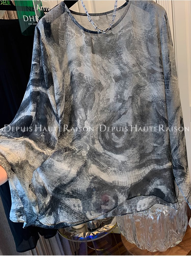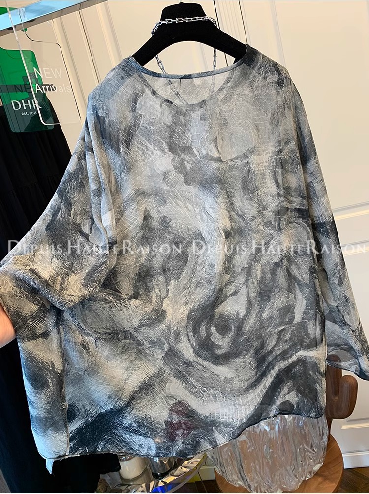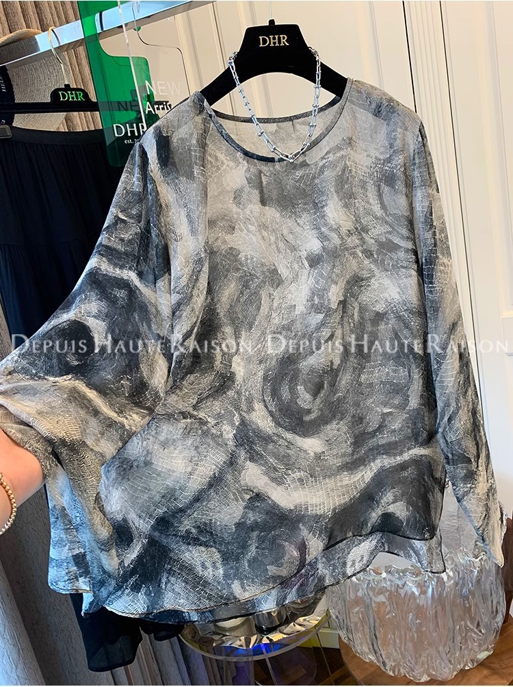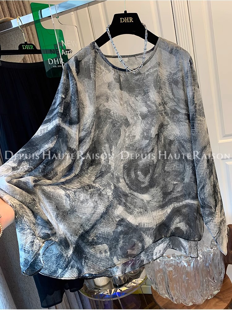 Специальное предложение [Официальное изображение, оригинальное качество] Очень большой размер 120kg шифоновая тонкая летняя прохладная и полупрозрачная солнцезащитная блузка