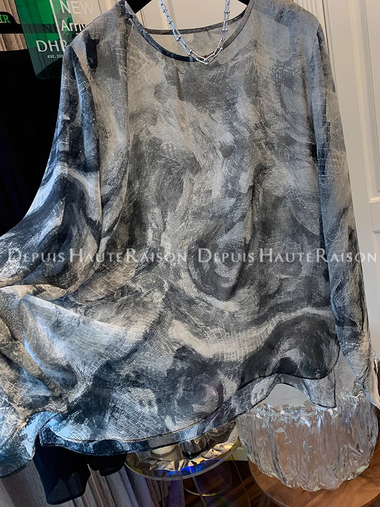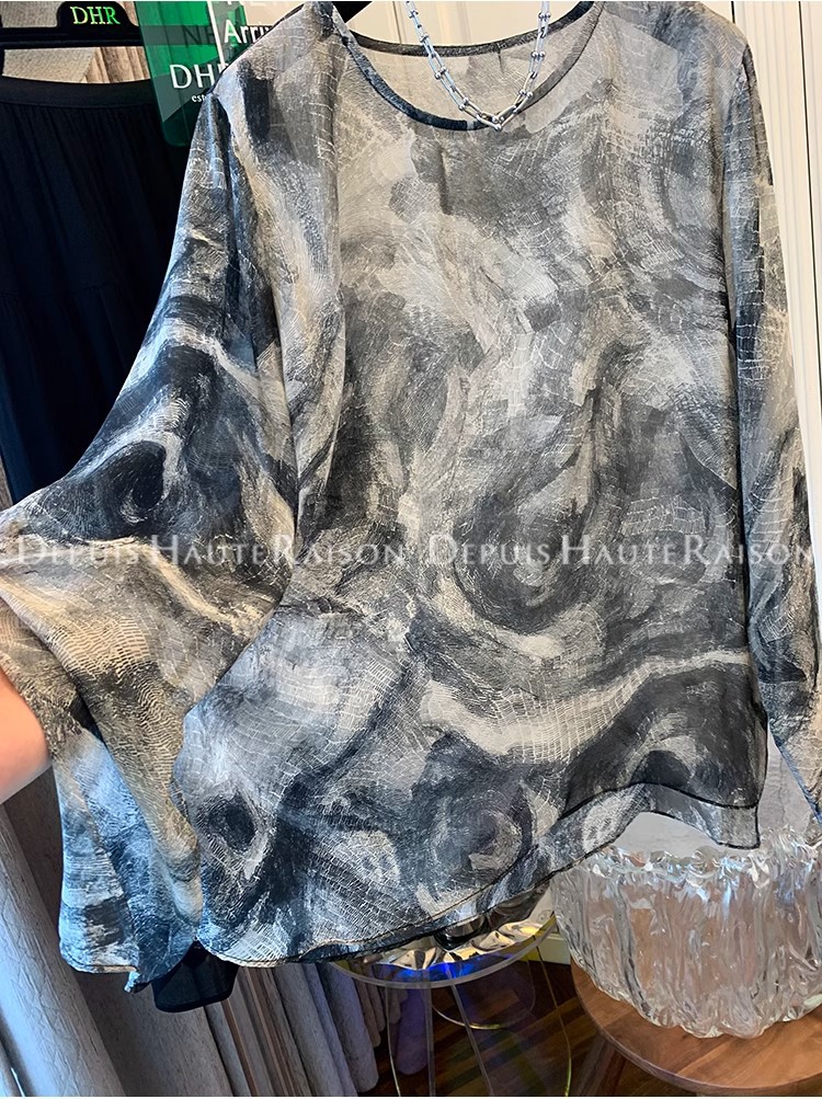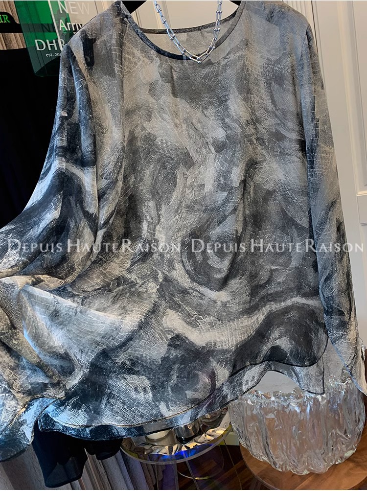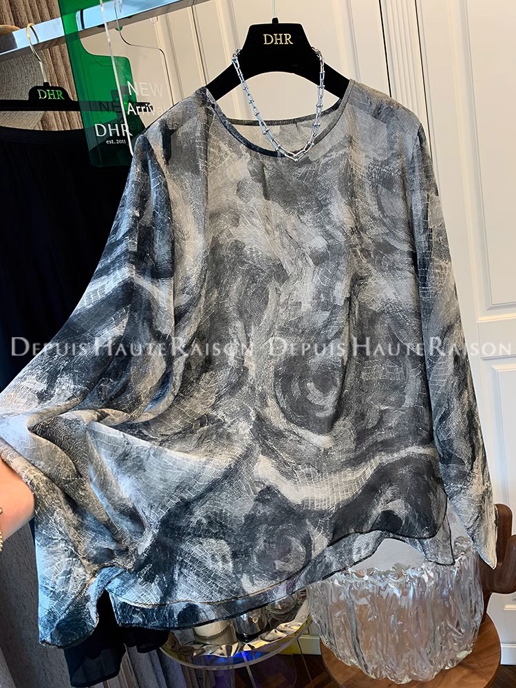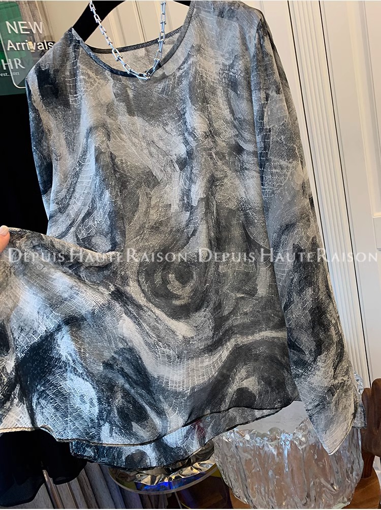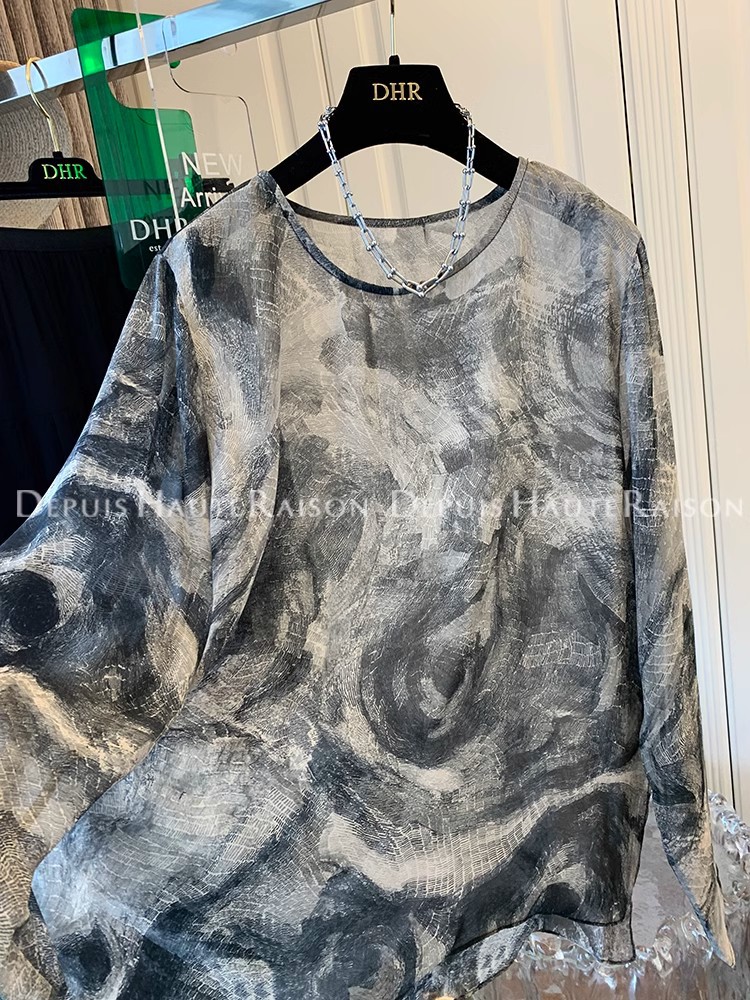 Специальное предложение [Официальное изображение, оригинальное качество] Очень большой размер 120kg шифоновая тонкая летняя прохладная и полупрозрачная солнцезащитная блузка