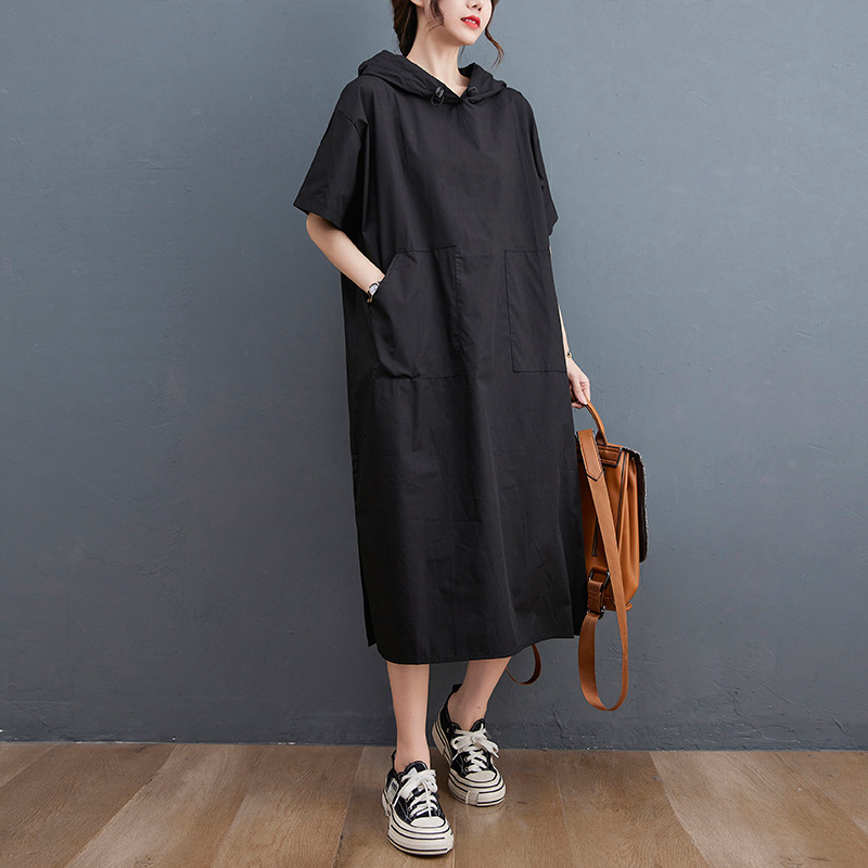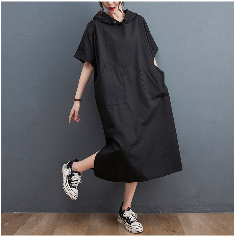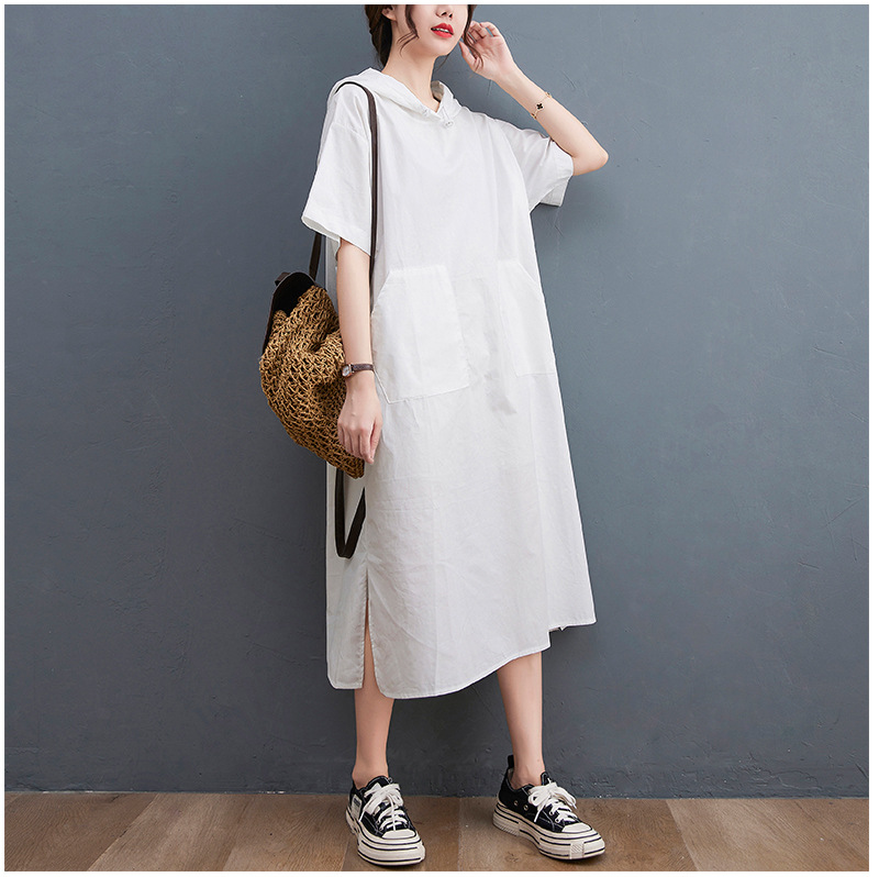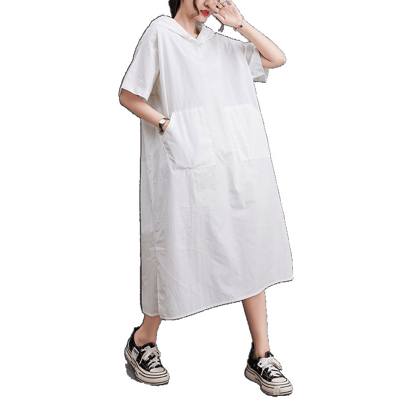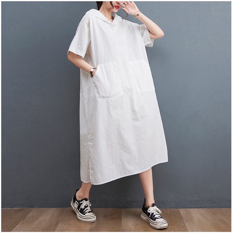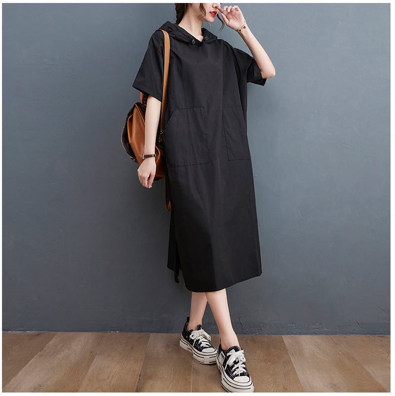 2025 Реальная стрельба Новая мода повседневная свободная большая размер с капюшоном женское платье