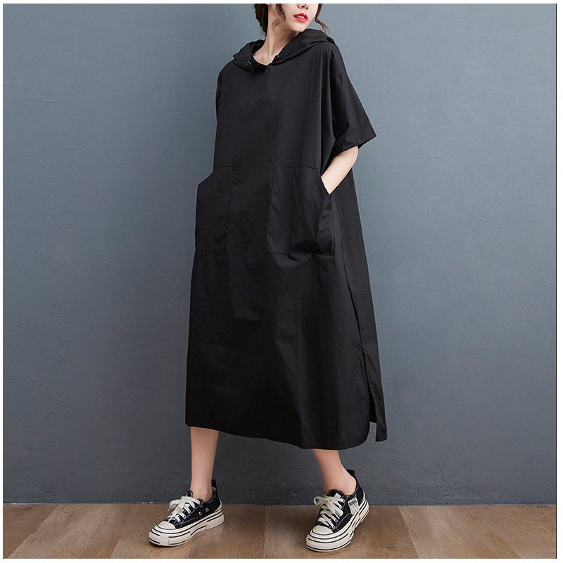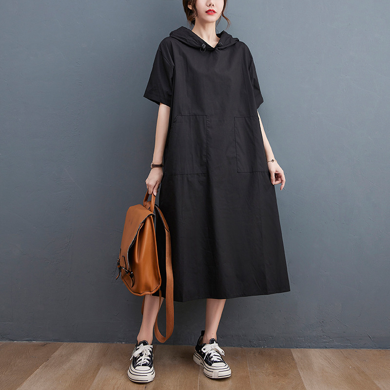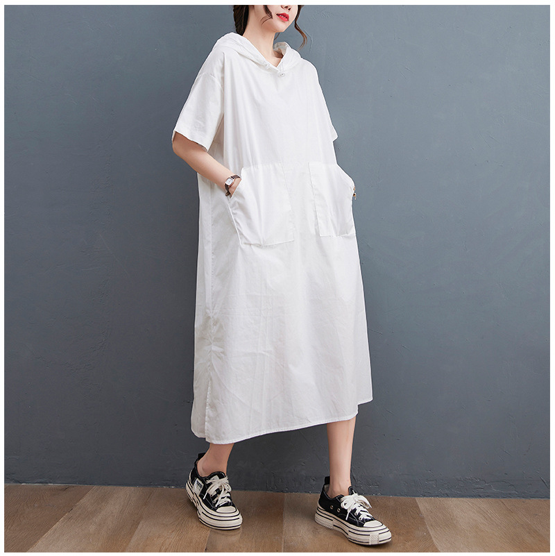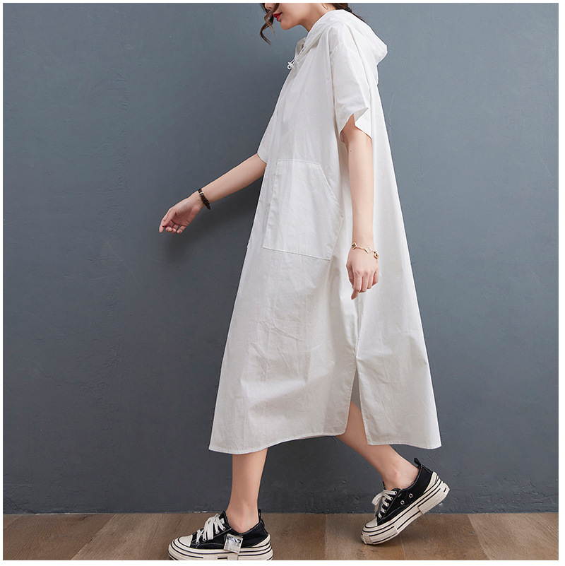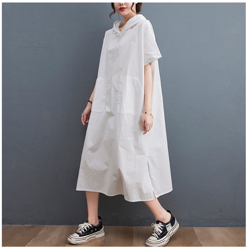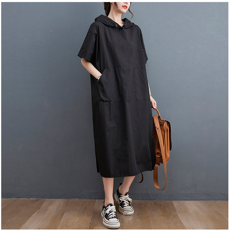 2025 Реальная стрельба Новая мода повседневная свободная большая размер с капюшоном женское платье