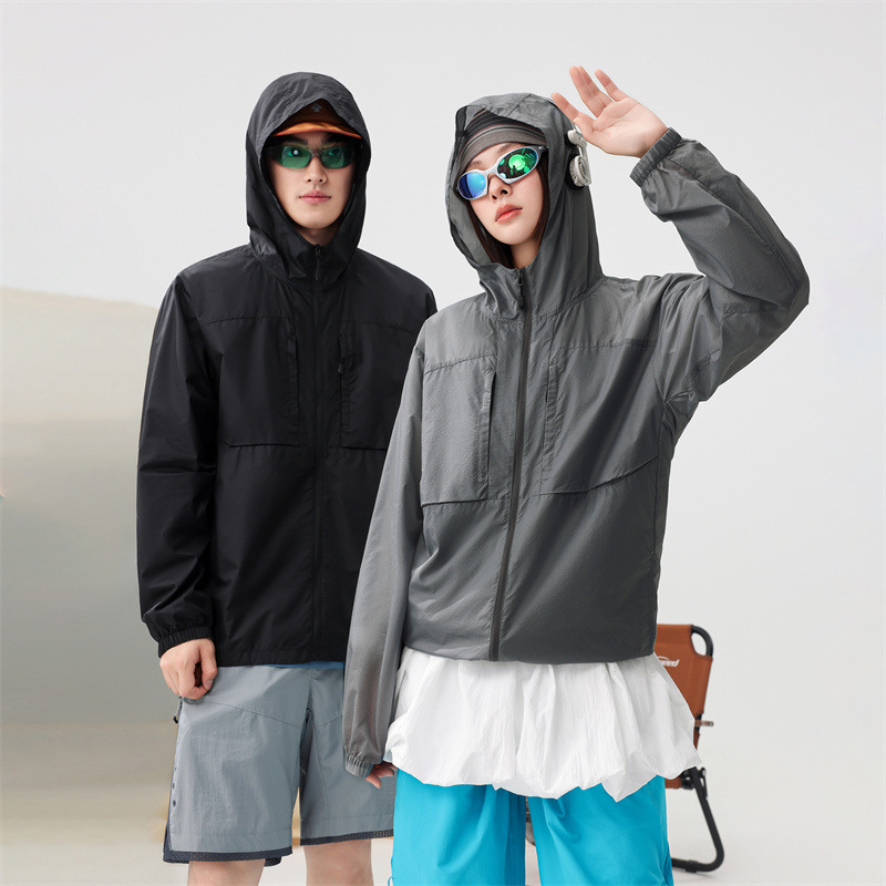 Летняя тонкая дышащая куртка с капюшоном из ледяного шелка для занятий спортом на открытом воздухе, пара, прямая трансляция, популярная солнцезащитная одежда