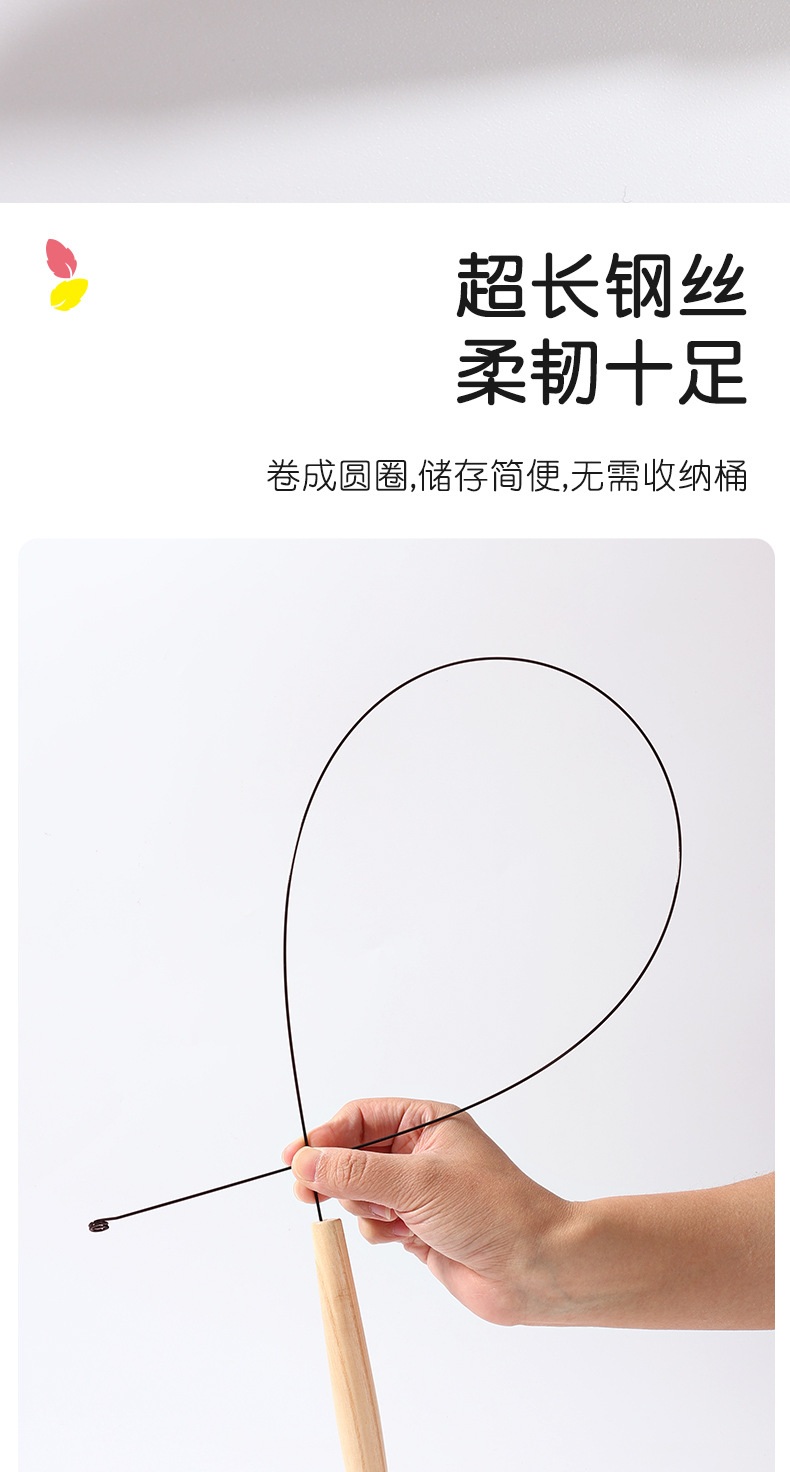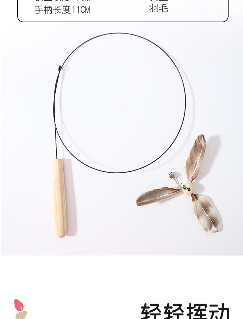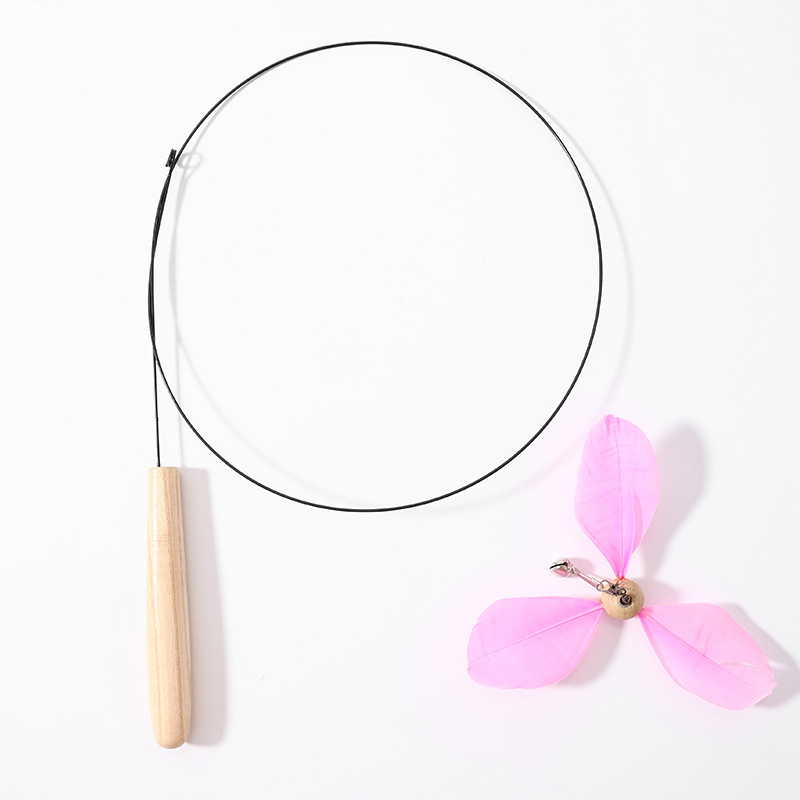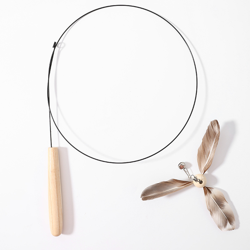 Деревянная ручка, стальная проволока соревновательного класса, палочка для дразнения кошек с вращающимися перьями