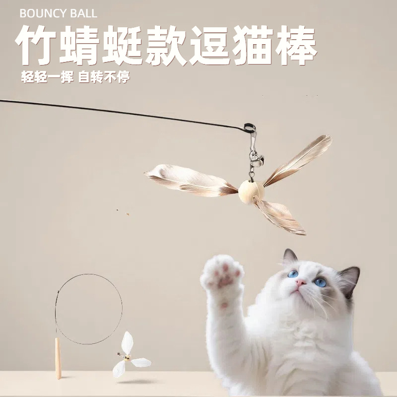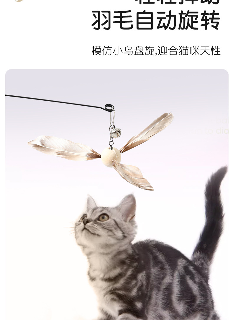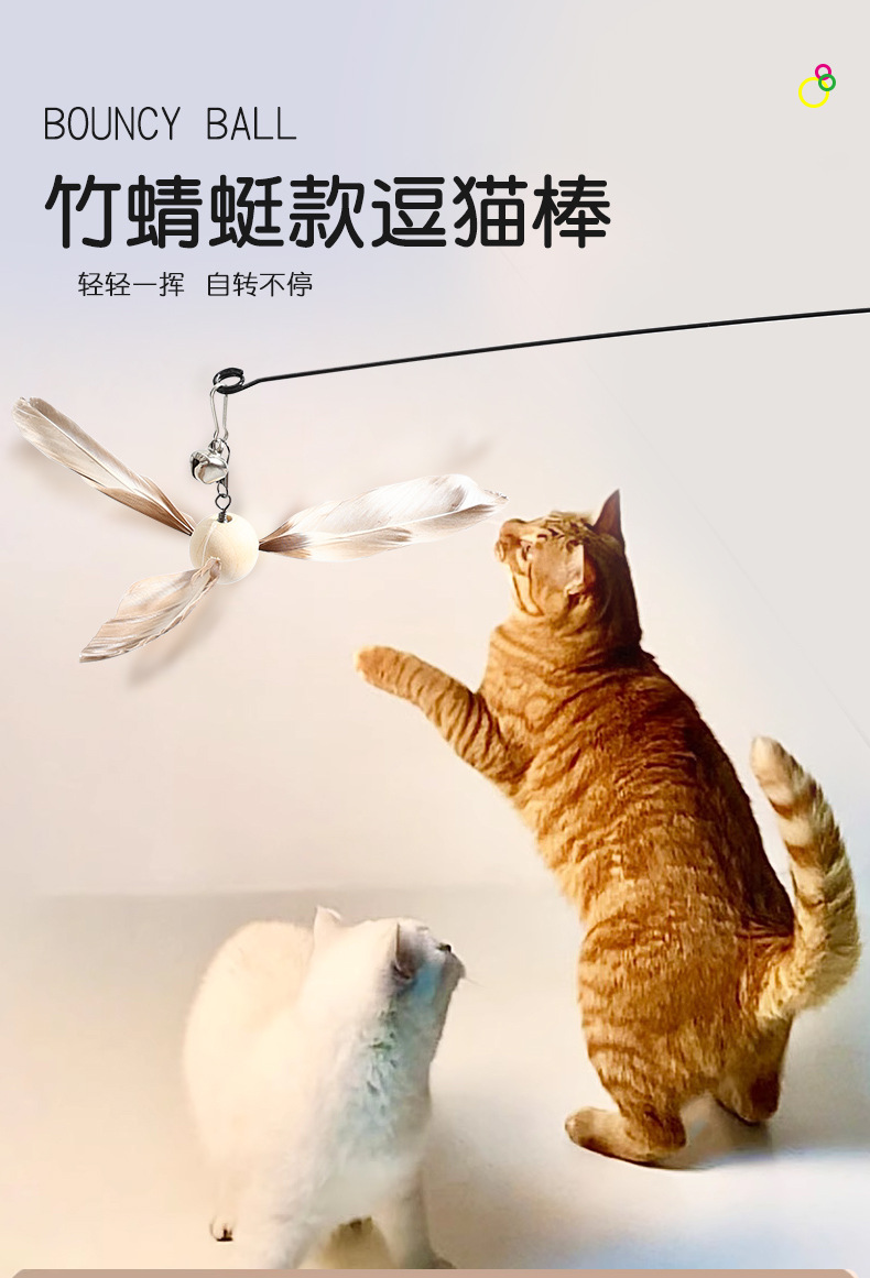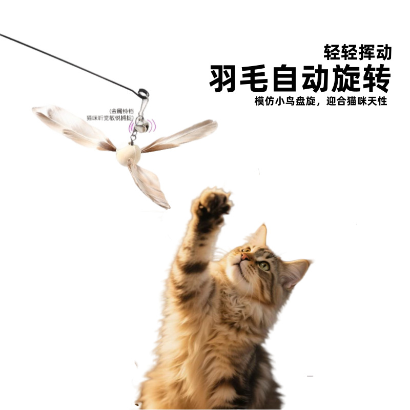 Деревянная ручка, стальная проволока соревновательного класса, палочка для дразнения кошек с вращающимися перьями