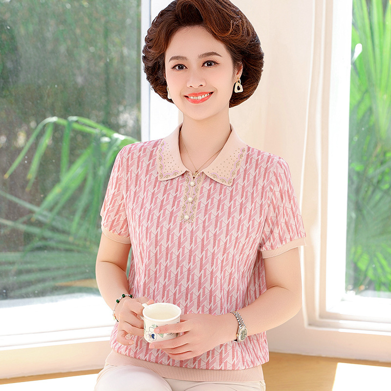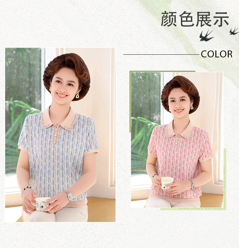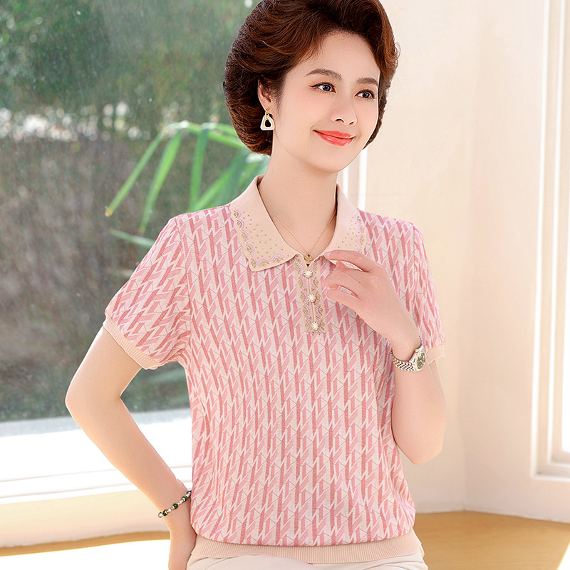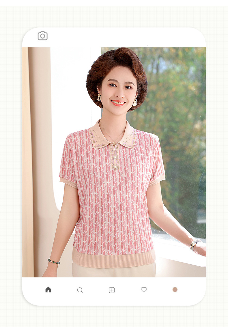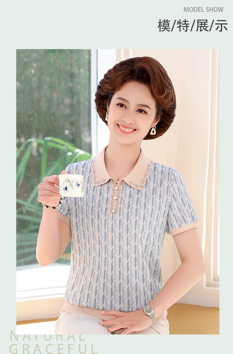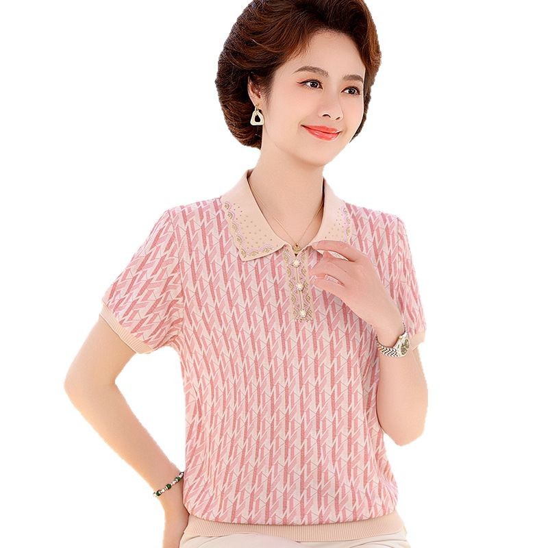 2025 весна и осень мама мода минус возраст трикотажные рубашки весна и осень новая средняя и пожилая женщина осенний темперамент топ с отворотами