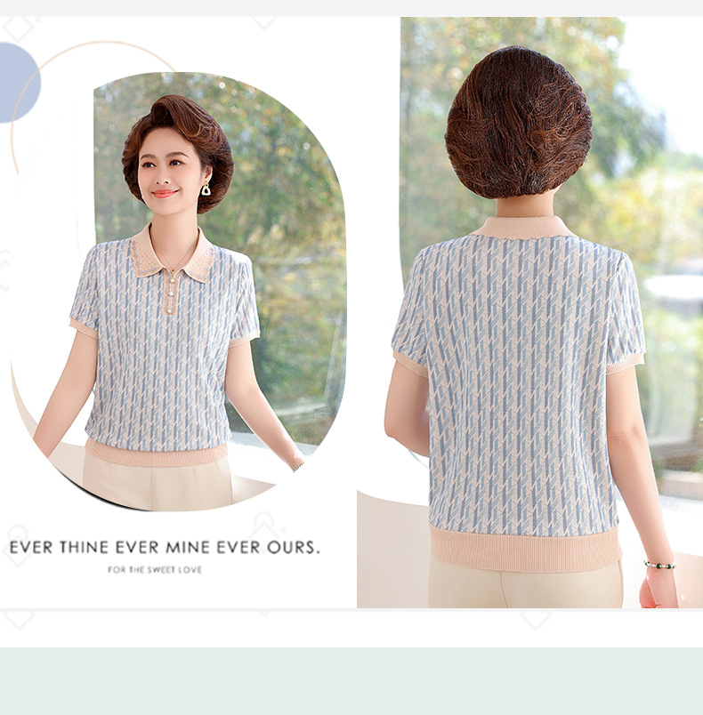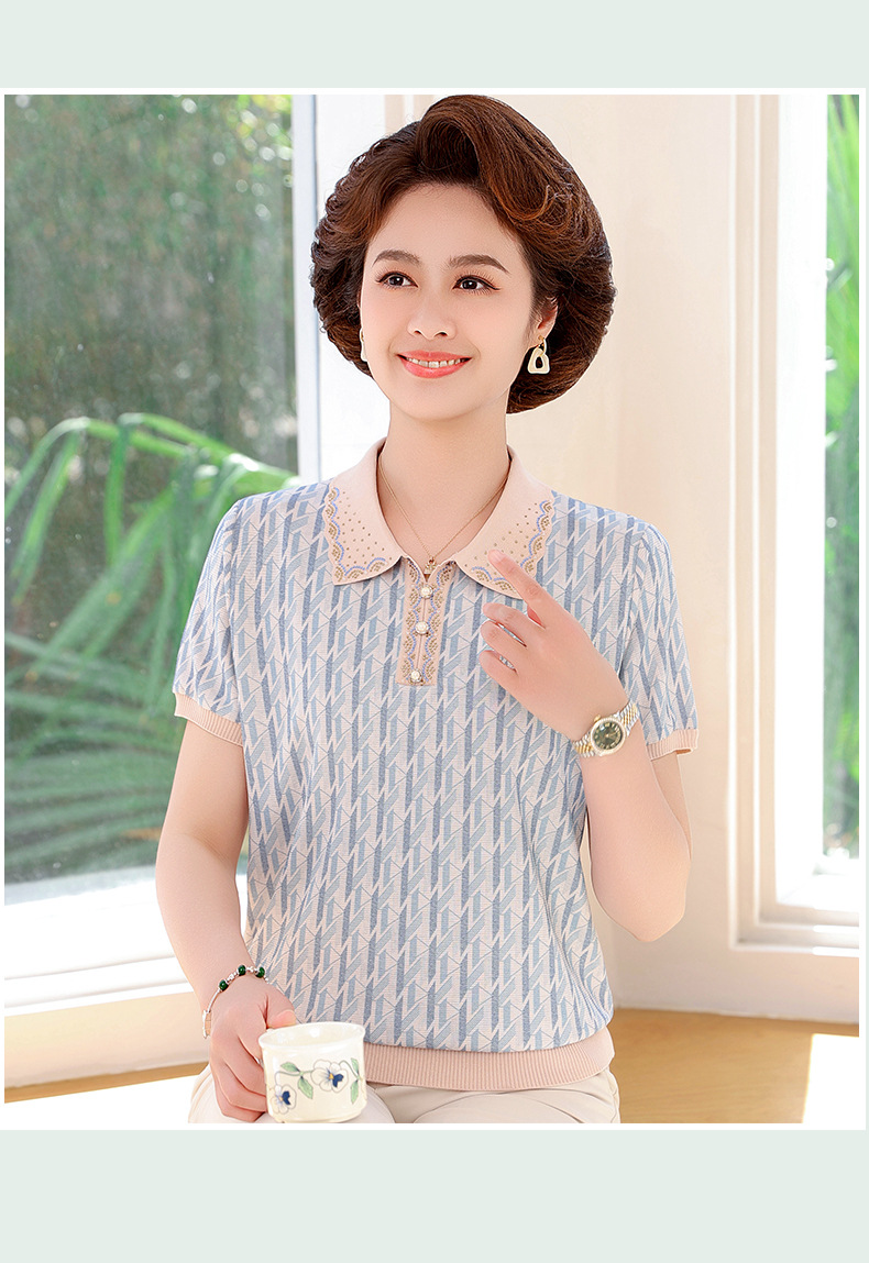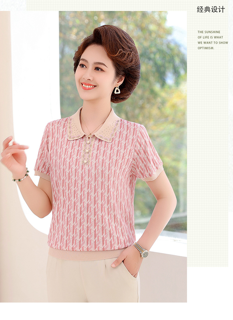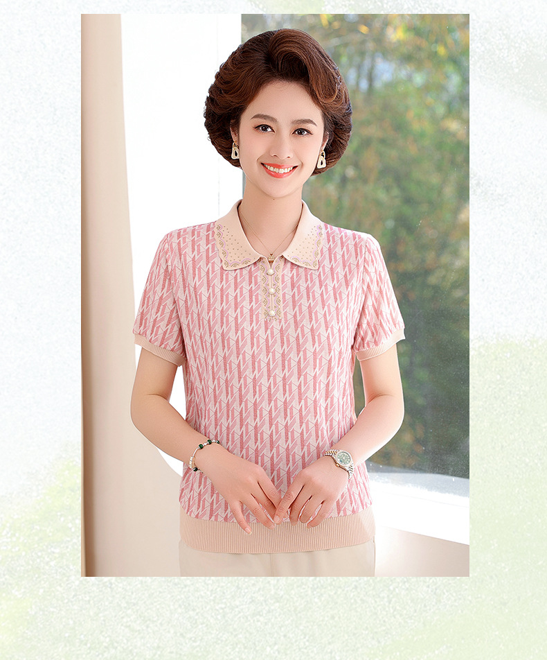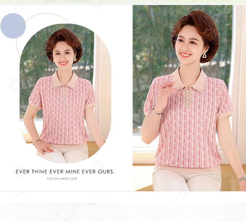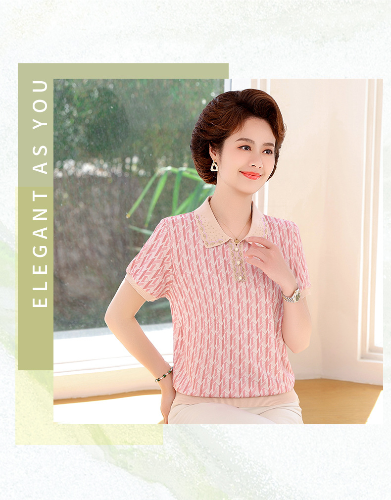 2025 весна и осень мама мода минус возраст трикотажные рубашки весна и осень новая средняя и пожилая женщина осенний темперамент топ с отворотами