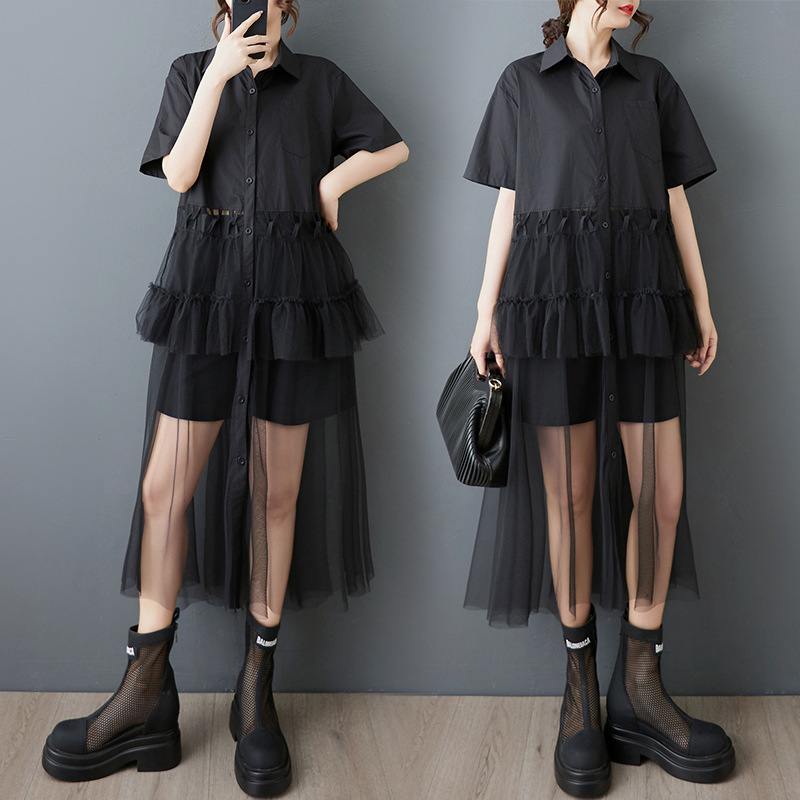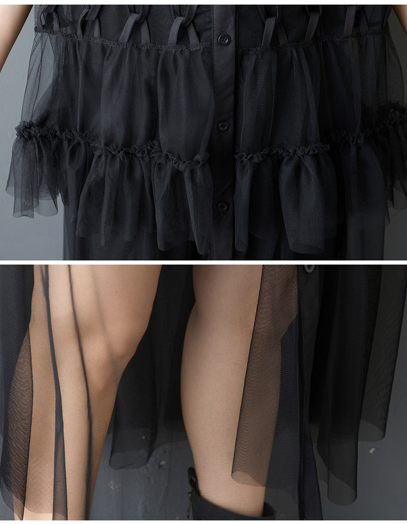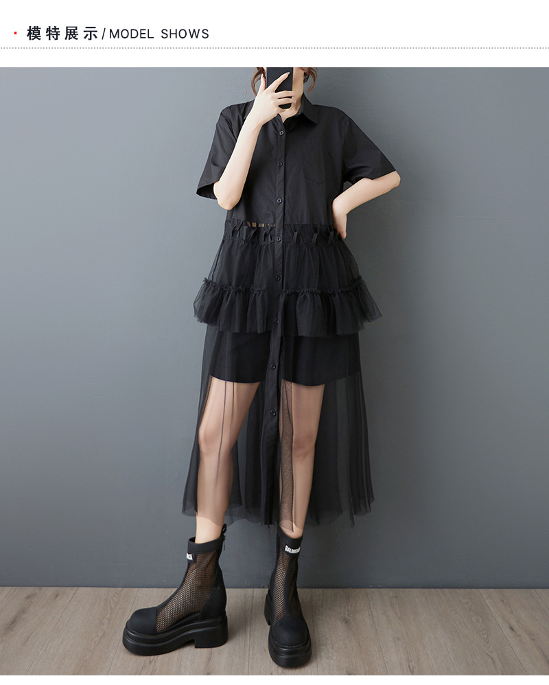 Фактический снимок нового летнего стиля 2025 года, свободного и тонкого дизайна, модное платье из двух частей с сетчатой плиссированной вставкой