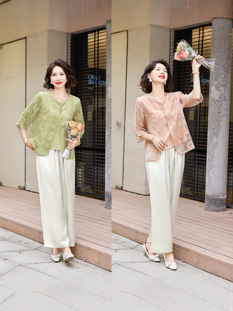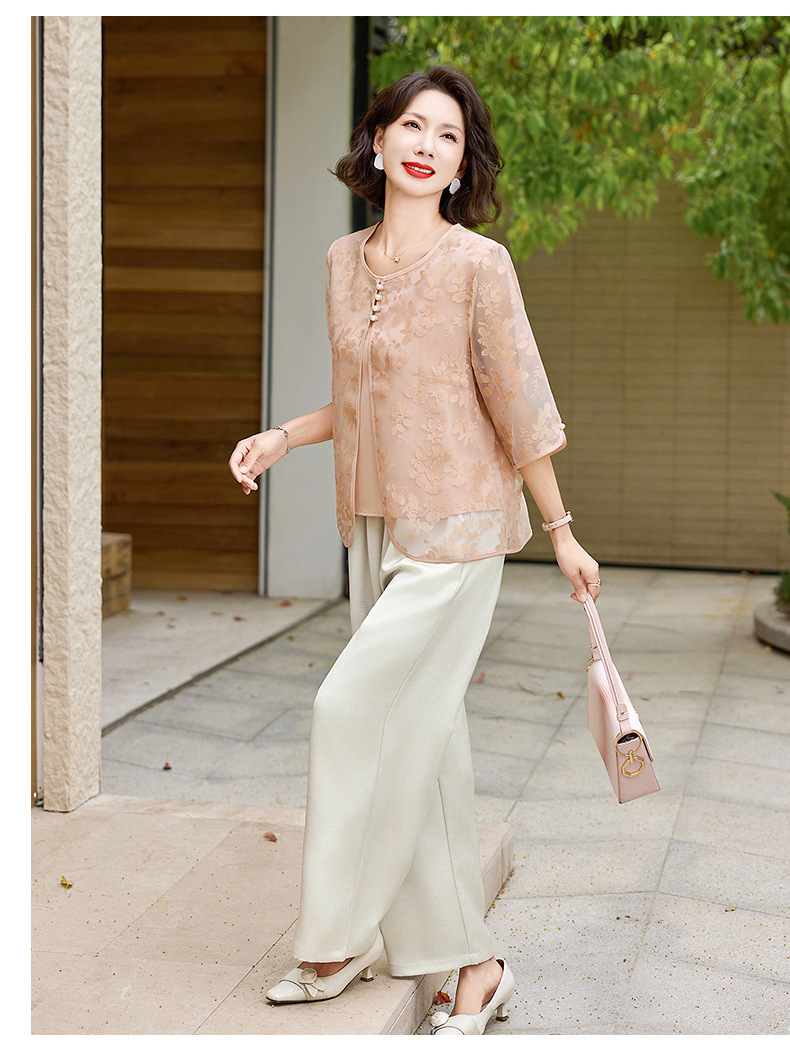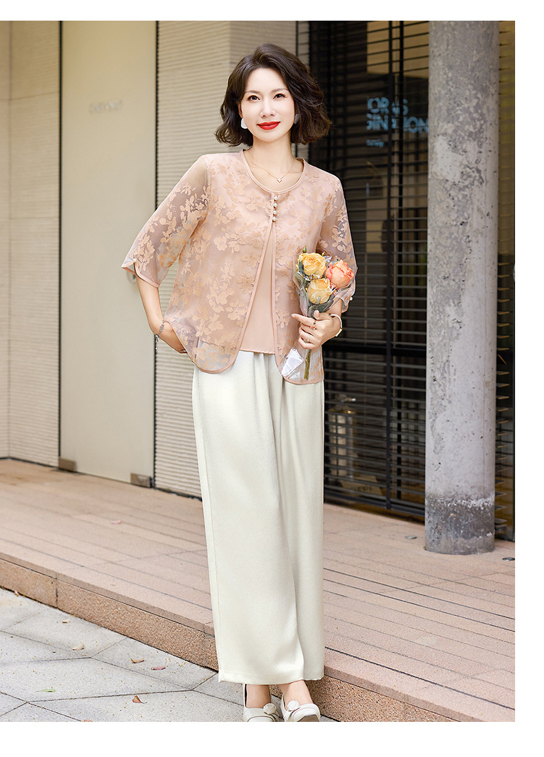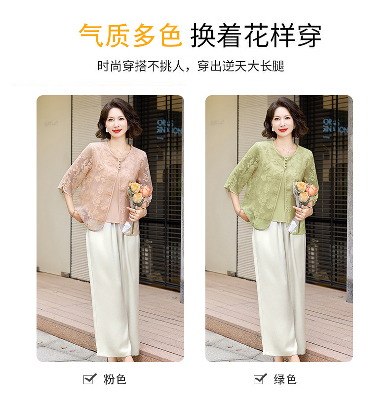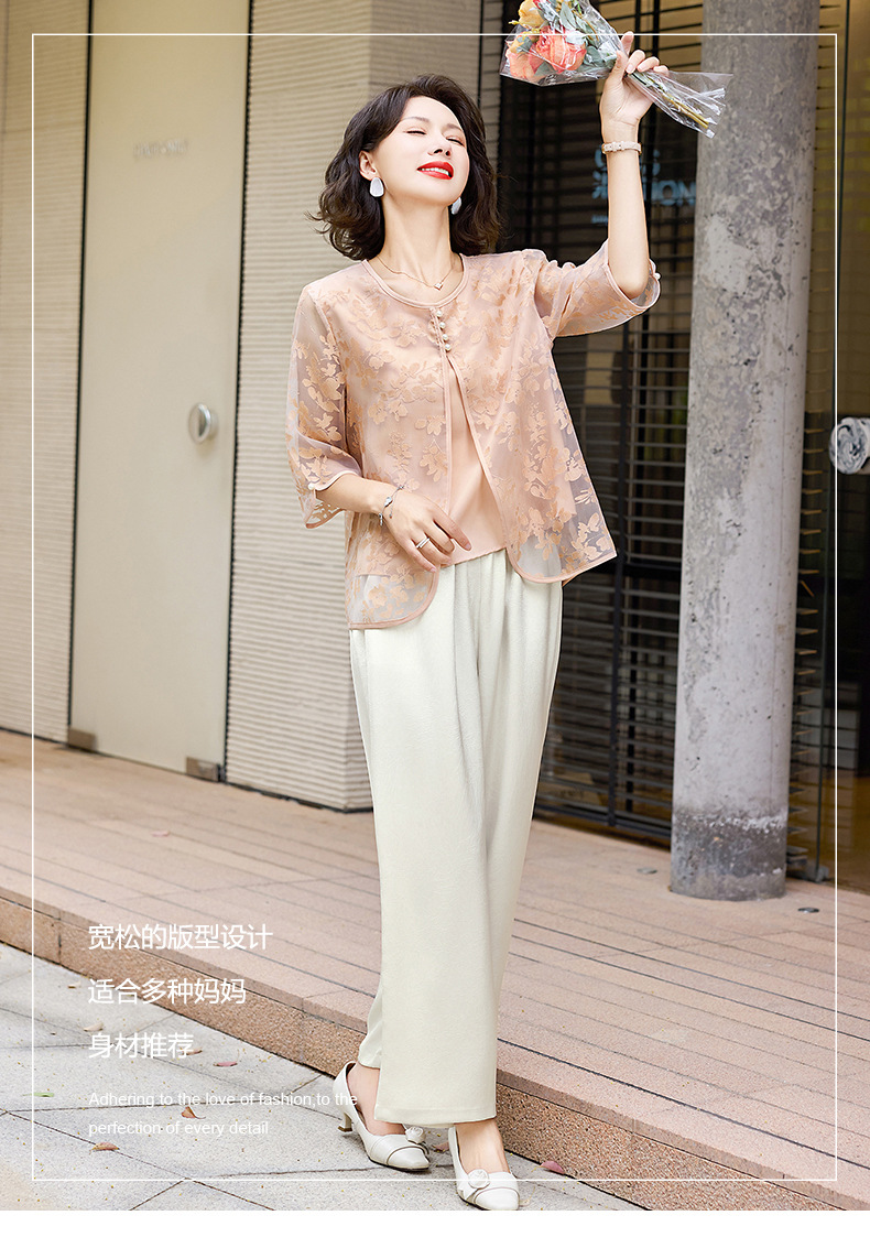 2025 новая мама летняя одежда набор иностранные модные топы из двух частей среднего и пожилого возраста женская летняя футболка с короткими рукавами