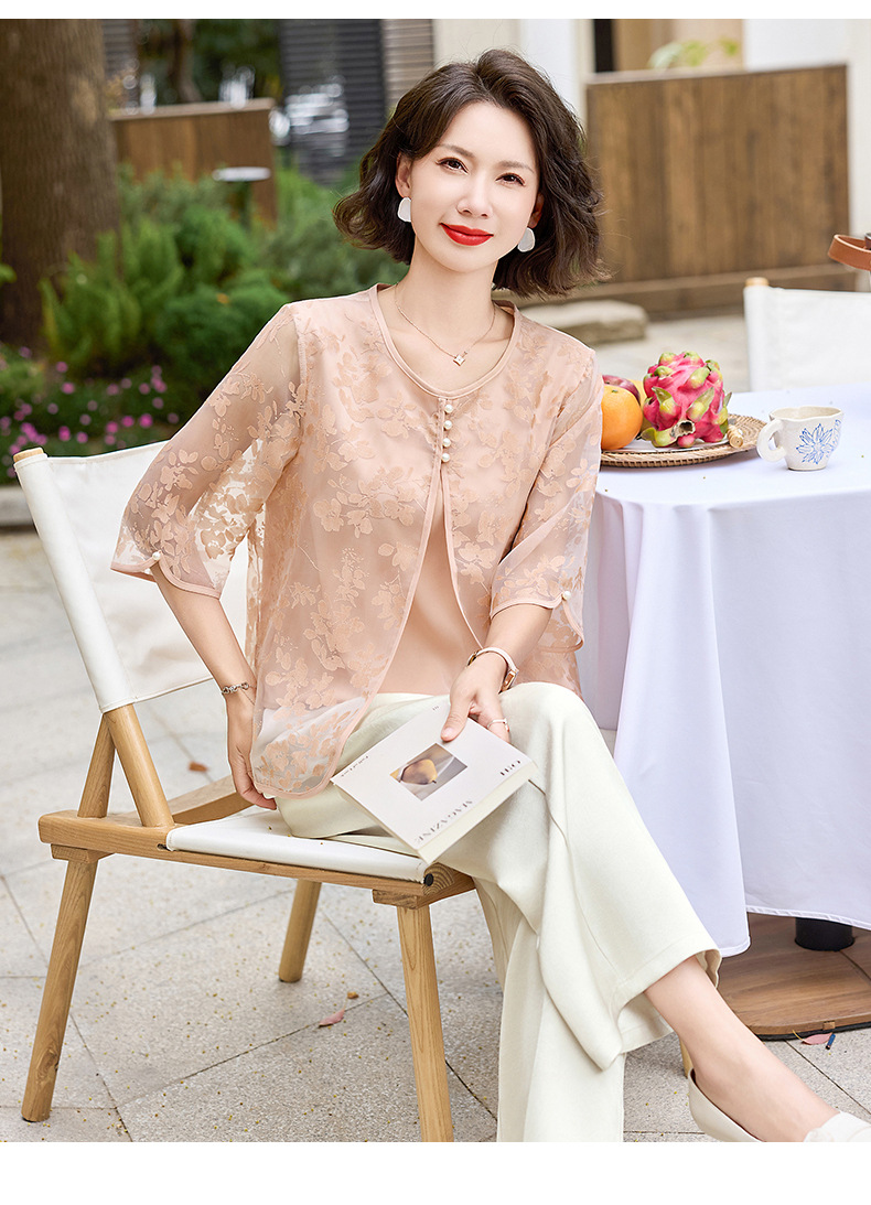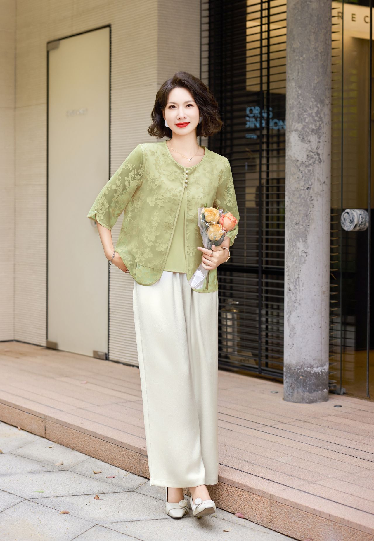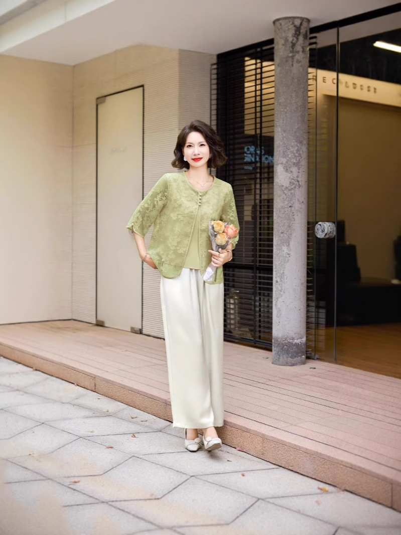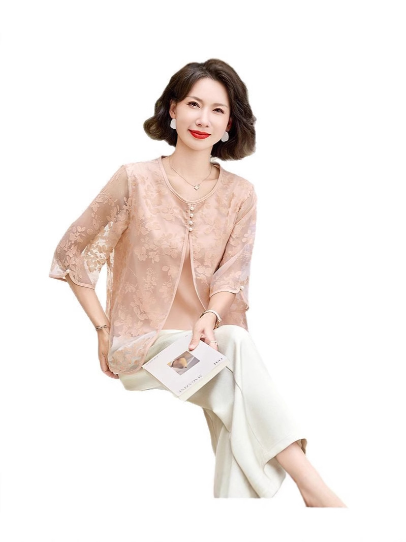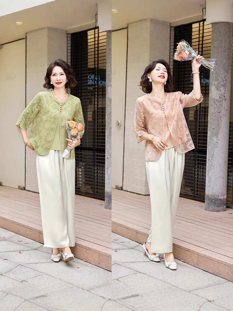 2025 новая мама летняя одежда набор иностранные модные топы из двух частей среднего и пожилого возраста женская летняя футболка с короткими рукавами