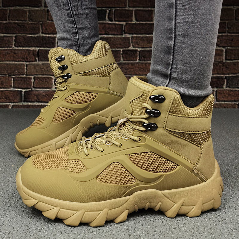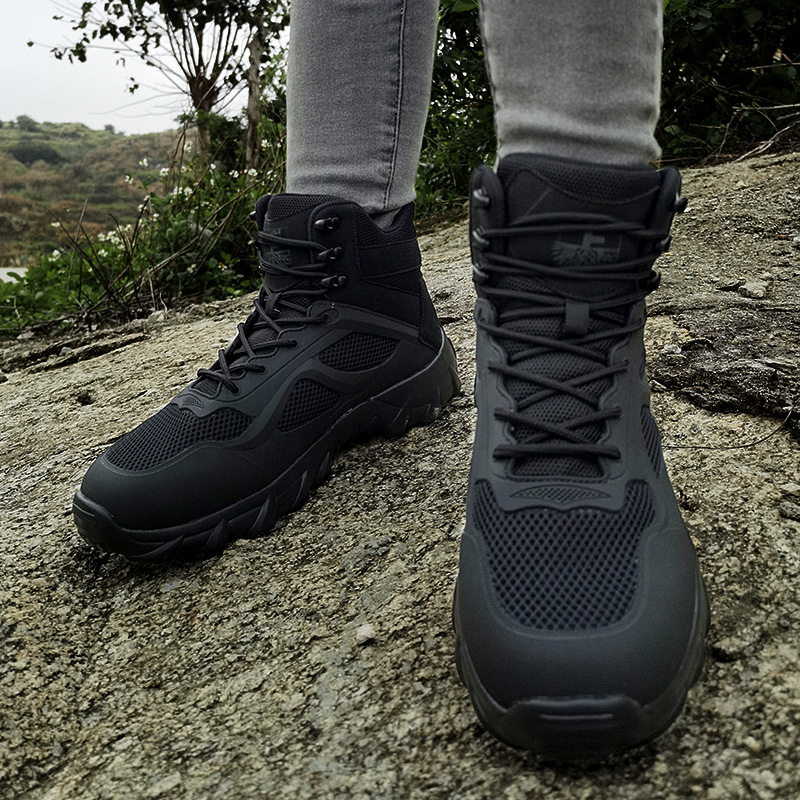 Мужская походная обувь большого размера, четырехсезонные дышащие, нескользящие, износостойкие армейские ботинки средней высоты, водонепроницаемые военные ботинки, ботинки с сеткой.
