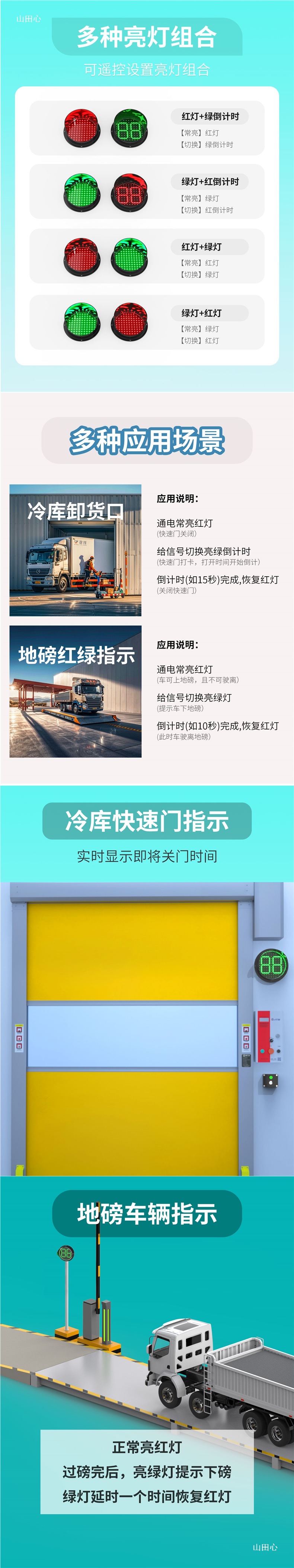 Кнопка управления красным и зеленым светом, скорость сдвига времени, двойной 8-цифровой светофор, индикация дверей холодильного склада