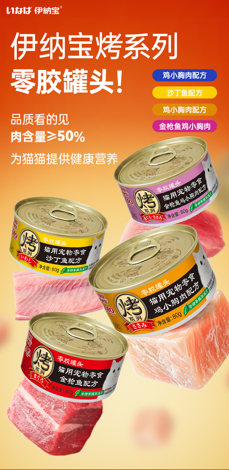 Новые продукты Inabo жареная серия для кошек с закусками для домашних животных 0 Консервы с добавлением консервированного льняного семени 80 г